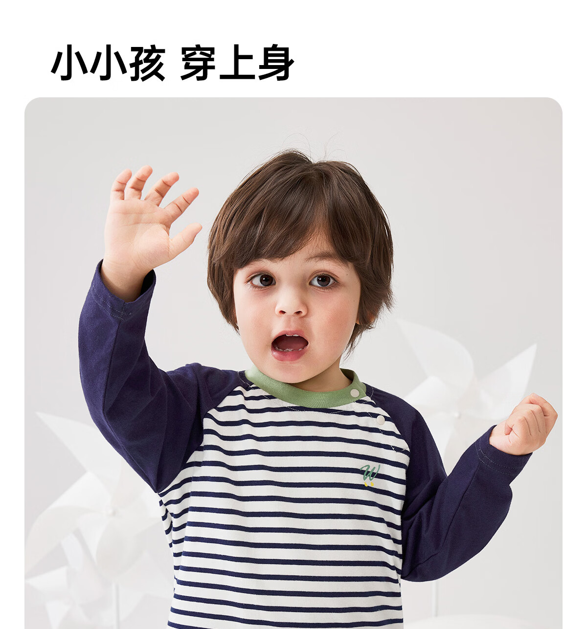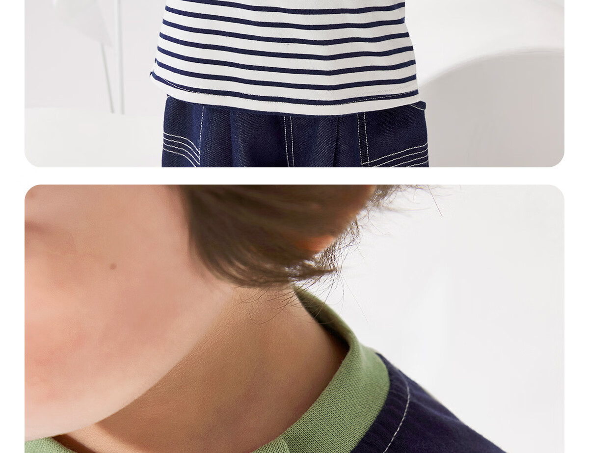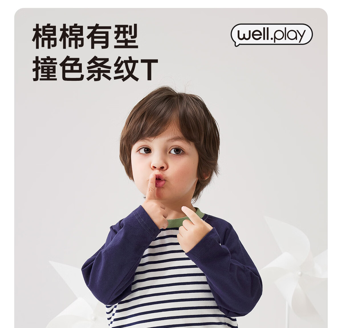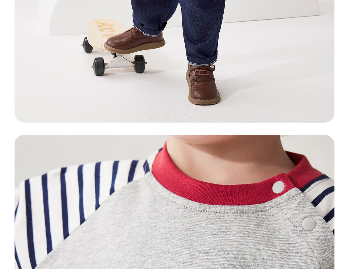 WELLBER children's T-shirt spring and autumn new long-sleeved T-shirt striped versatile contrasting color splicing top baby inner wear pure cotton for children and middle-aged children basic model navy 90