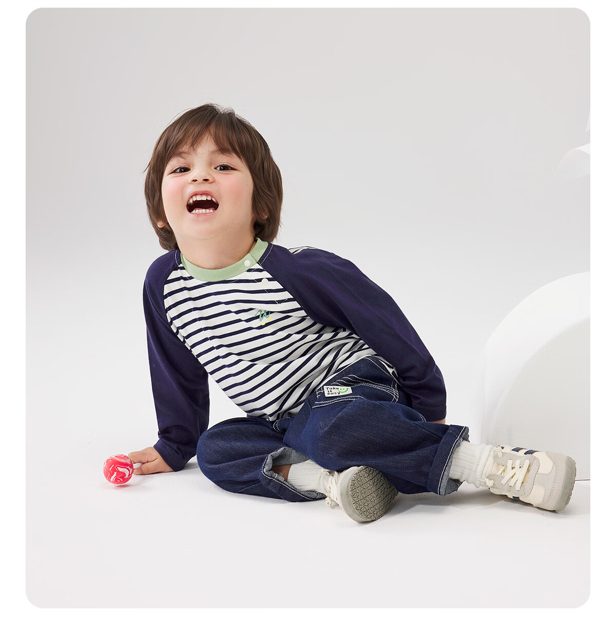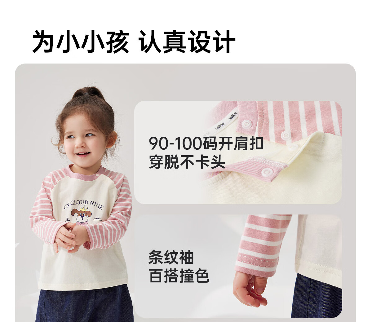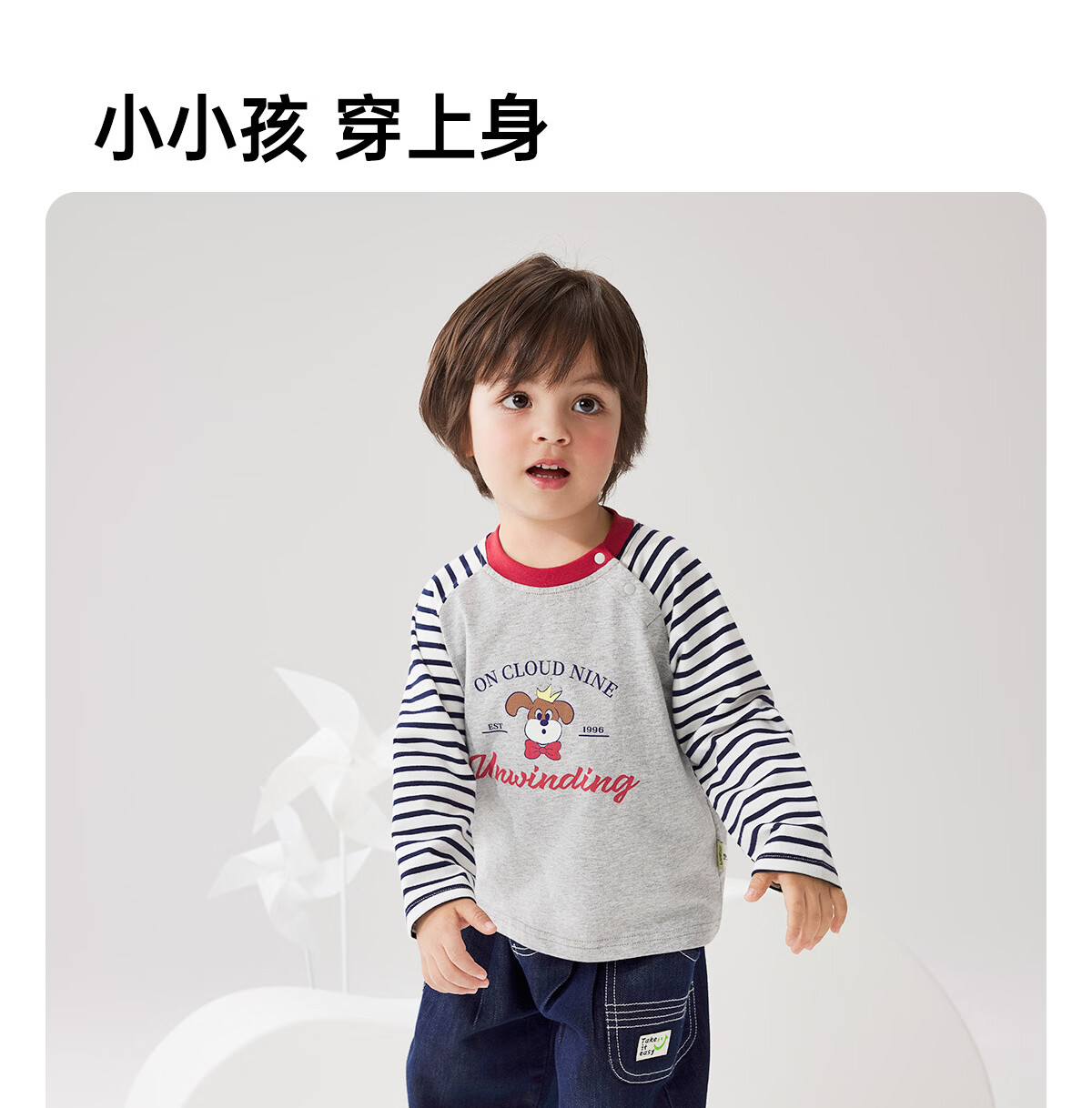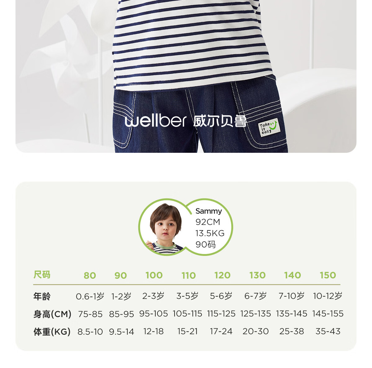 WELLBER children's T-shirt spring and autumn new long-sleeved T-shirt striped versatile contrasting color splicing top baby inner wear pure cotton for children and middle-aged children basic model navy 90