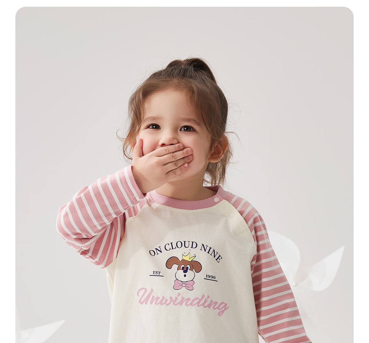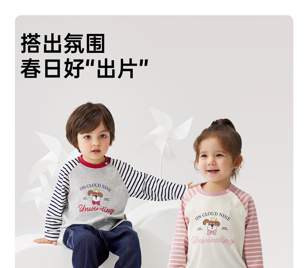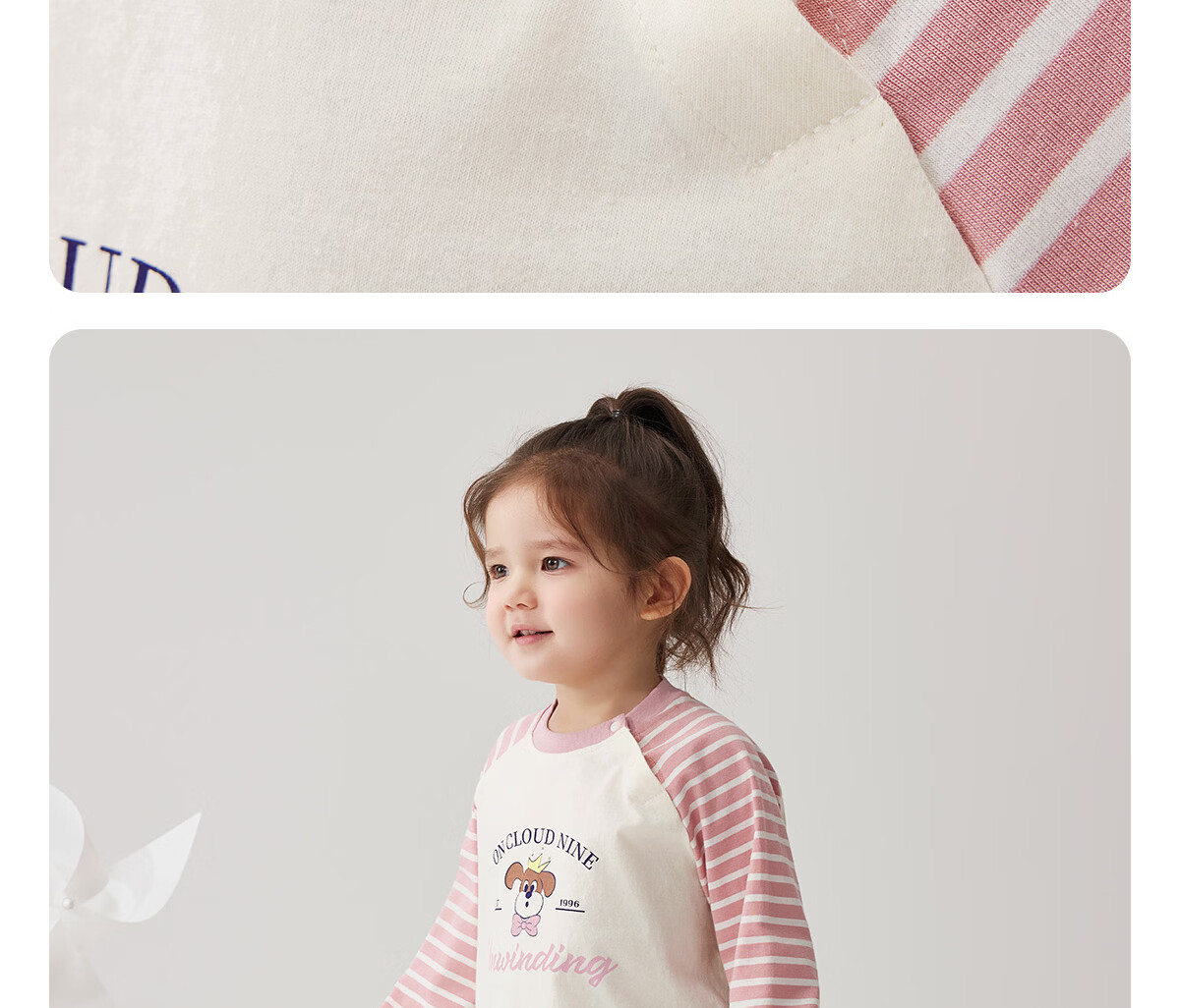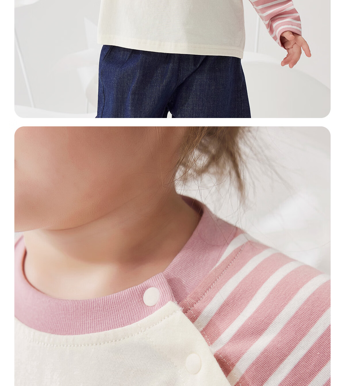WELLBER children's T-shirt spring and autumn new long-sleeved T-shirt striped versatile contrasting color splicing top baby inner wear pure cotton for children and middle-aged children basic model navy 90
