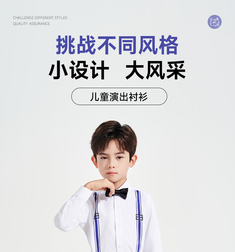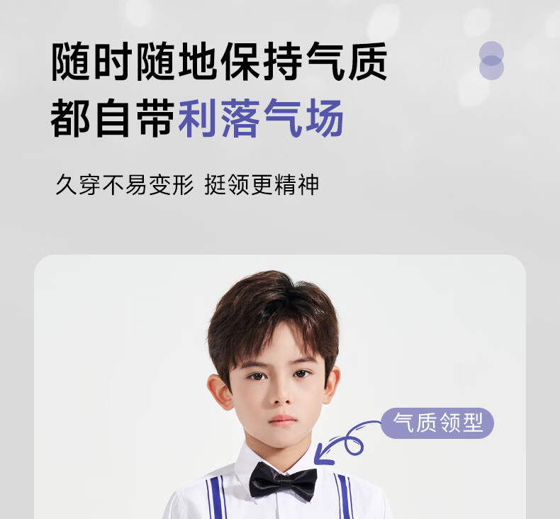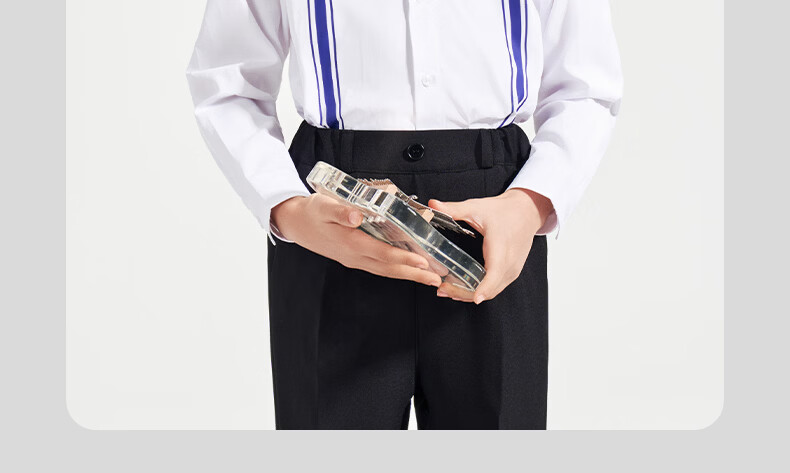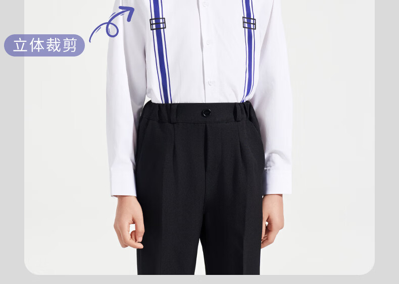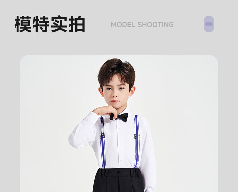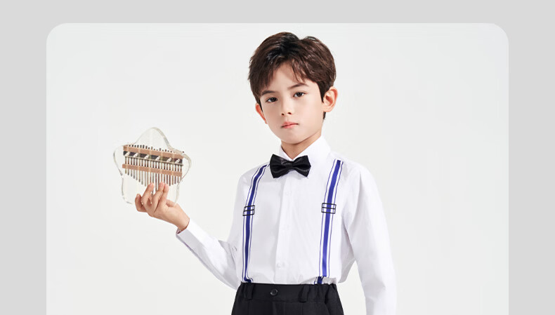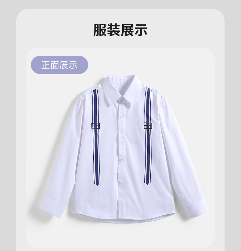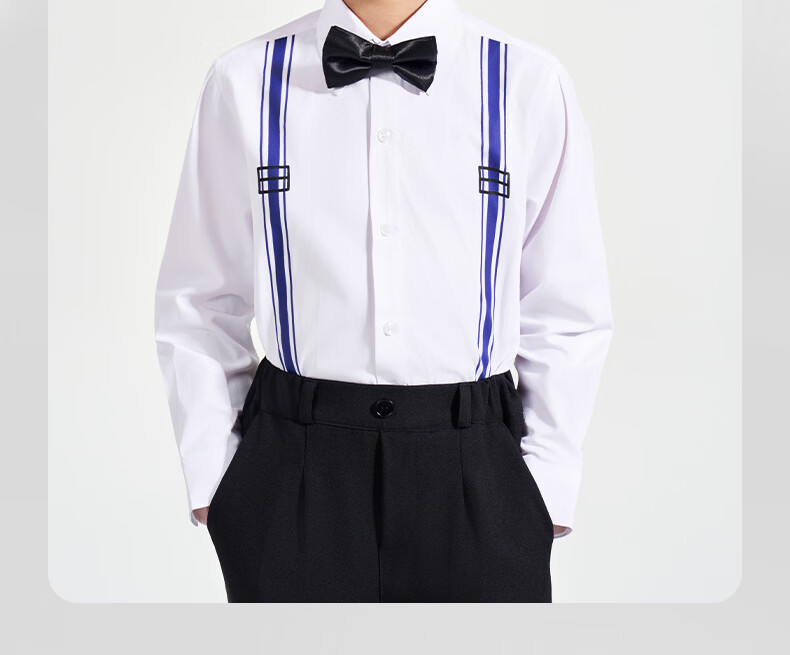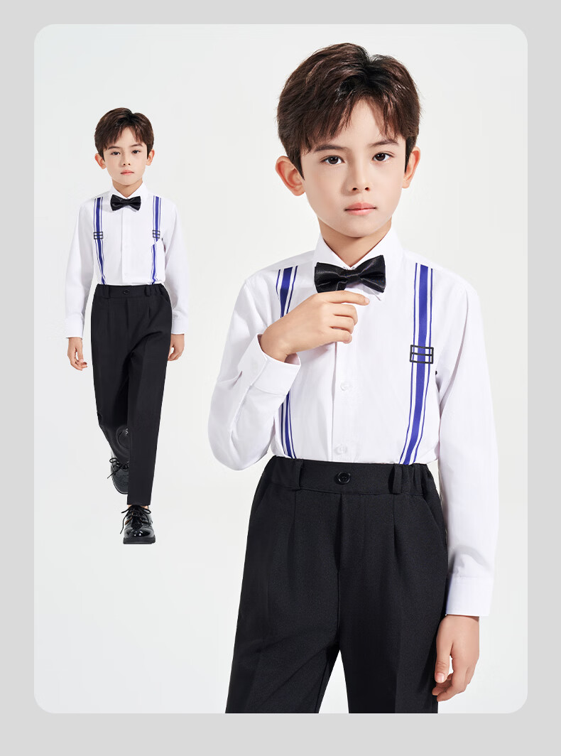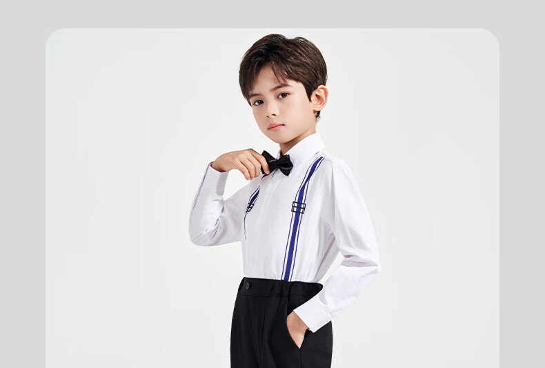 Luo Meng children's white printed suspender shirt boys' campus performance dress primary and secondary school long-sleeved white shirt white regular single shirt 120