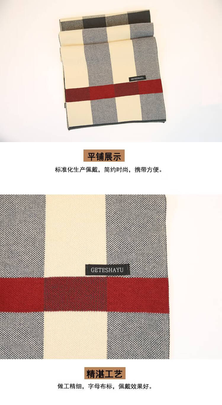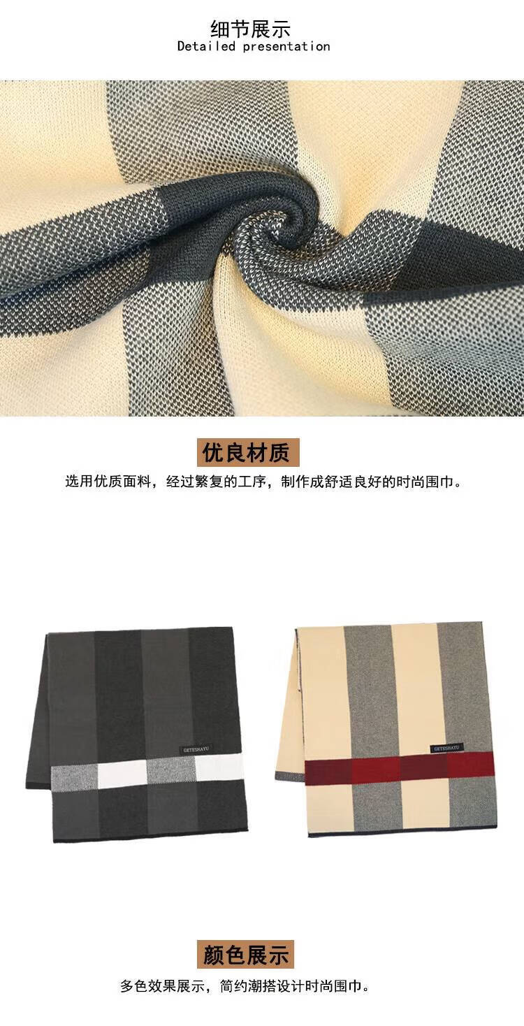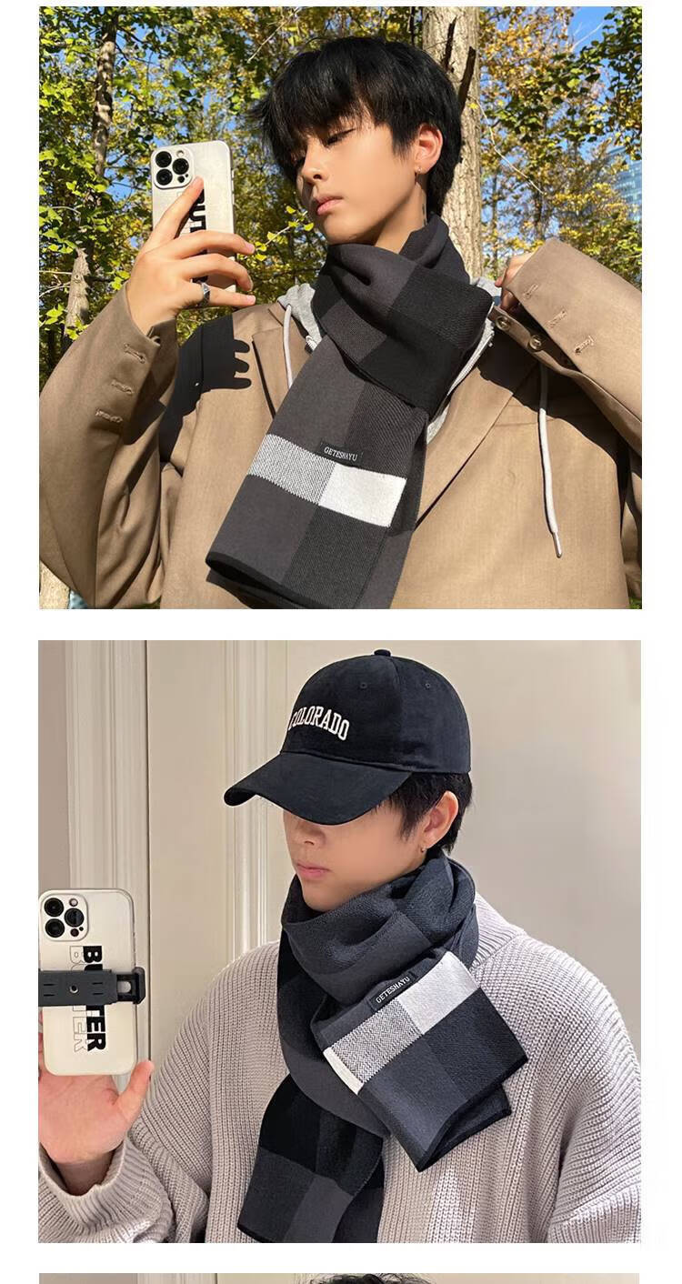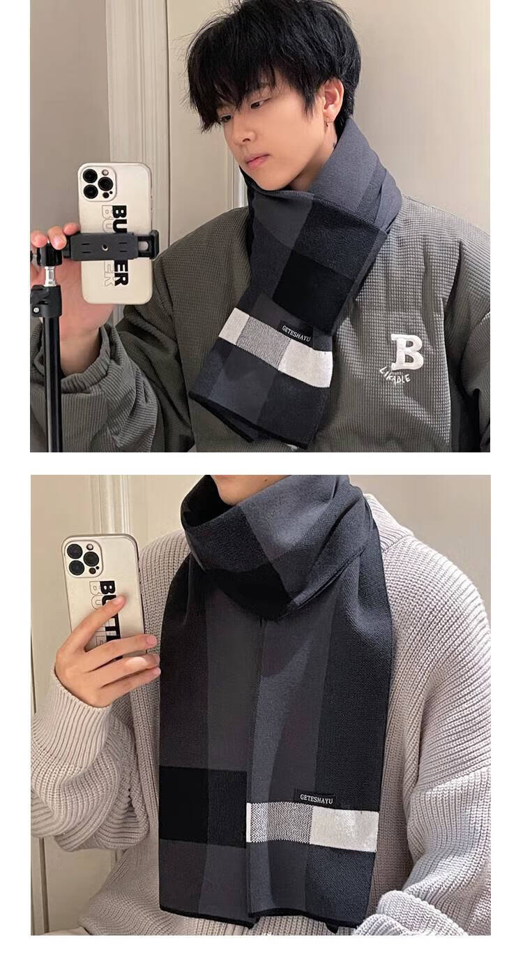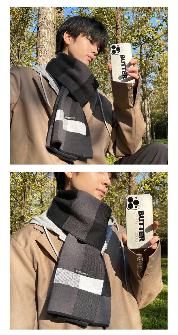 JIOESC scarf boys autumn and winter woolen warm student scarf birthday gift for boyfriend Christmas gift gray rice