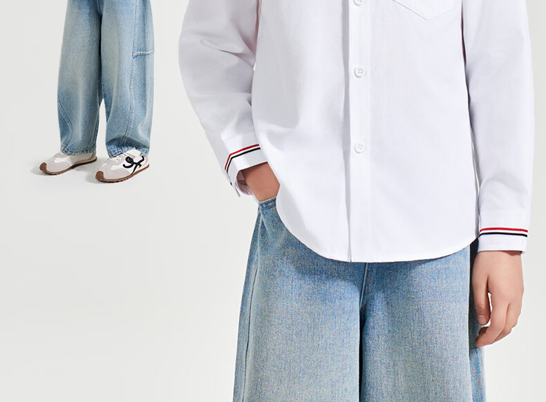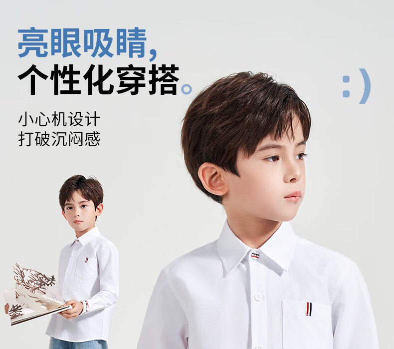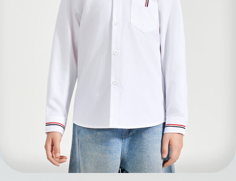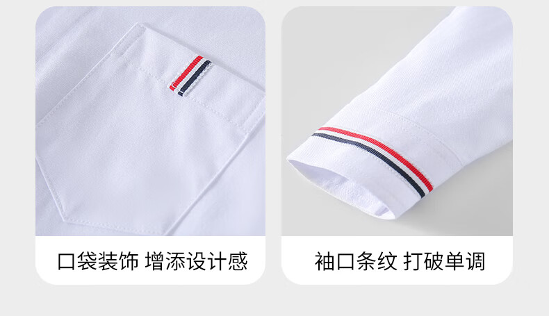 Romon Children's White Oxford Spun Pocket Shirt Spring Primary School Class Uniform Performance Uniform Boys and Girls Campus Uniform Shirt White Regular Single Shirt 160