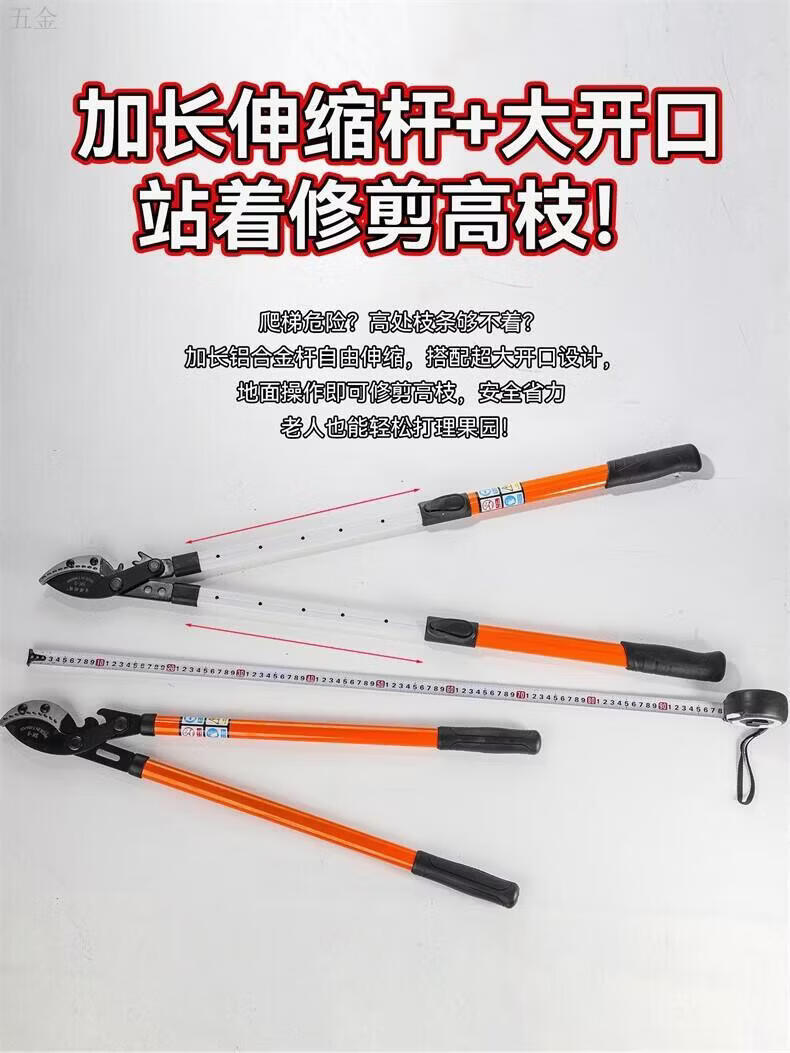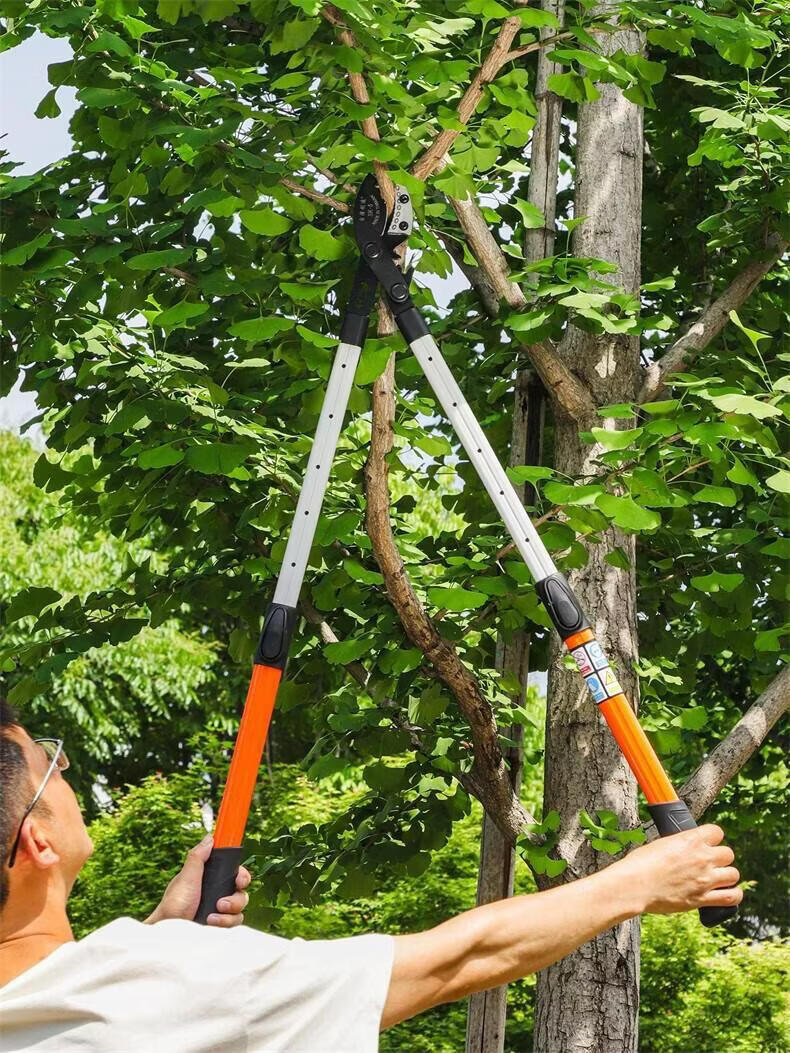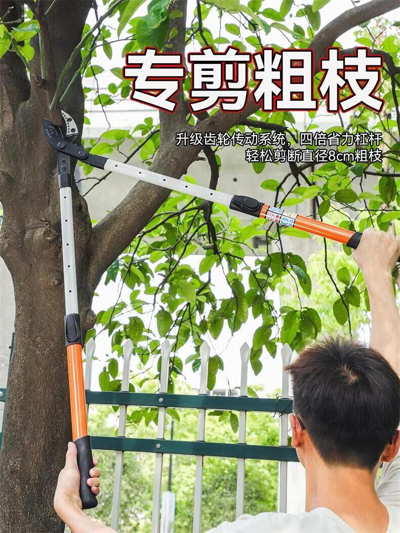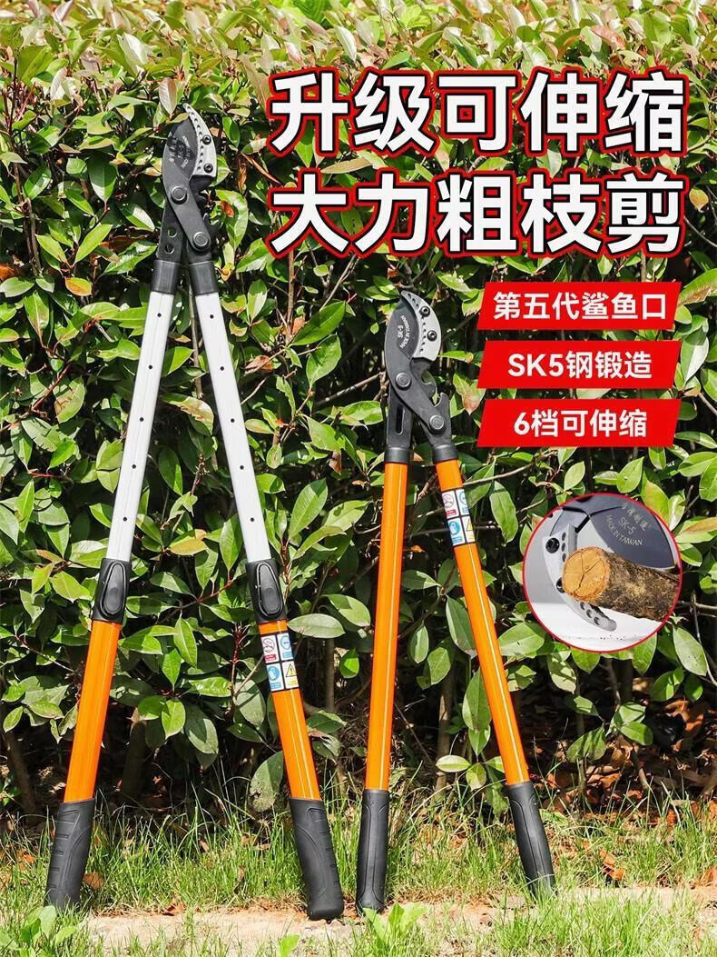 Hejian tribute branch scissors retractable shark mouth powerful scissors 5 garden fruit trees high branches strong thick branches pruning shears steel pipe non-retractable cut 6 cm
