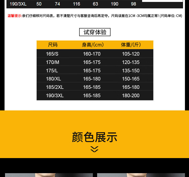 China (cm) 165 / 88-90 170 / 96-98 175 / 108-110 180 / 118-122 185 / 126-130