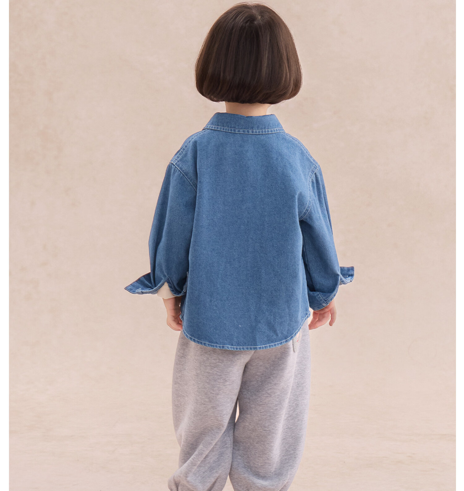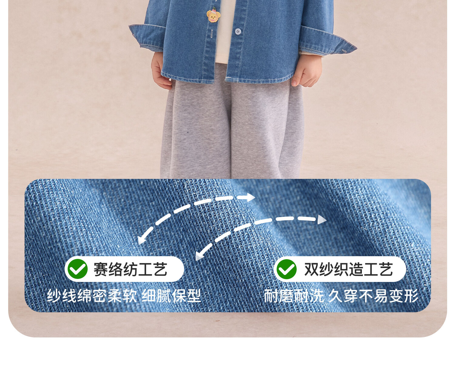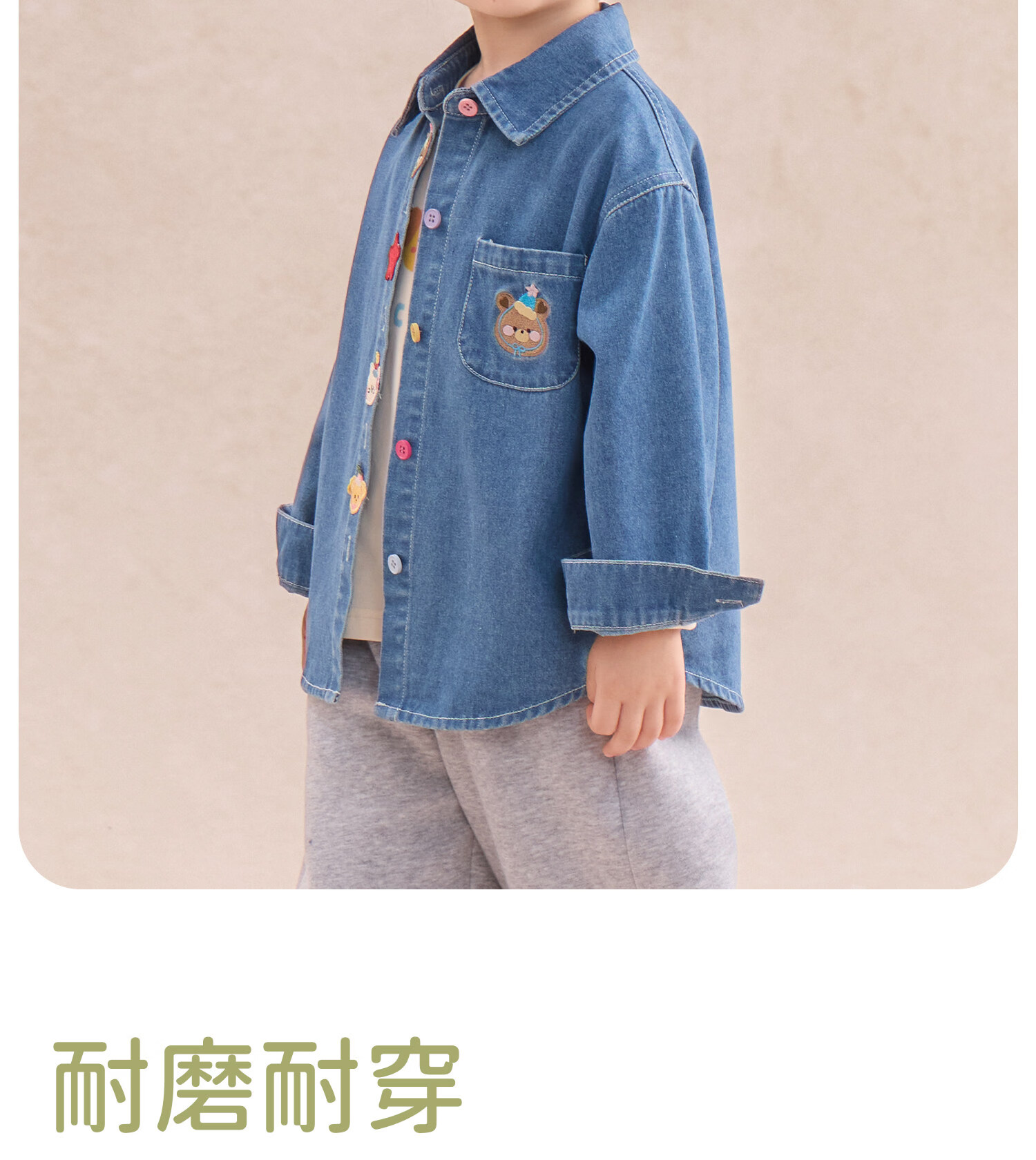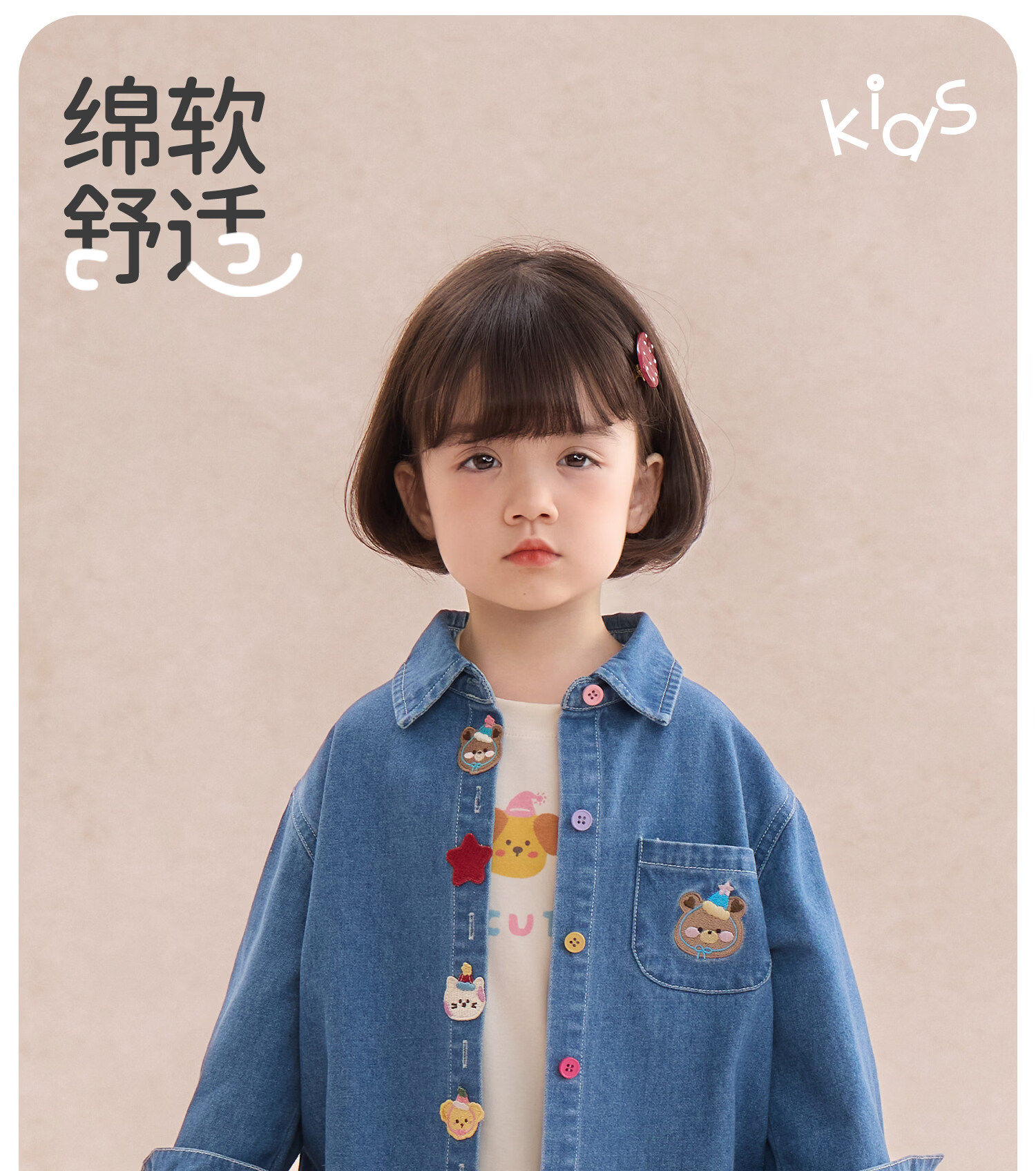 Om Bear Girls Denim Shirt Spring and Autumn 2026 New Baby Spring Long Sleeve Jacket Super Nice-looking Children's Spring Shirt Blue Full Print 100 100cm