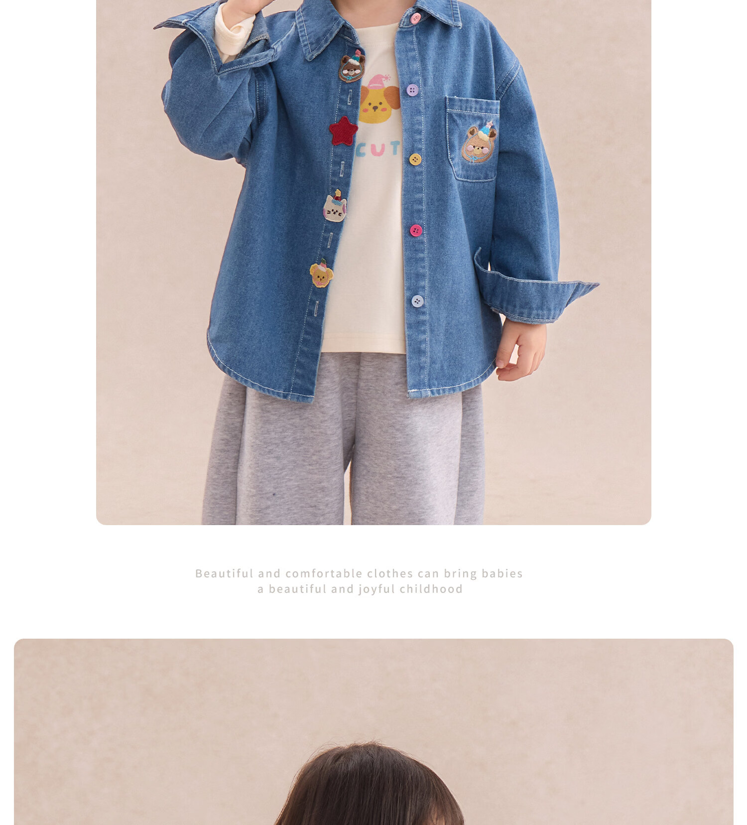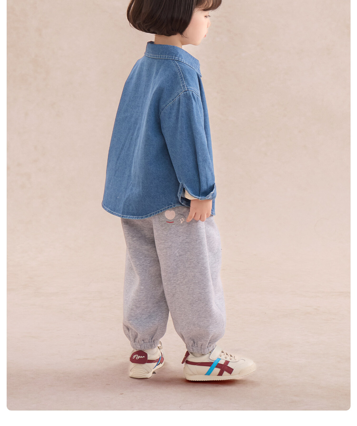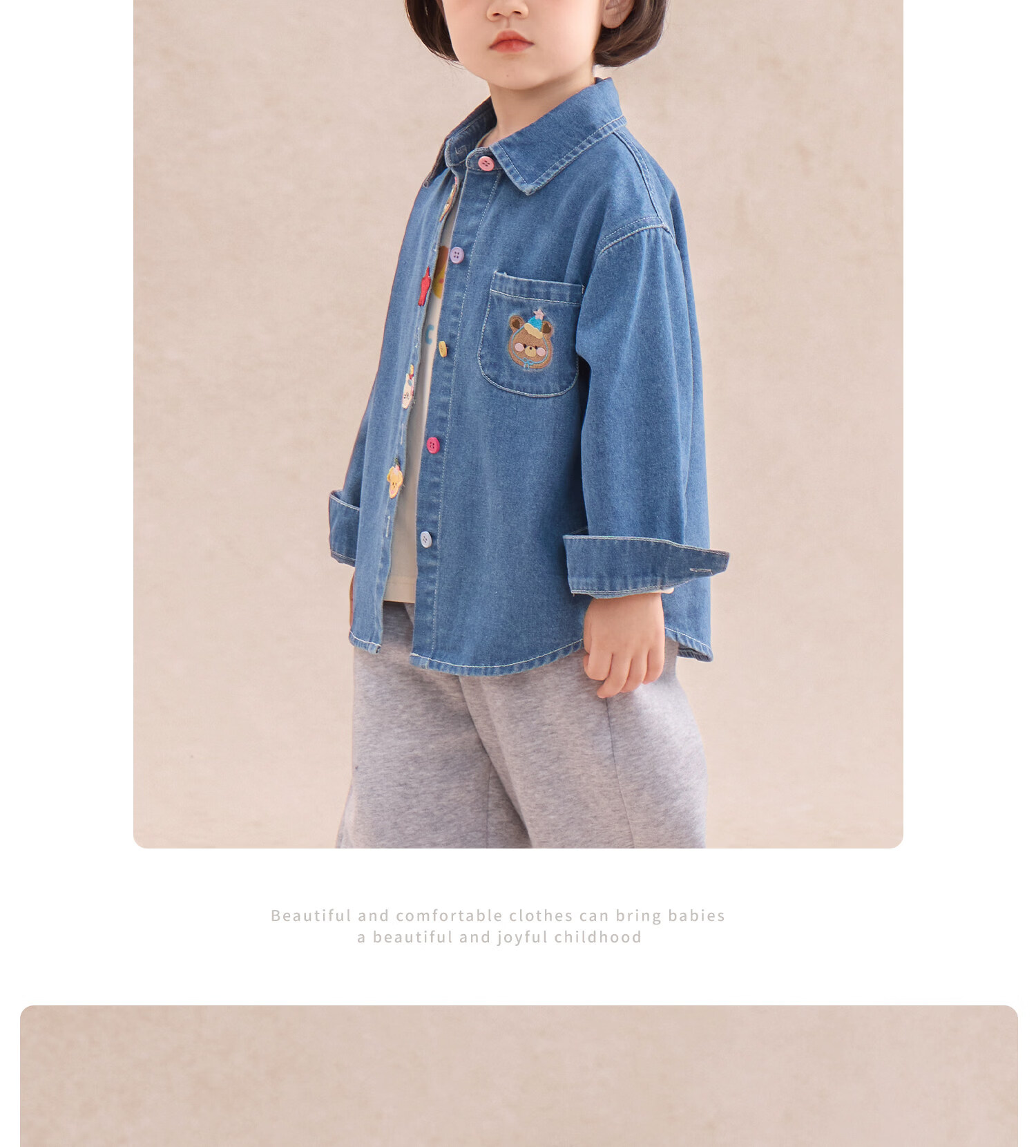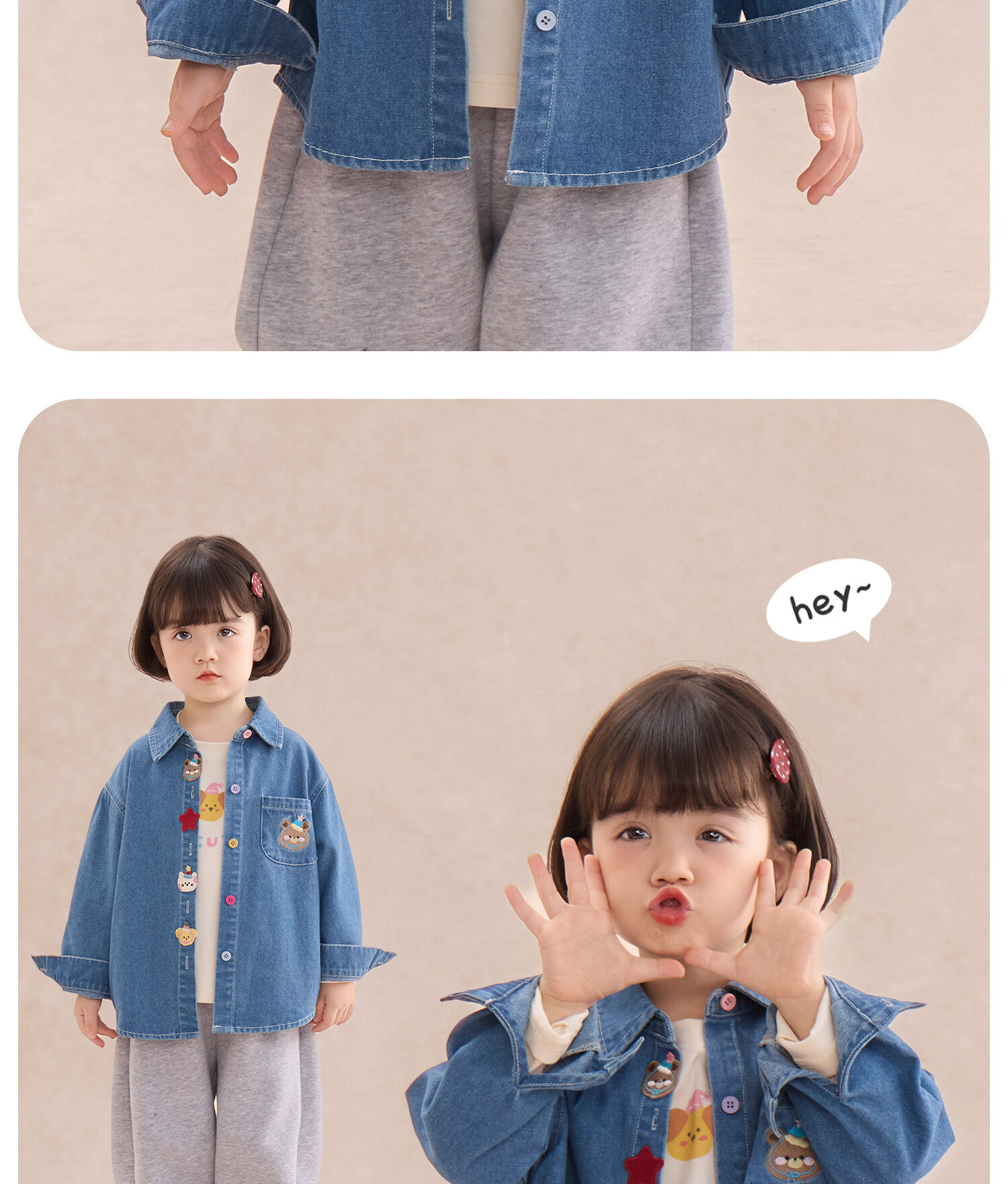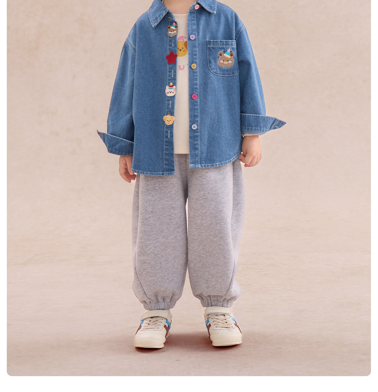 Om Bear Girls Denim Shirt Spring and Autumn 2026 New Baby Spring Long Sleeve Jacket Super Nice-looking Children's Spring Shirt Blue Full Print 100 100cm