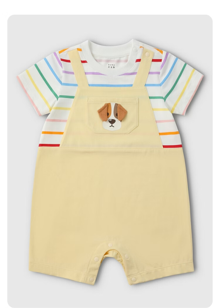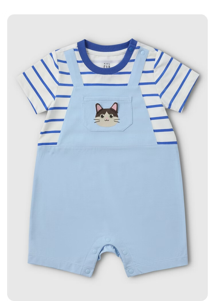 Gap Gap Infant and Toddler 2026 Spring New Cute Fake Two-piece Shorts Jumpsuit Children's Romper 867628 Sky Blue 66cm (3-6 Months) Asian Size