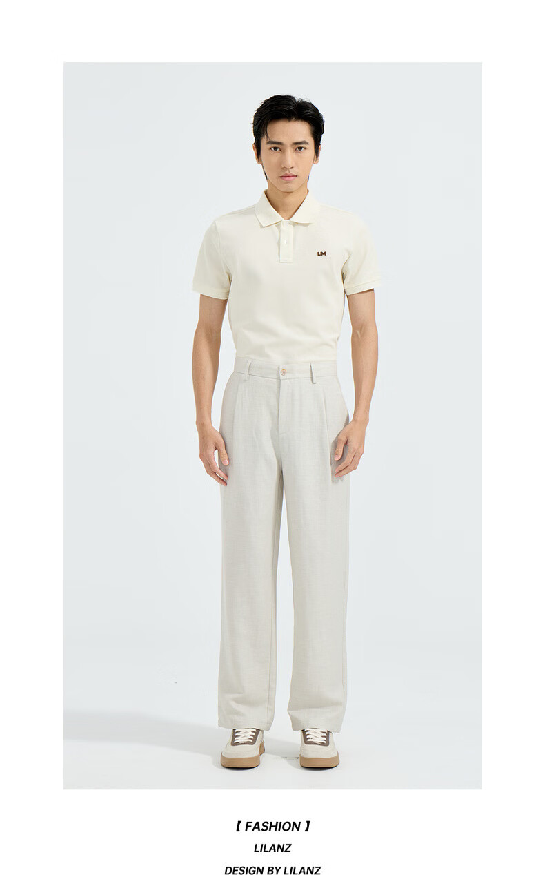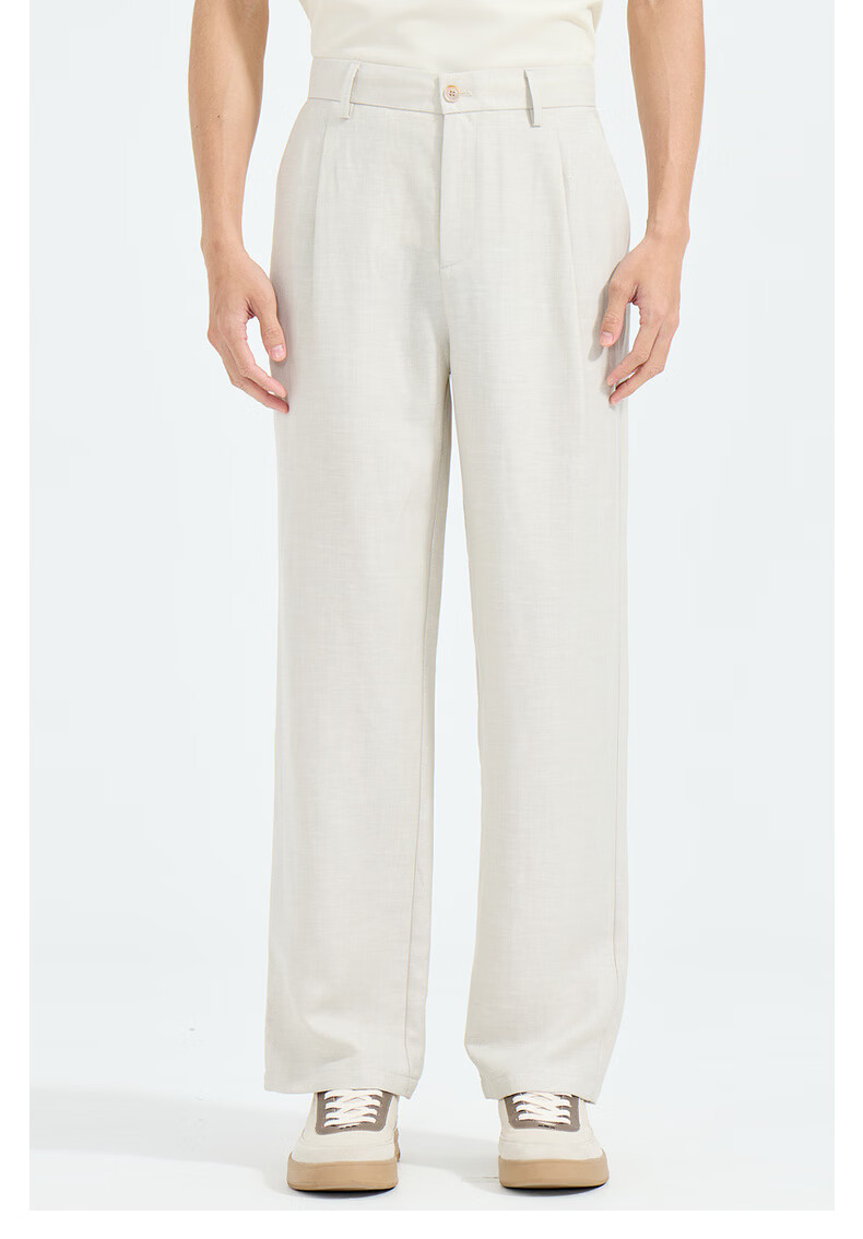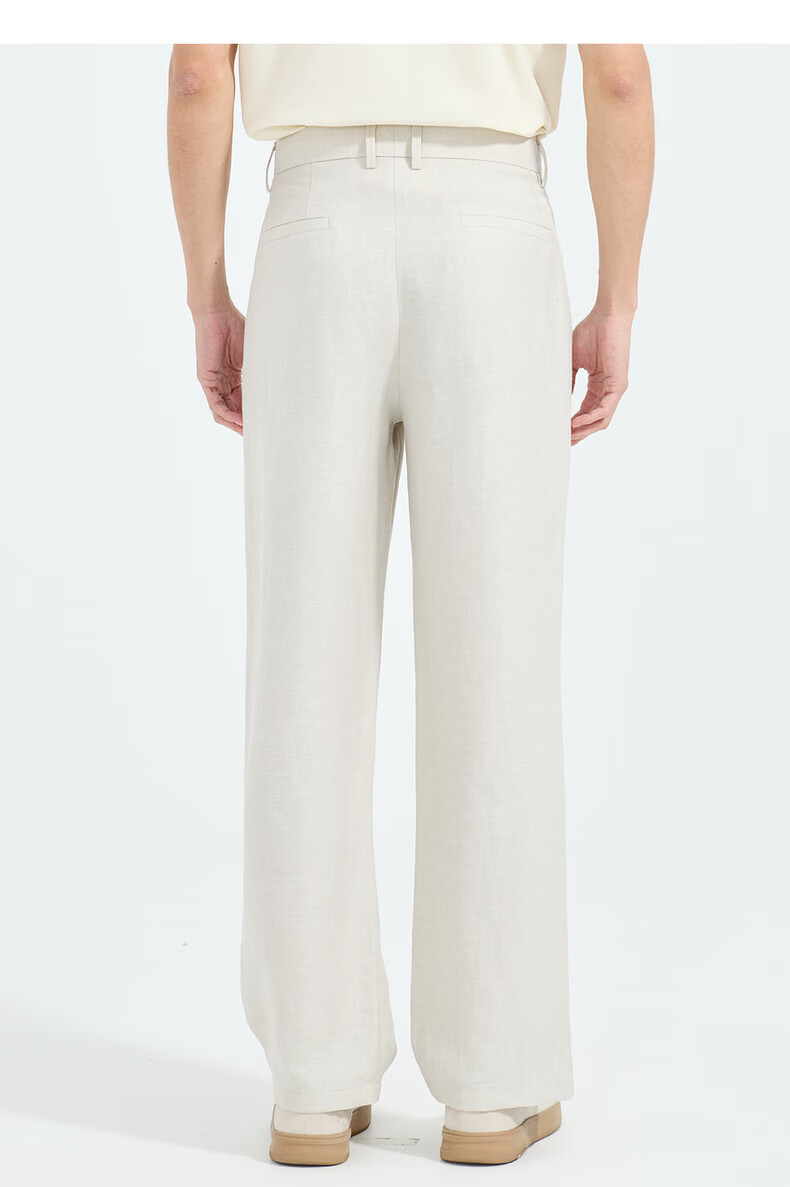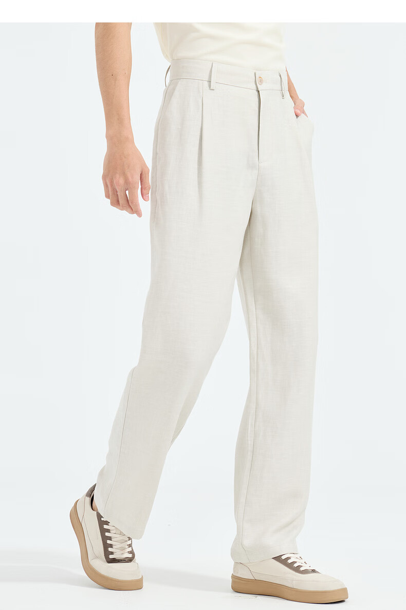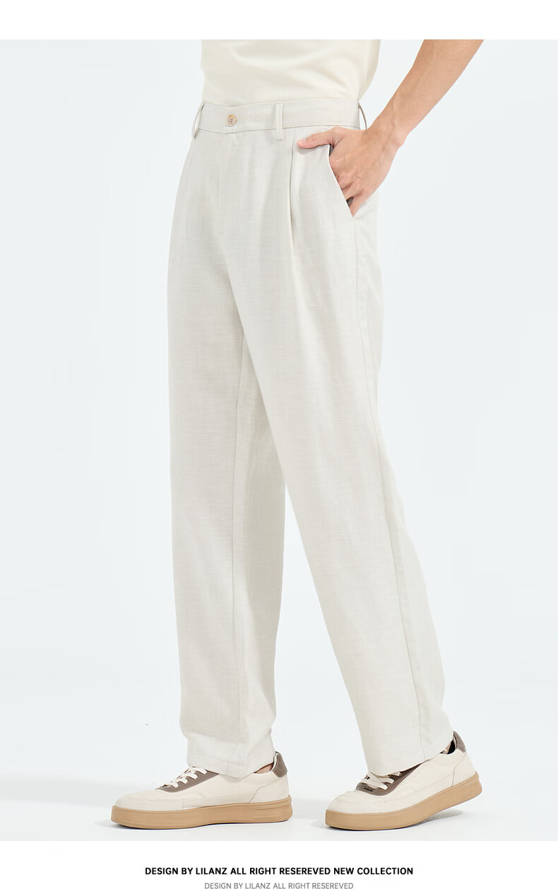 LiLang Youth Business Men's Pants, Shopping Mall Same Style Casual Pants for Men, Elastic, Easy-Care, Lightweight and Breathable Linen Pants, Apricot Gray (01) 28 (160/72A)