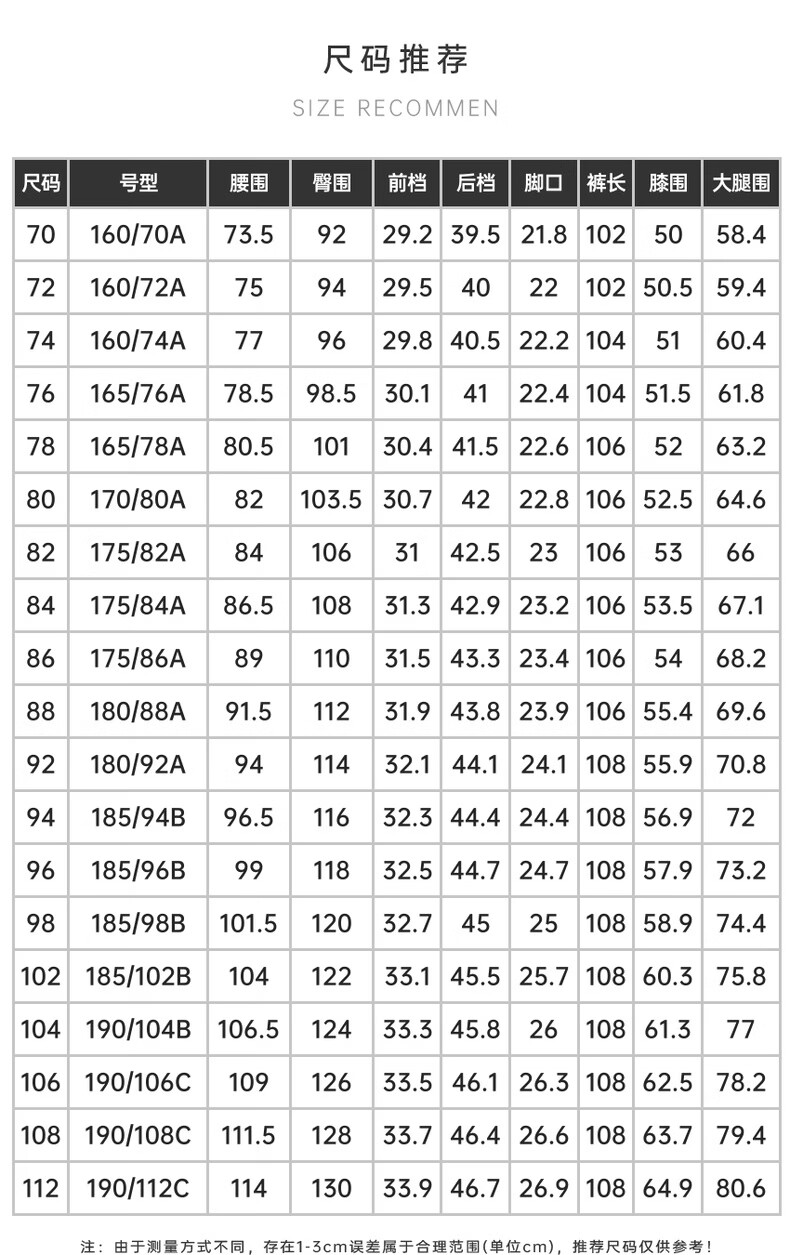 China (cm) 160-165/84-86 165-170 / 88-90 167-172 / 92-96 168-173 / 98-102 170-176 / 106-110