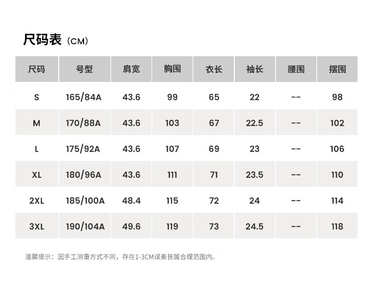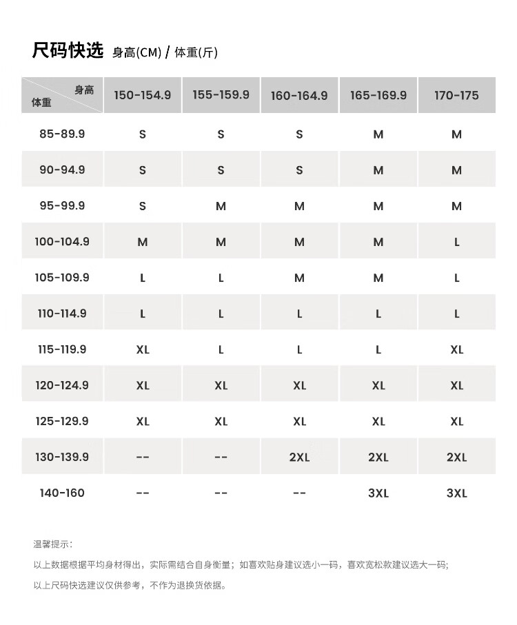 China (cm) 160-165/84-86 165-170 / 88-90 167-172 / 92-96 168-173 / 98-102 170-176 / 106-110