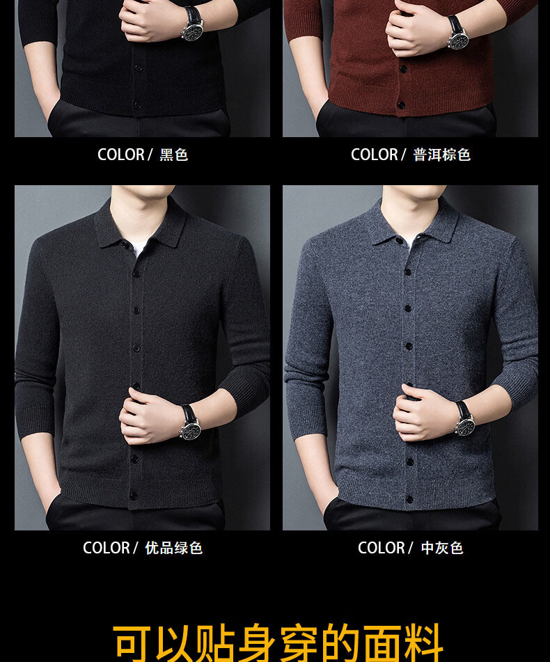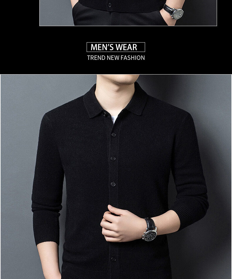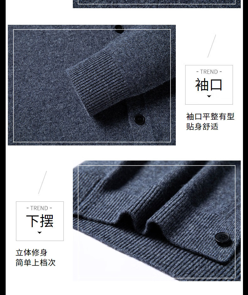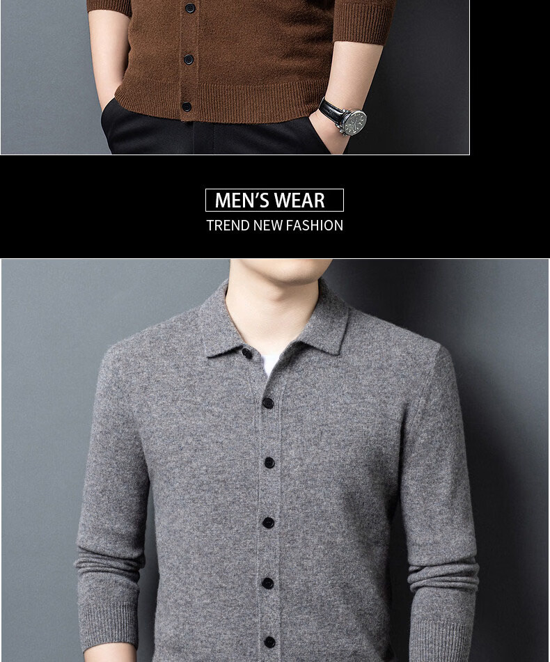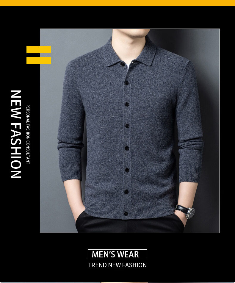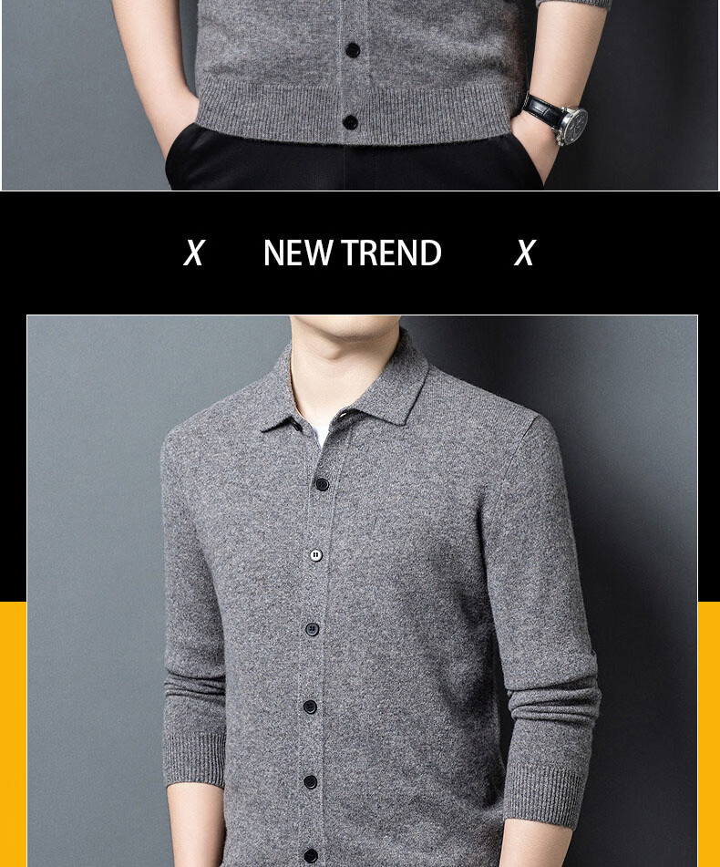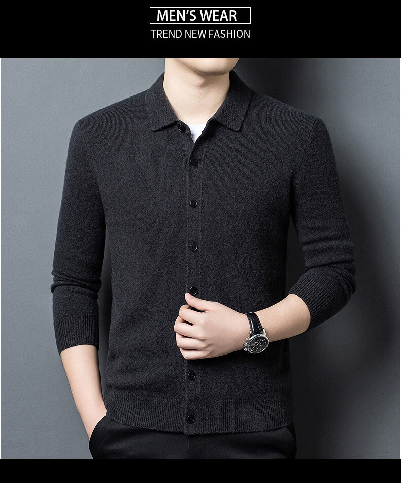 GUSKI light luxury brand high-end men's pure wool sweater casual sweater business warm knitted cardigan solid color bottoming shirt medium gray exquisite gift box M (105)