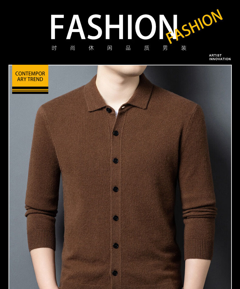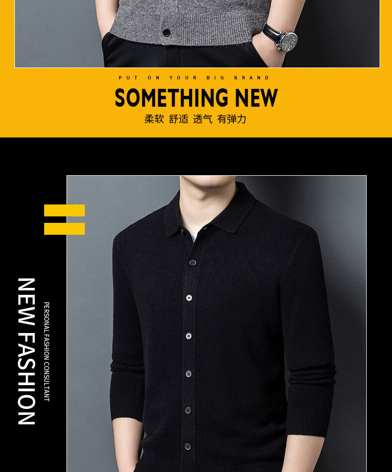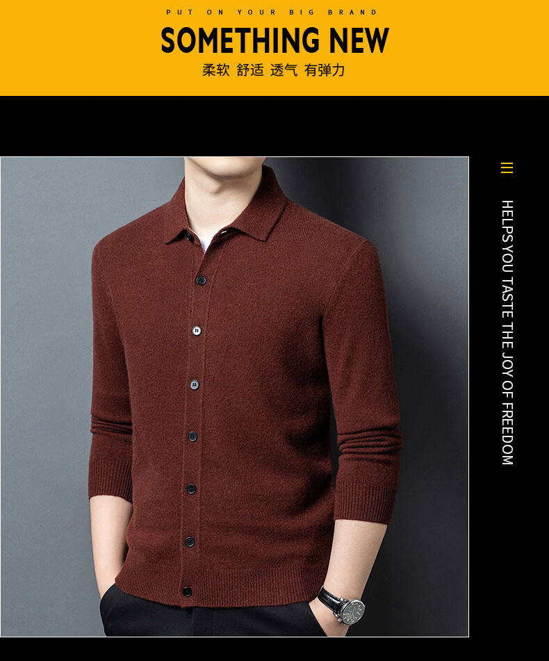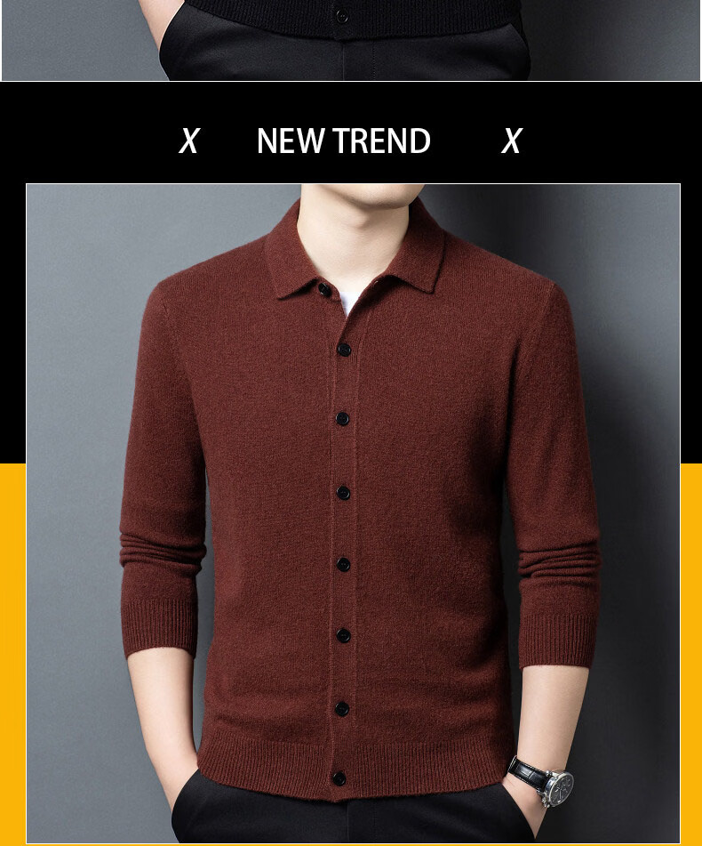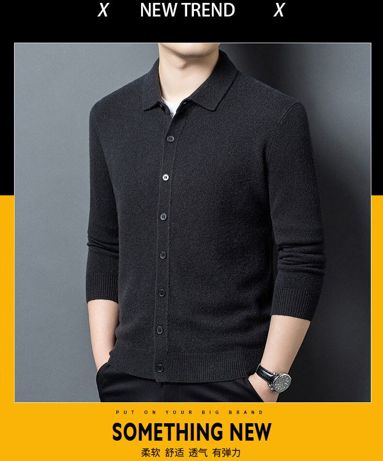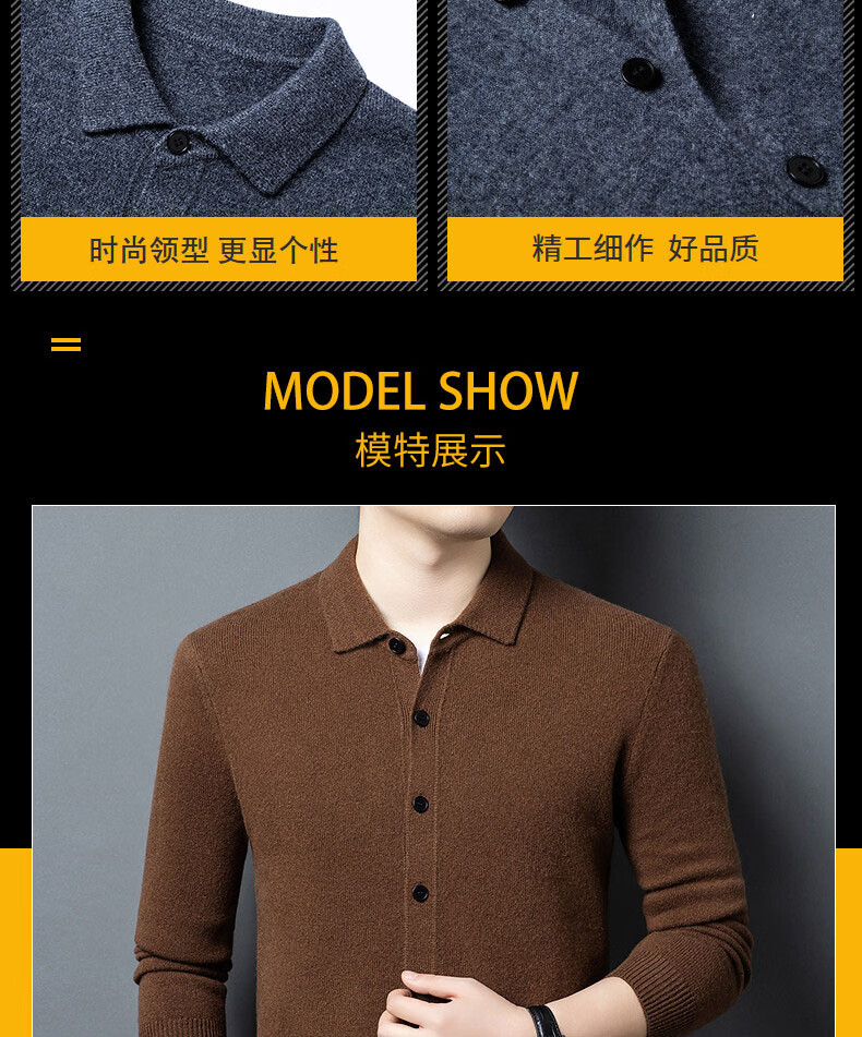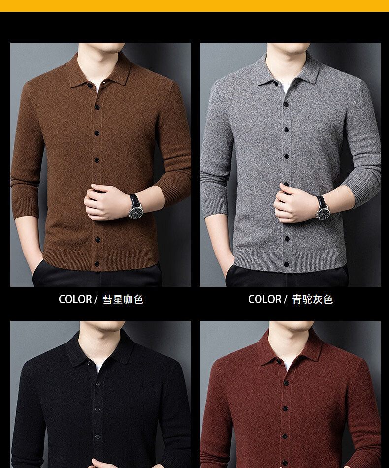 GUSKI light luxury brand high-end men's pure wool sweater casual sweater business warm knitted cardigan solid color bottoming shirt medium gray exquisite gift box M (105)
