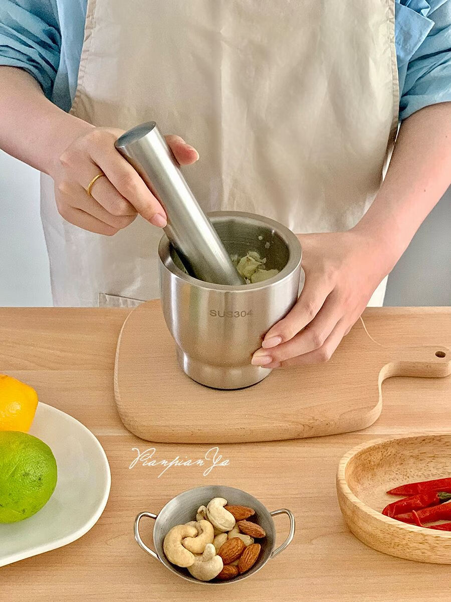 Jieyunmao multifunctional 304 stainless steel masher household manual spice grinder masher masher jar garlic paste mortar 10cm