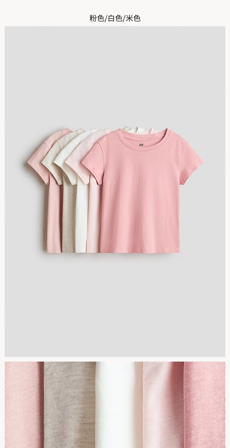 H&M 2026 Spring New Children's Clothing Children's Girls 5-piece T-shirt 1318443 Pink/White/Beige 110 110/56 (2-4Y)