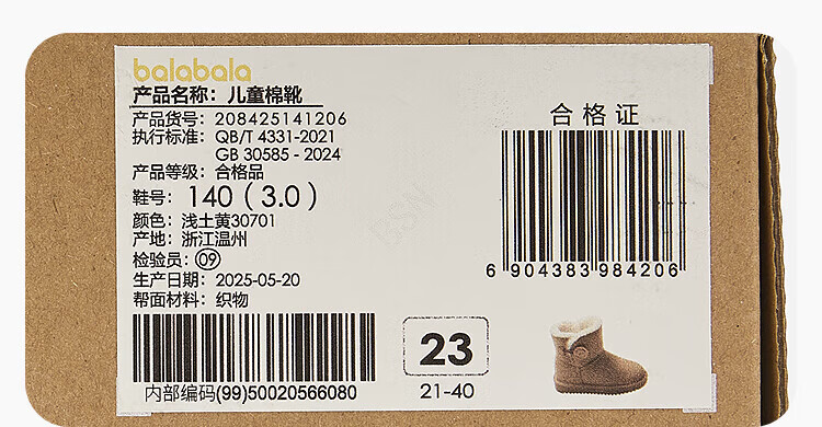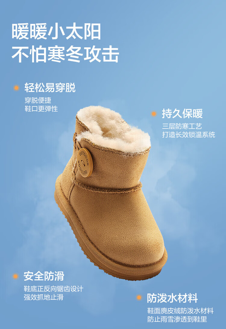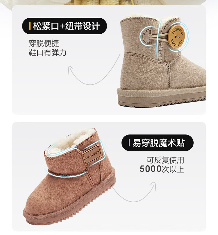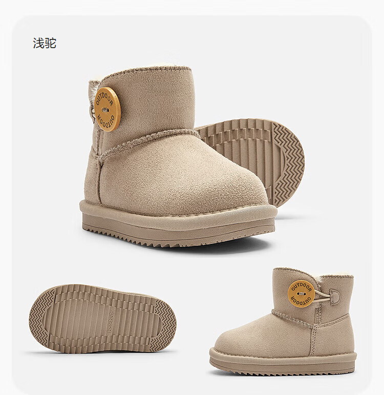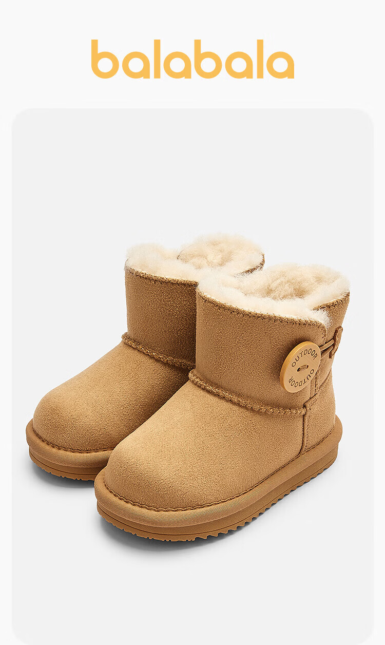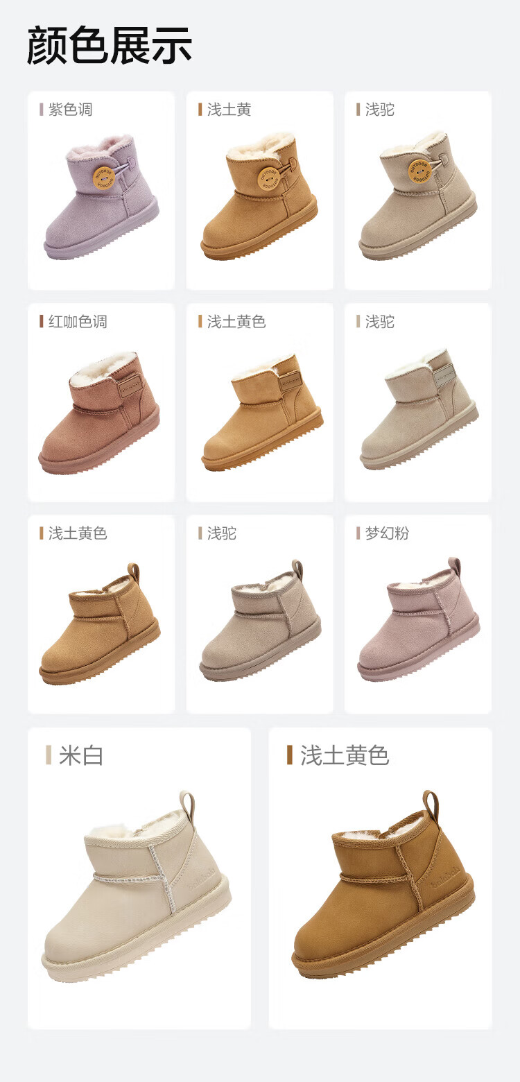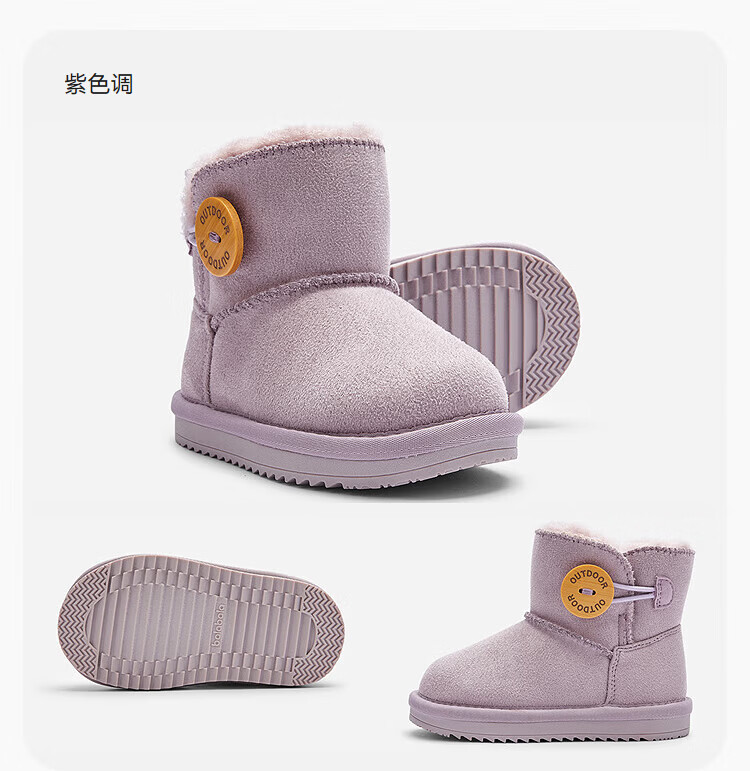 Balabala children's shoes children's snow boots for boys and girls cotton boots thickened velvet mid-calf boots winter boots warm shoes mid-top button-purple tone non-slip and water-repellent 24 (foot length 14.3-14.7/inner length 15.7)