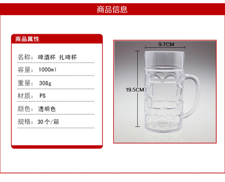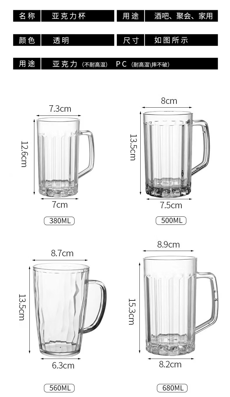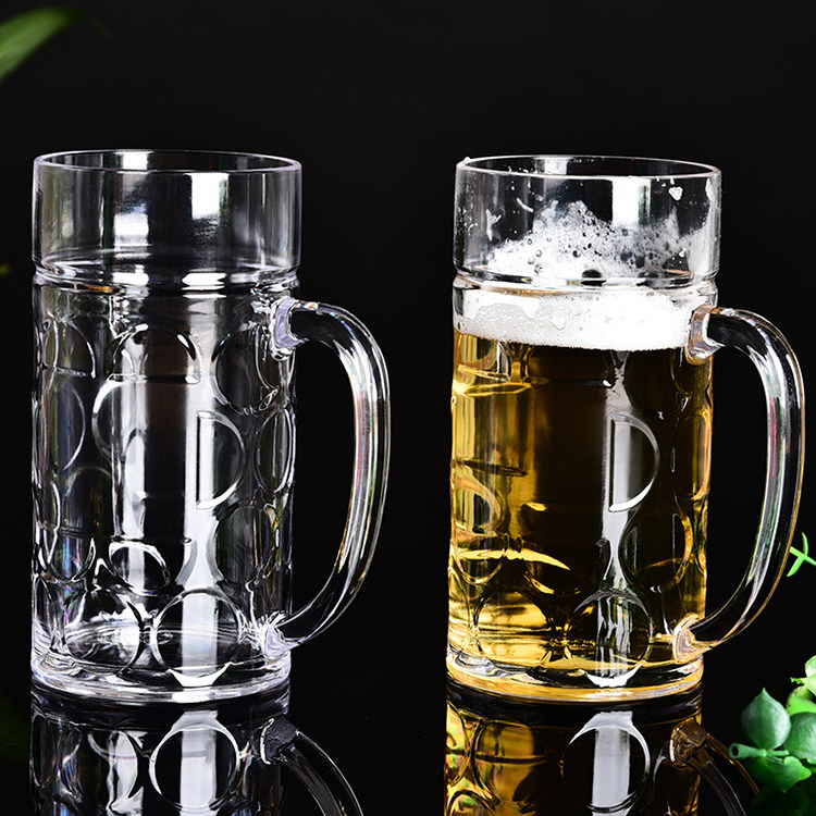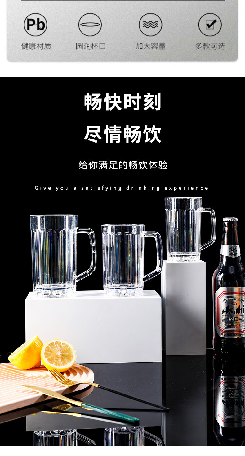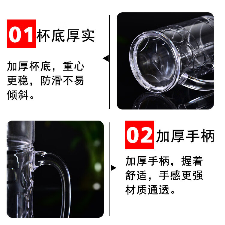 He Jiagong 6-pack PS plastic beer mug, acrylic draft beer mug, pineapple mug with handle, catering tea cup, beverage cup, diamond style, 10-pack, unbreakable, high temperature resistant 560ml