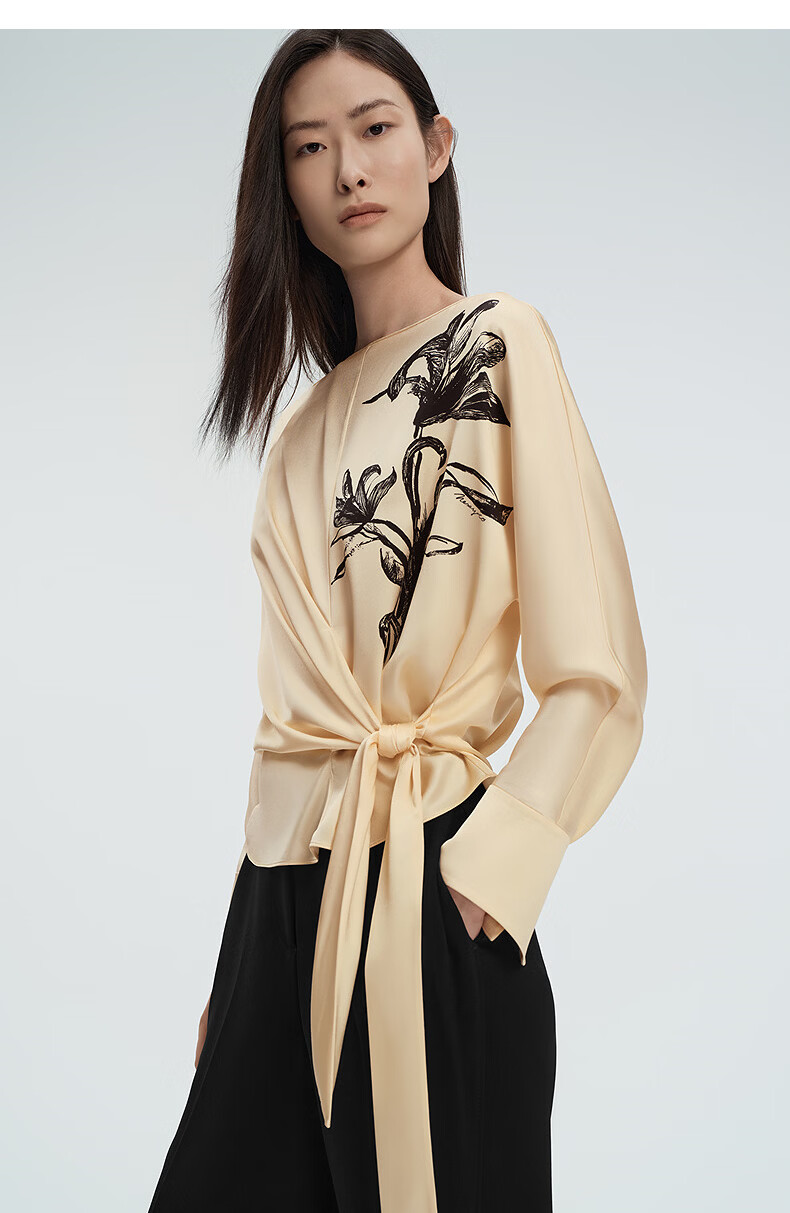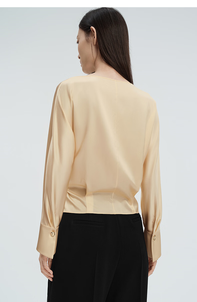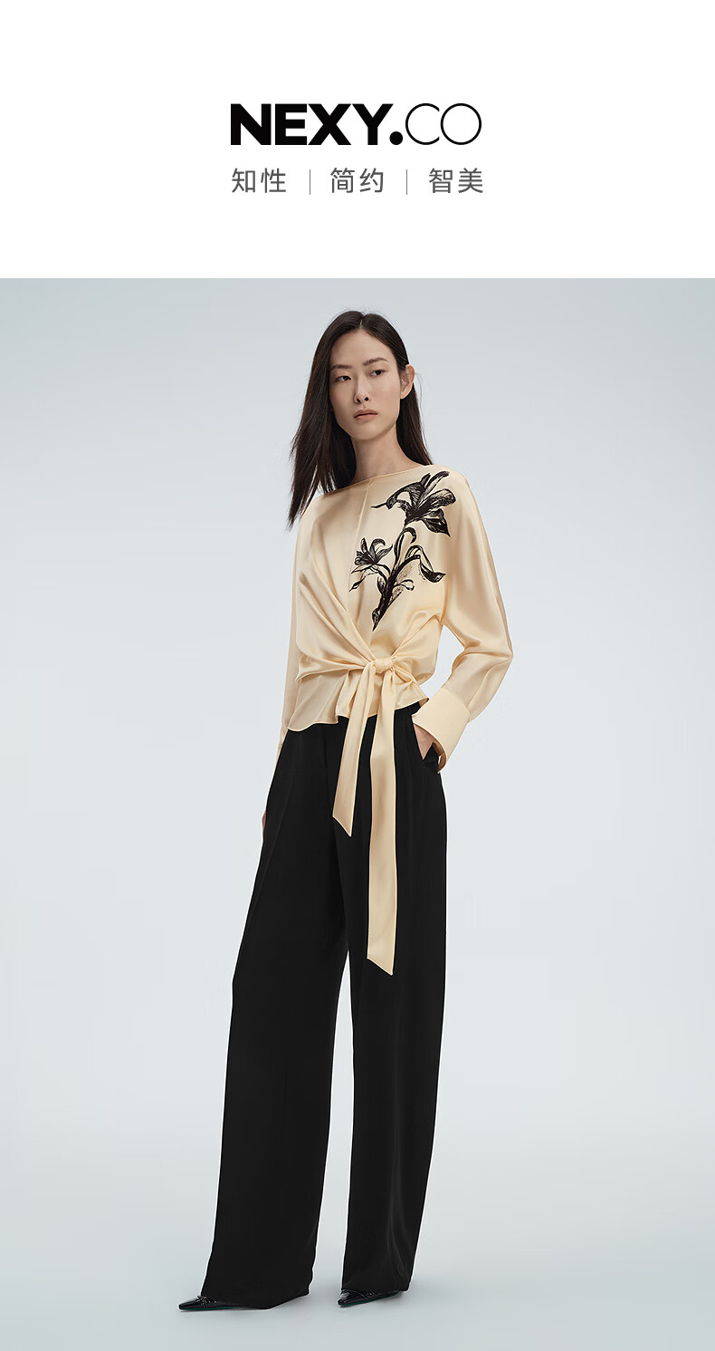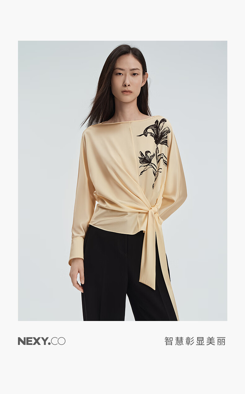 NEXY.CO shopping mall's same style 2026 spring new emerald-colored strappy mulberry silk one-piece collar top, light yellow S