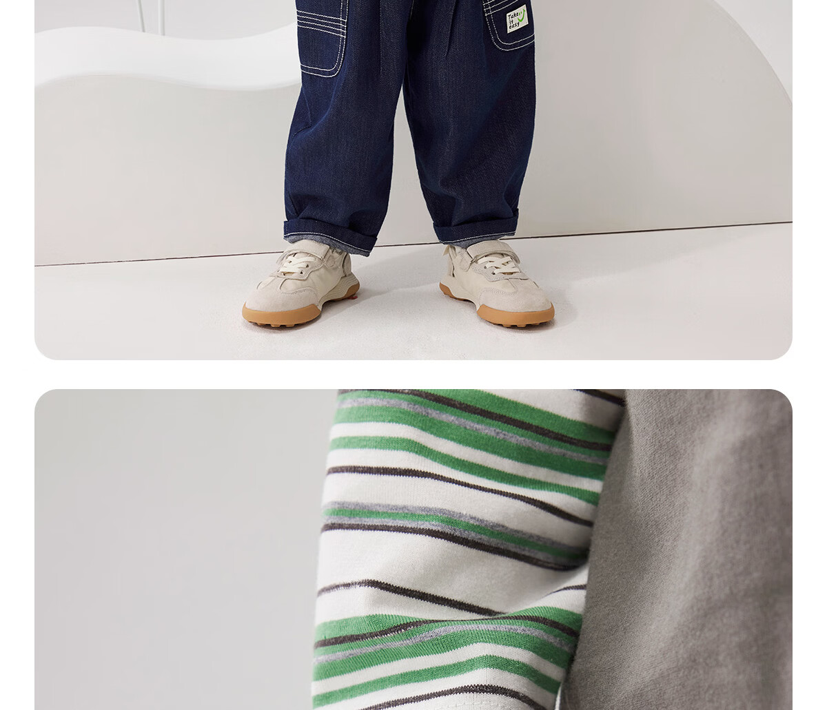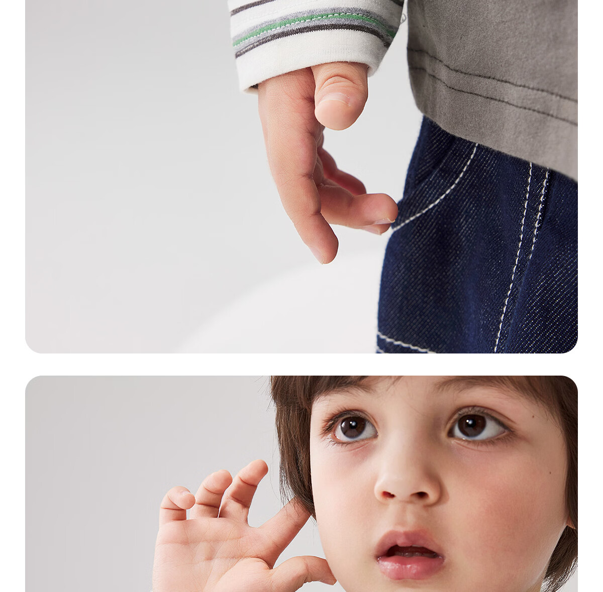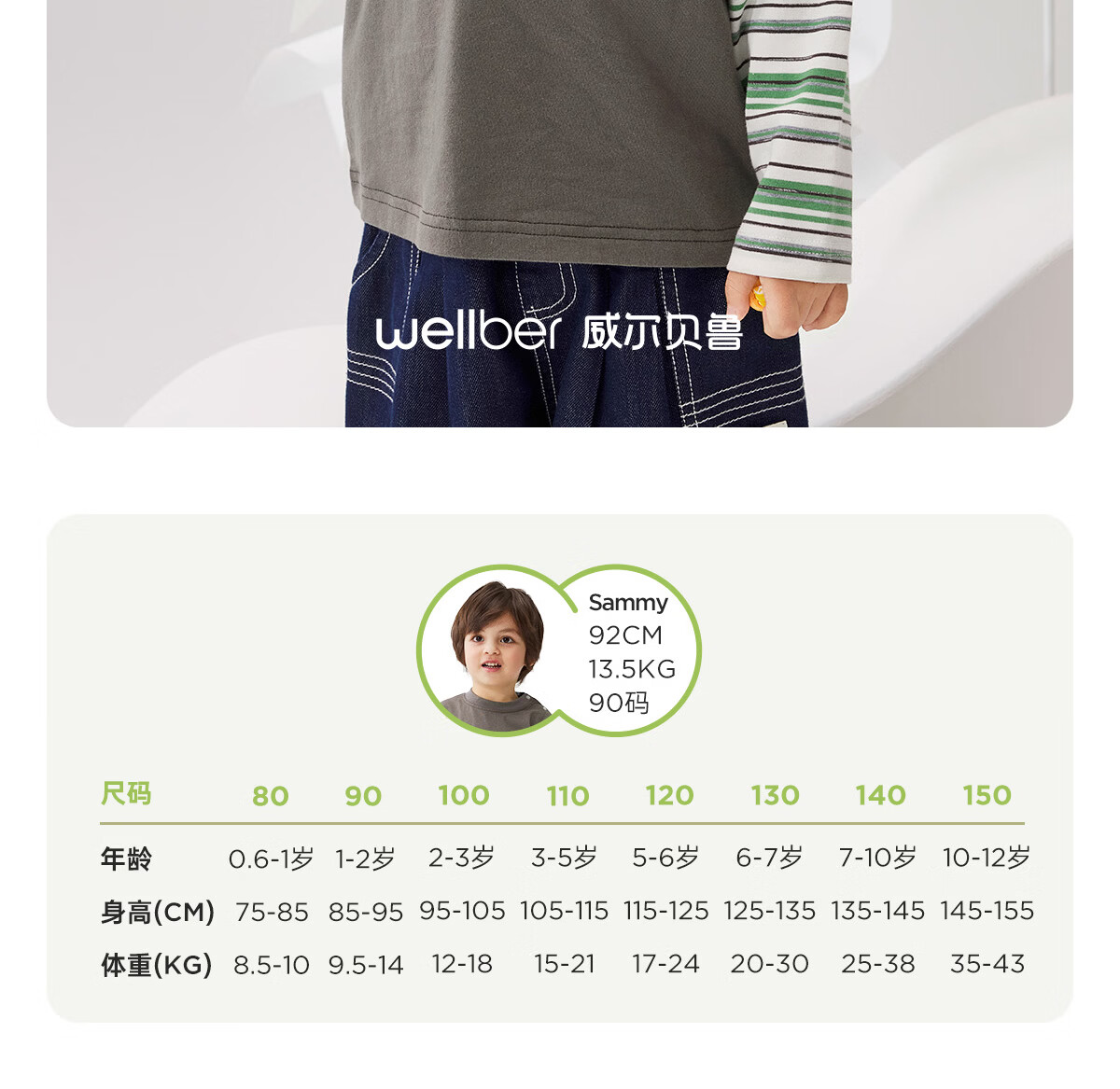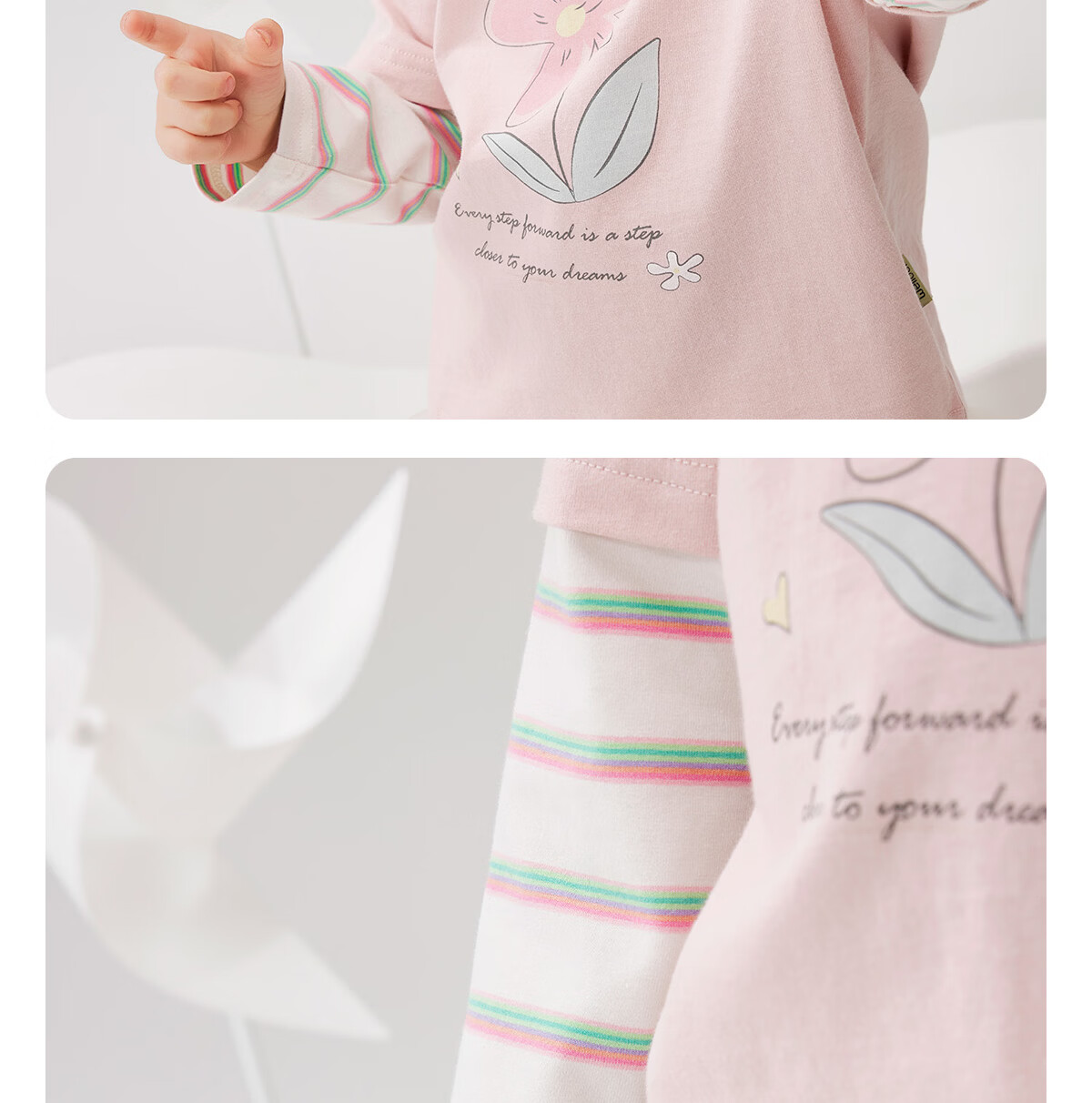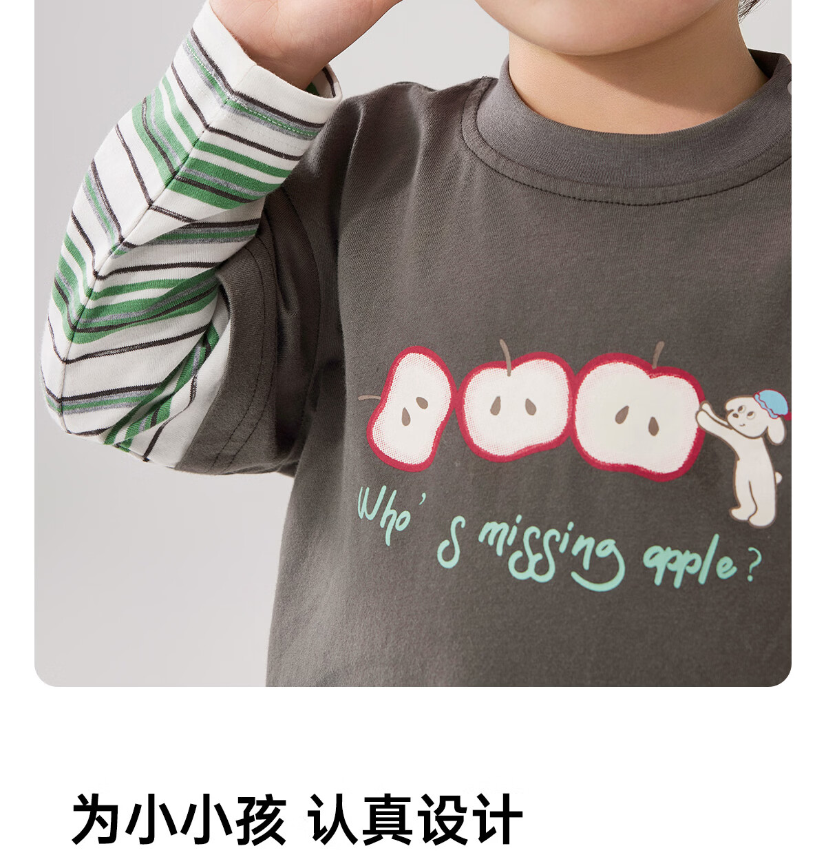 WELLBER children's T-shirt baby striped fake two-piece long-sleeved top for children and middle-aged children pure cotton versatile dark gray 110