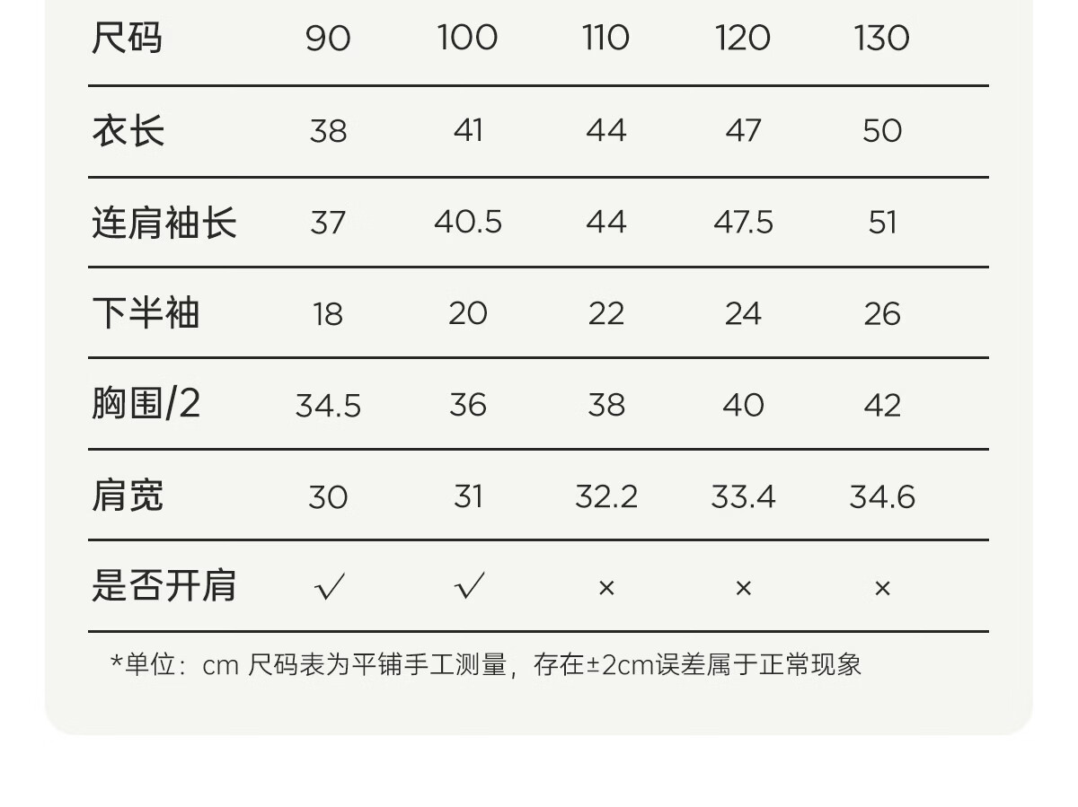 Size (cm) 42 44 46 48 50
