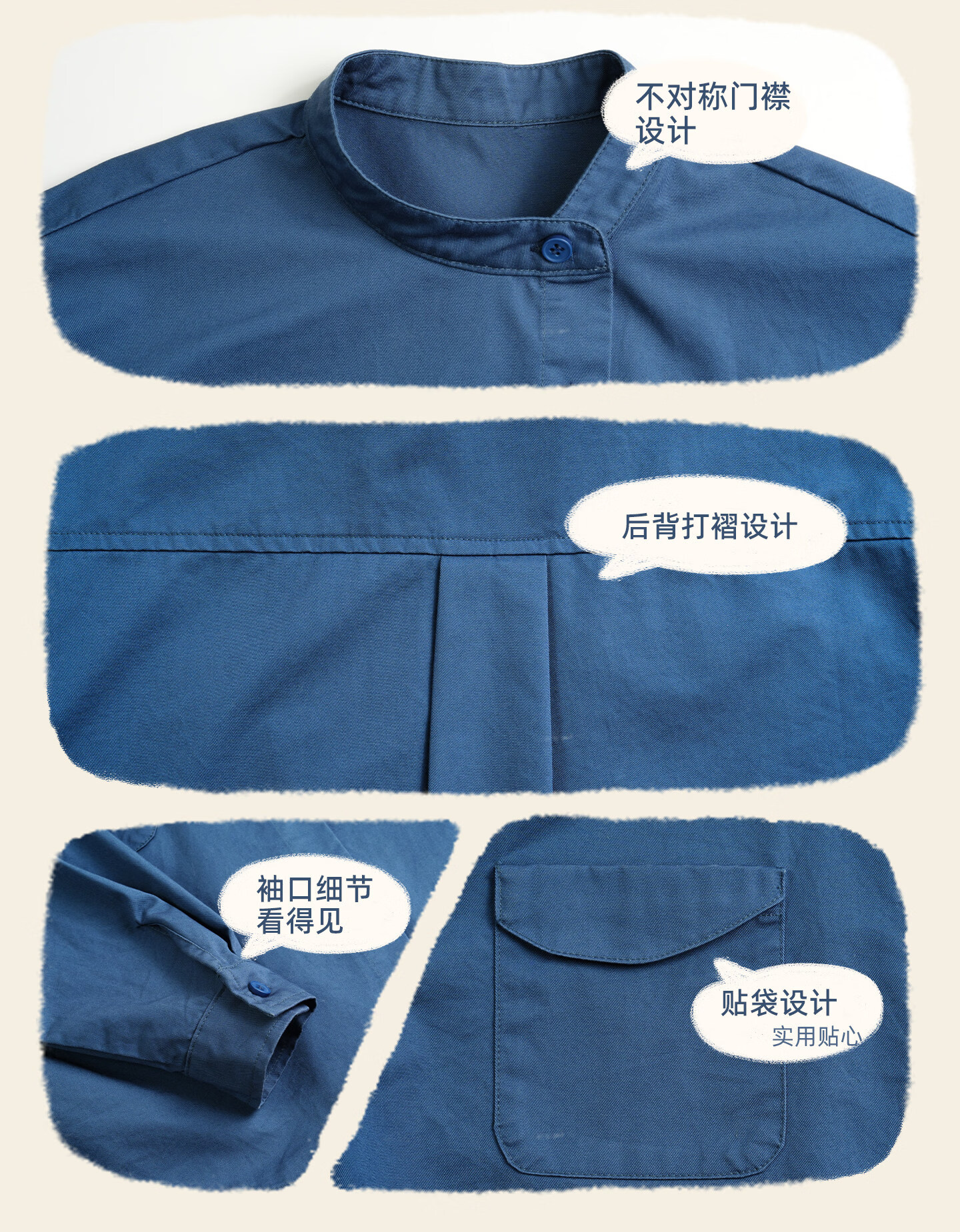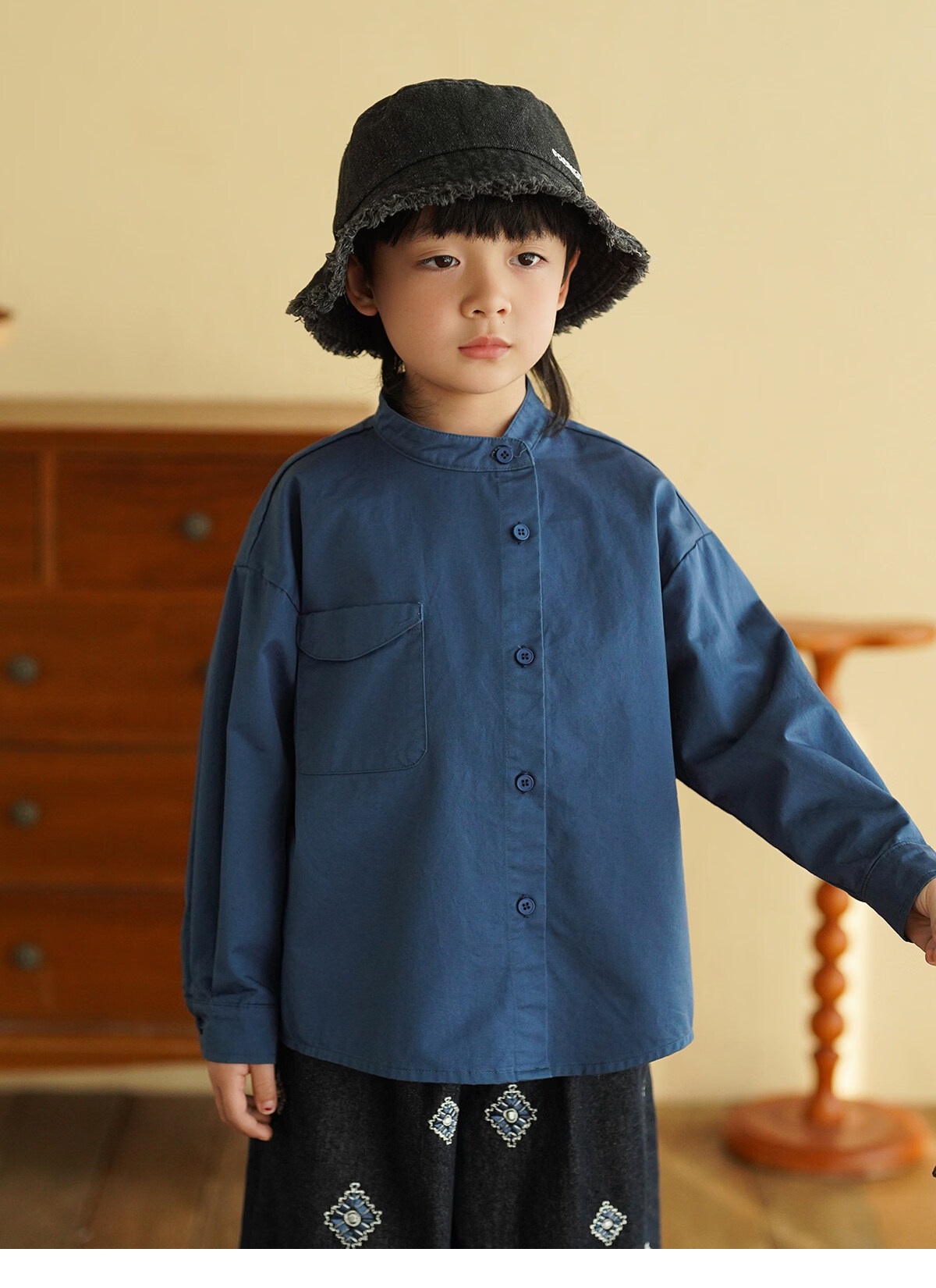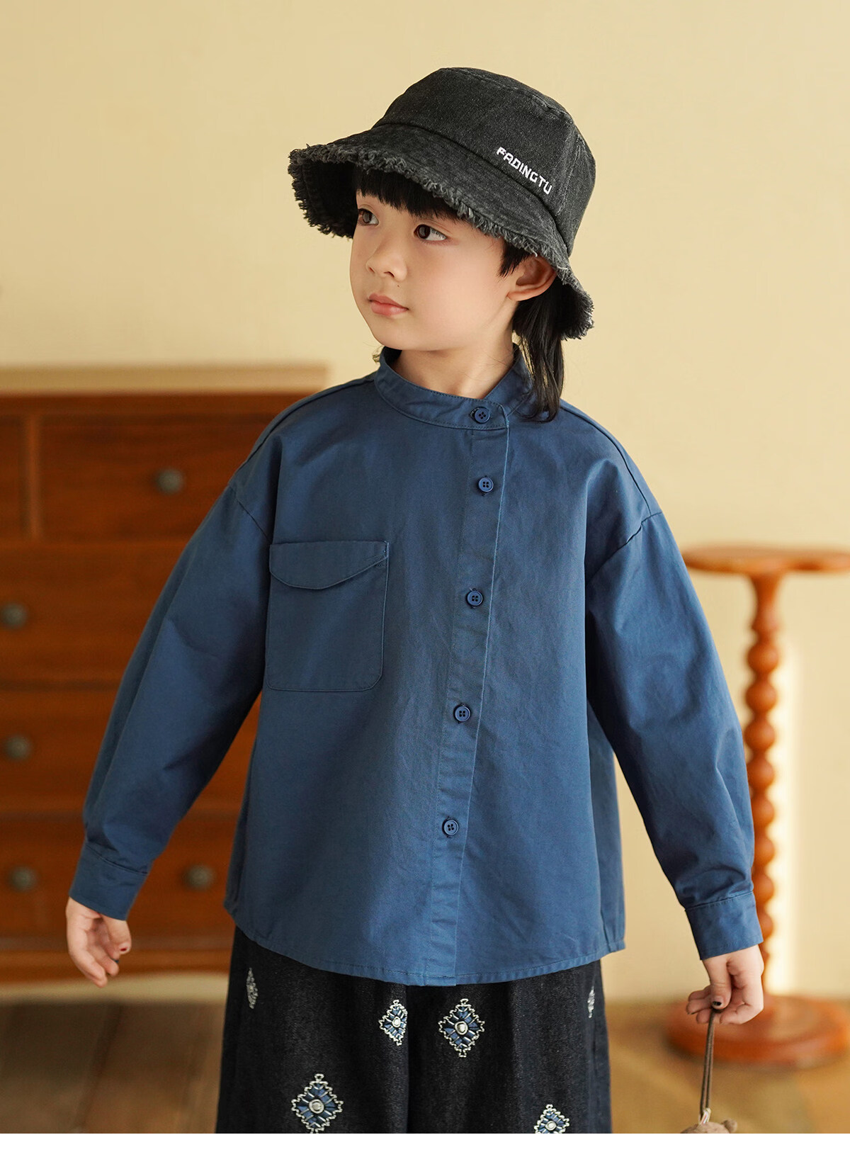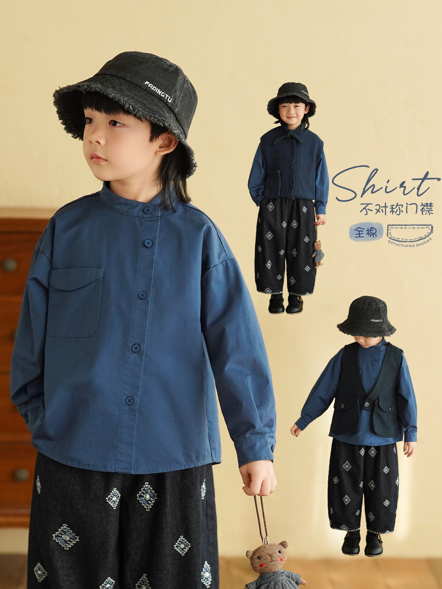 Yantaijia children's clothing children's pure cotton long-sleeved shirt 2026 spring baby irregular blue shirt boy's top blue 80