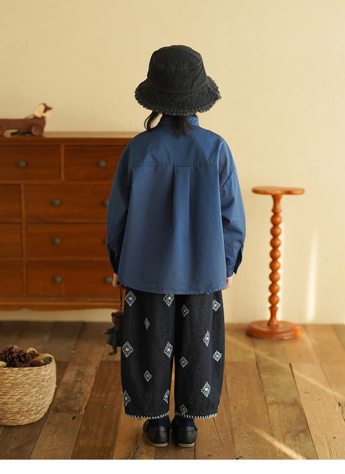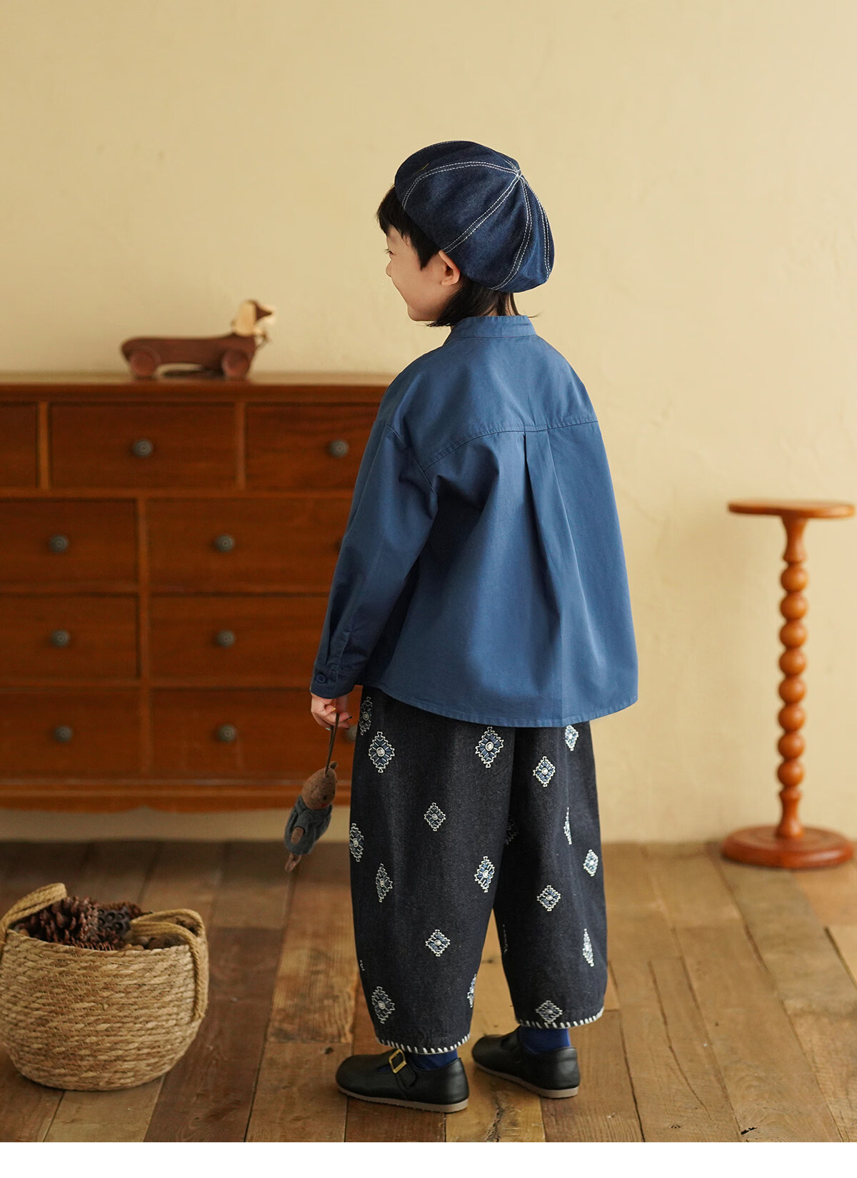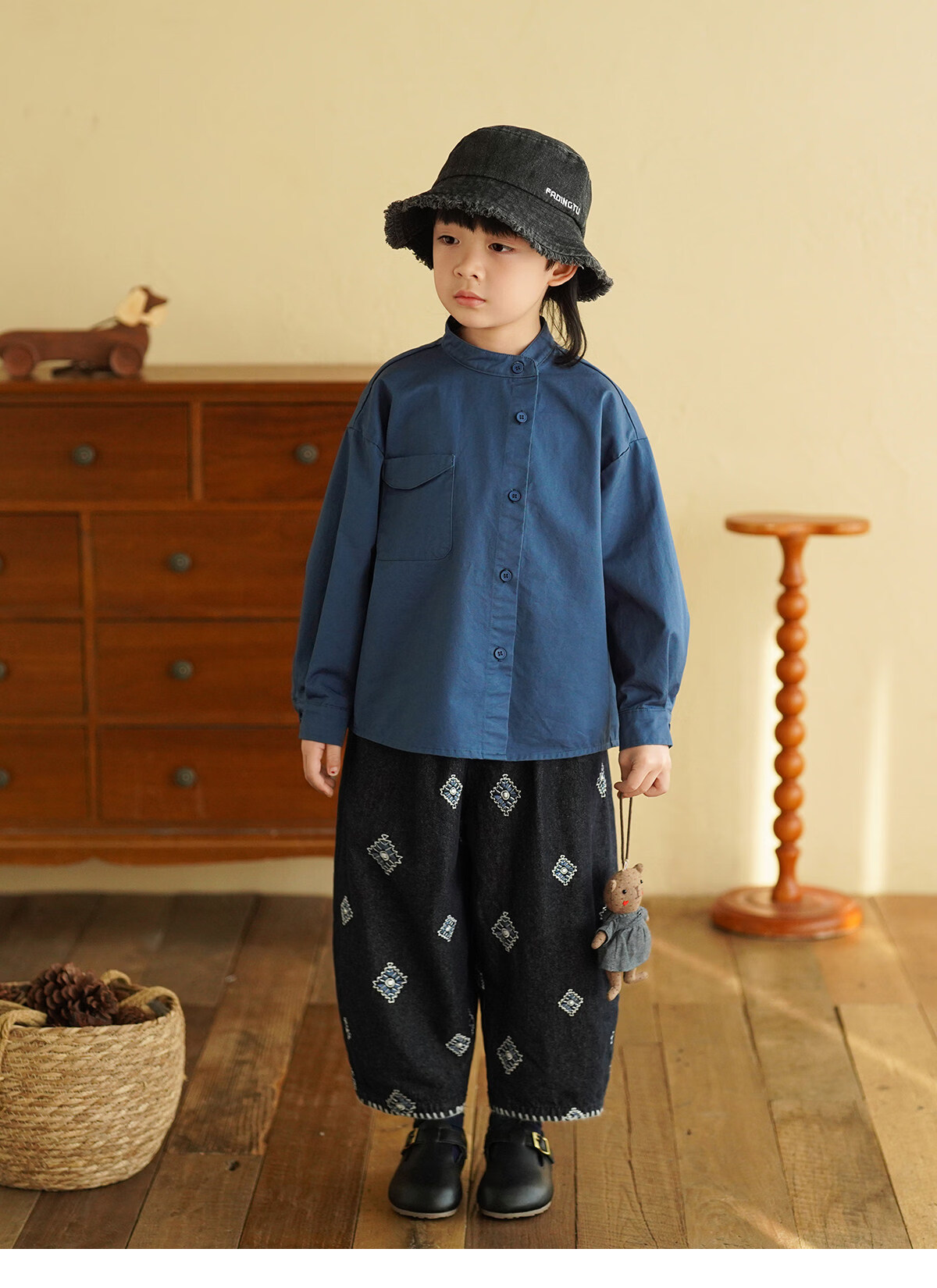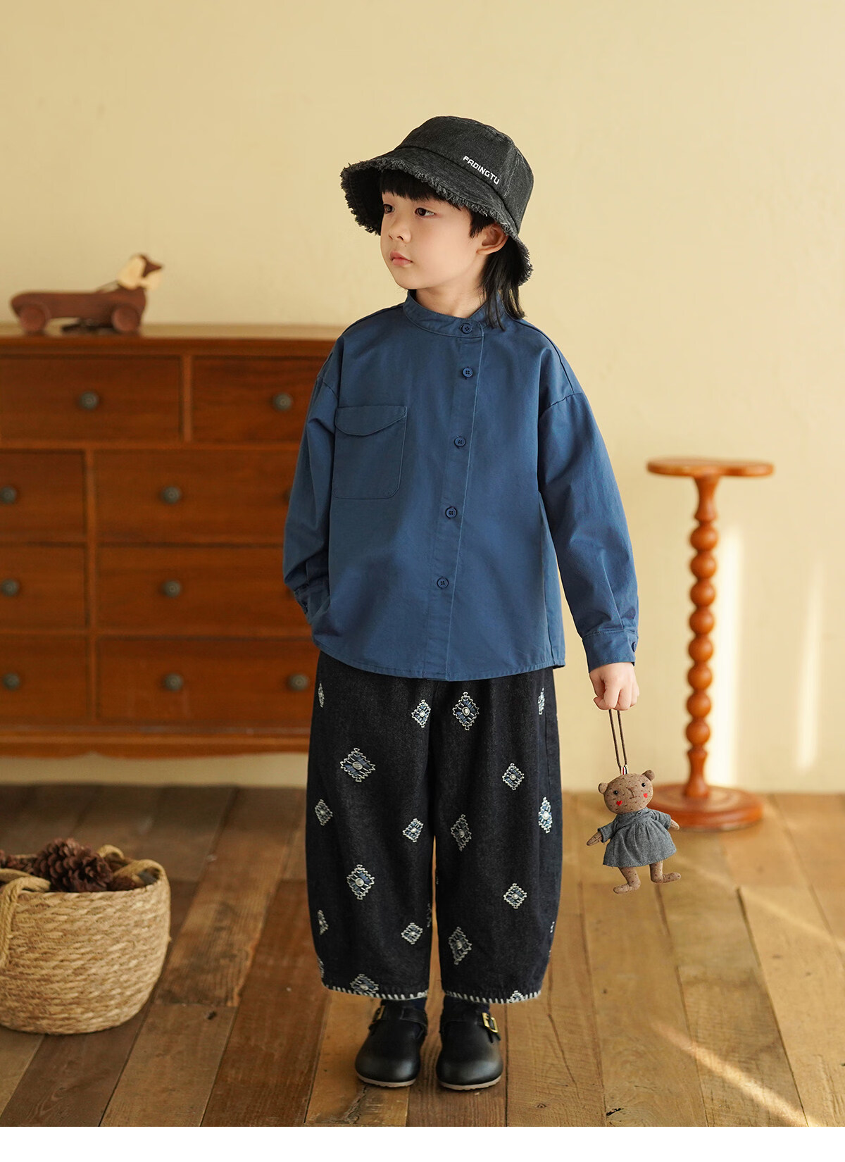 Yantaijia children's clothing children's pure cotton long-sleeved shirt 2026 spring baby irregular blue shirt boy's top blue 80
