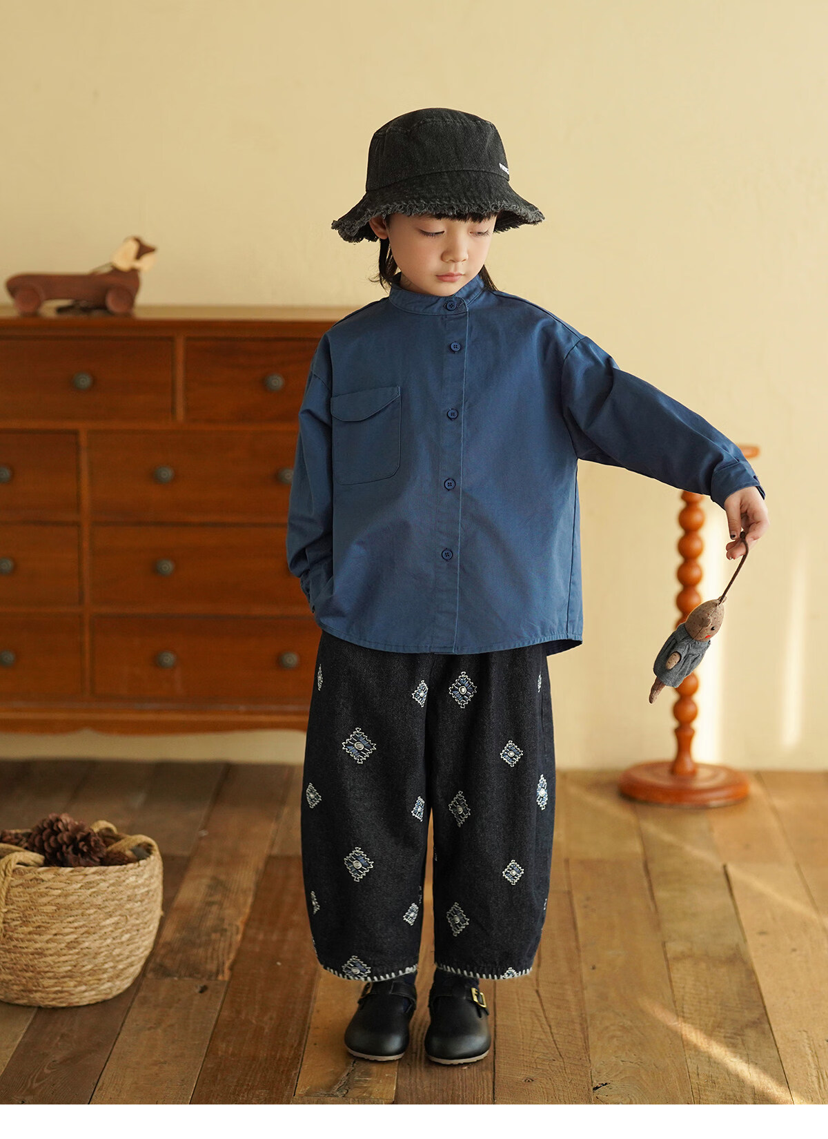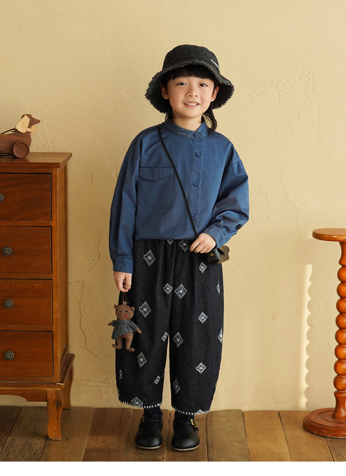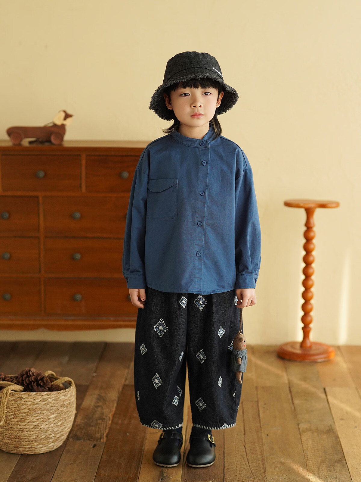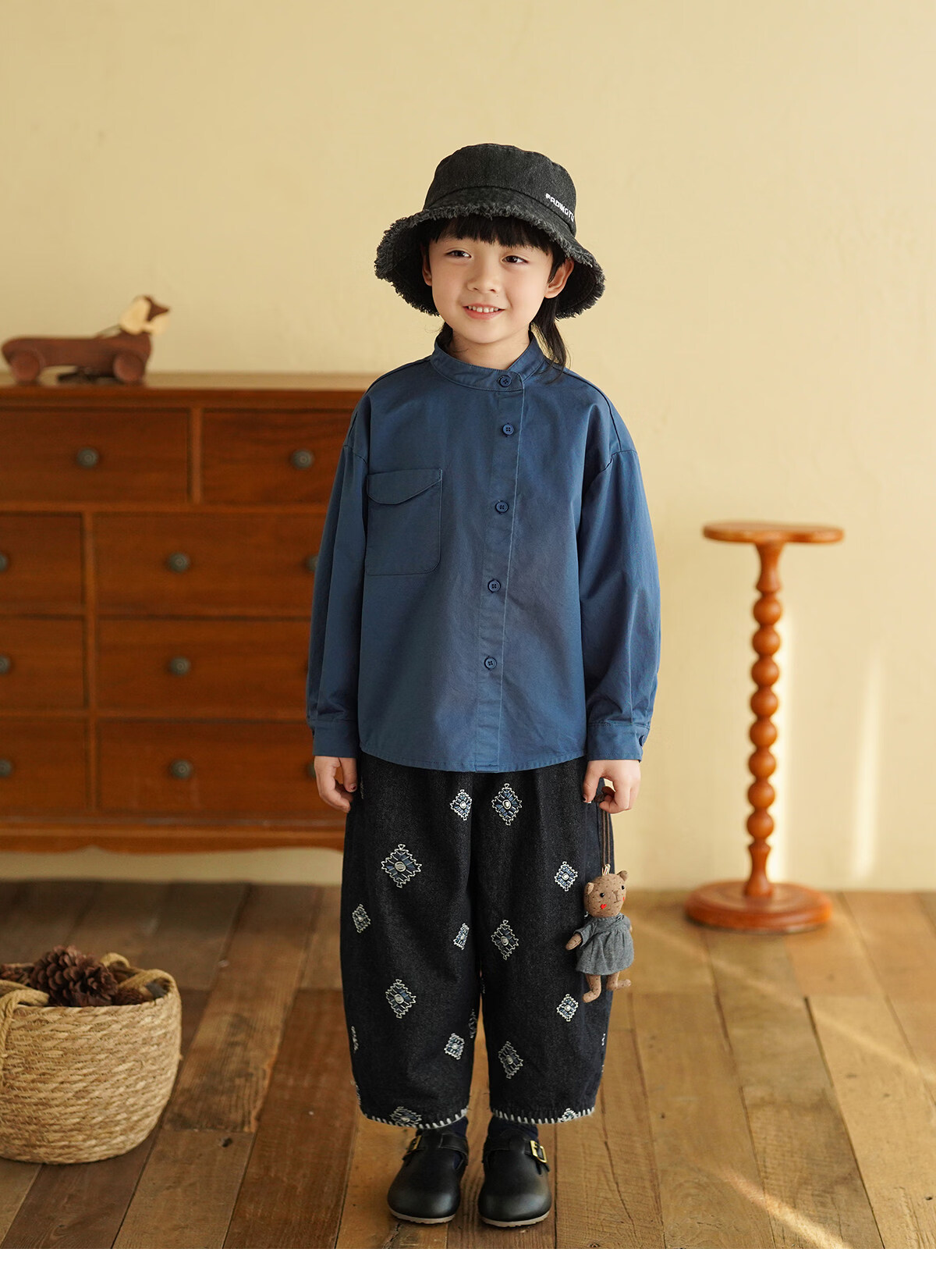 Yantaijia children's clothing children's pure cotton long-sleeved shirt 2026 spring baby irregular blue shirt boy's top blue 80
