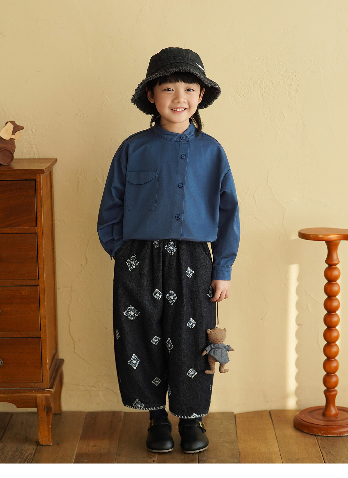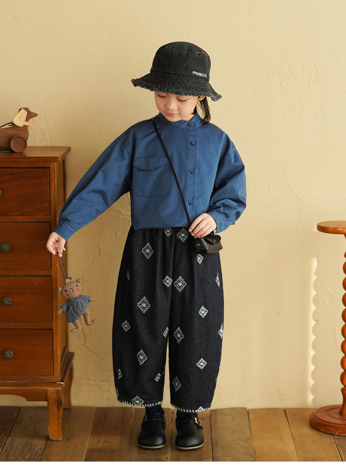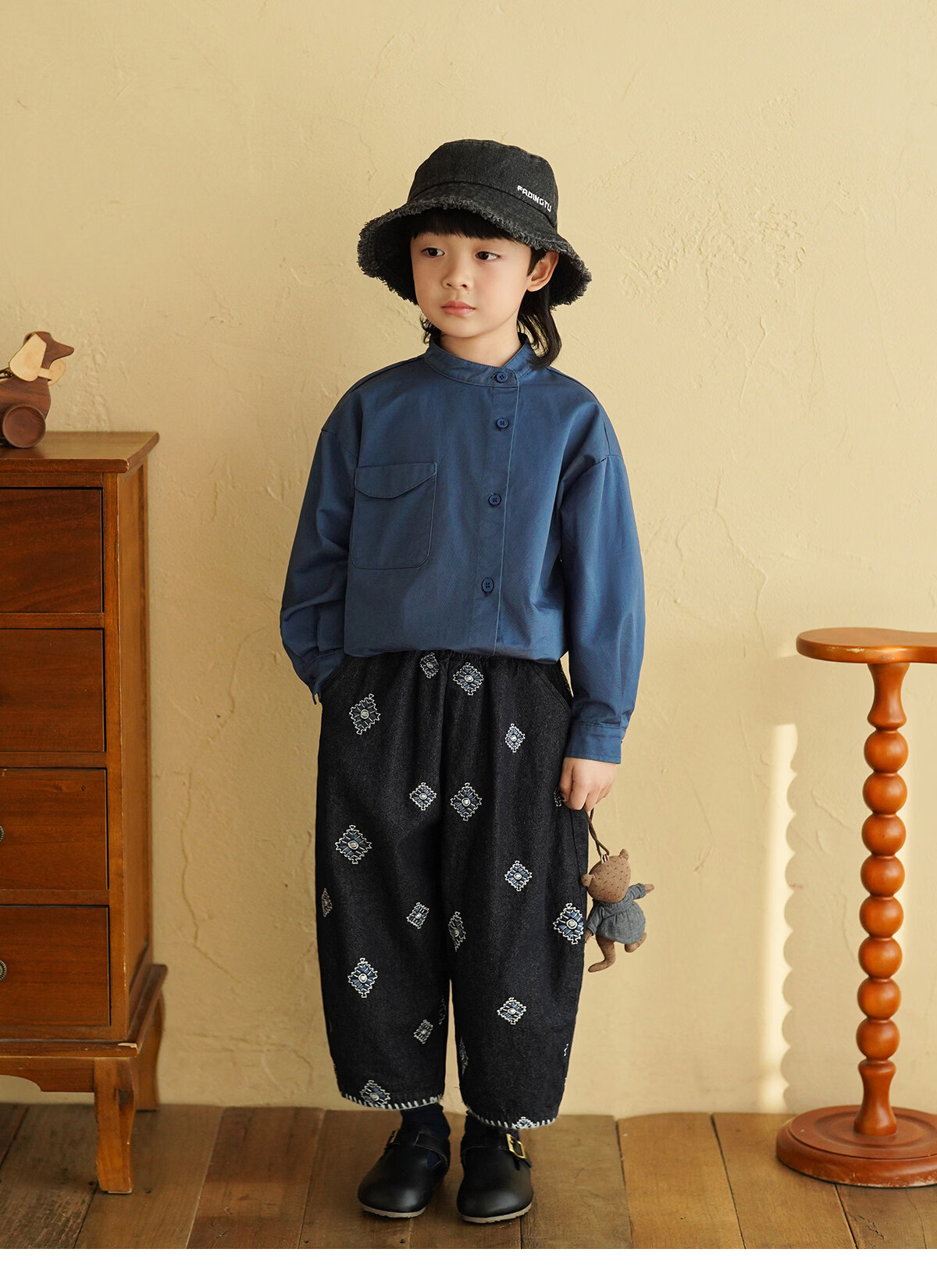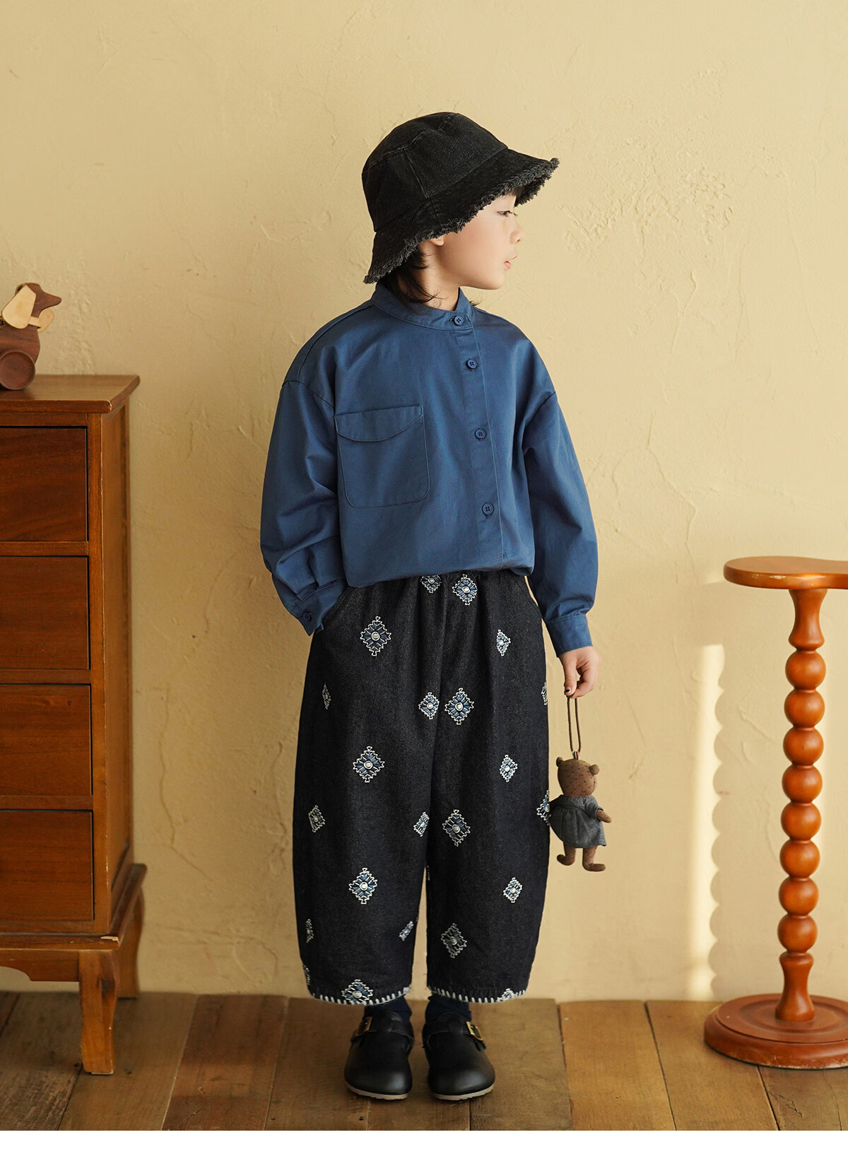 Yantaijia children's clothing children's pure cotton long-sleeved shirt 2026 spring baby irregular blue shirt boy's top blue 80