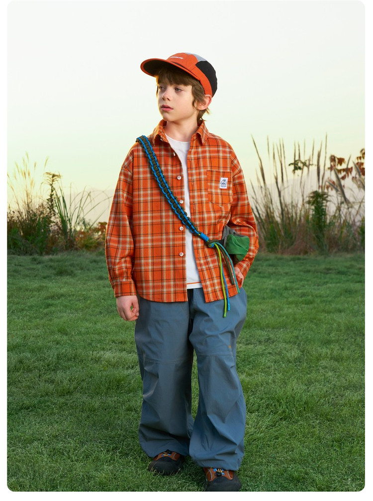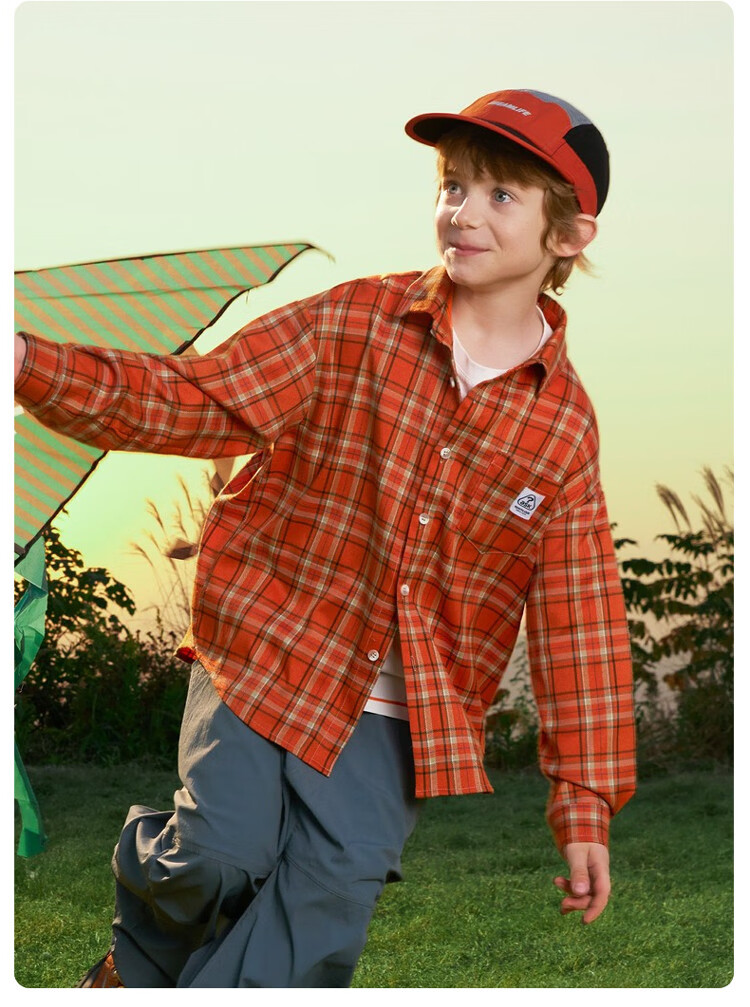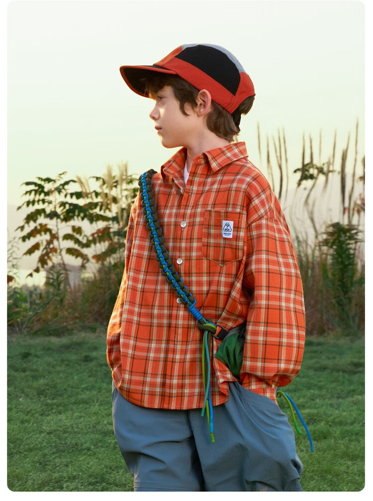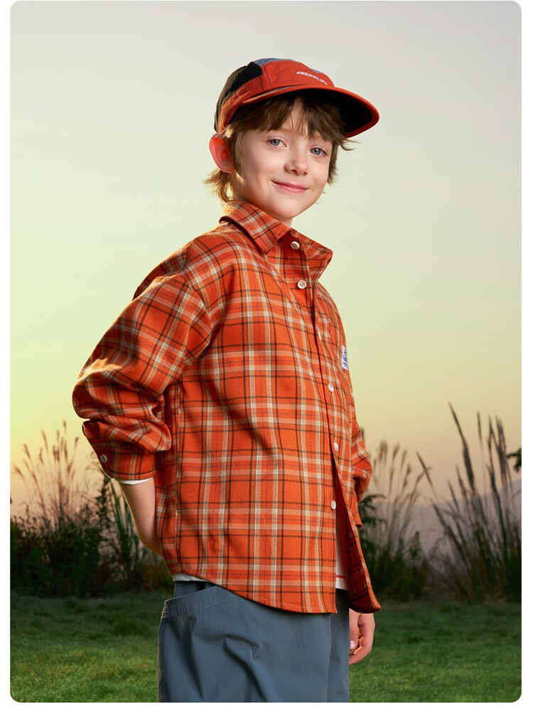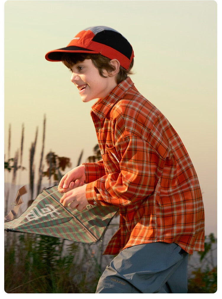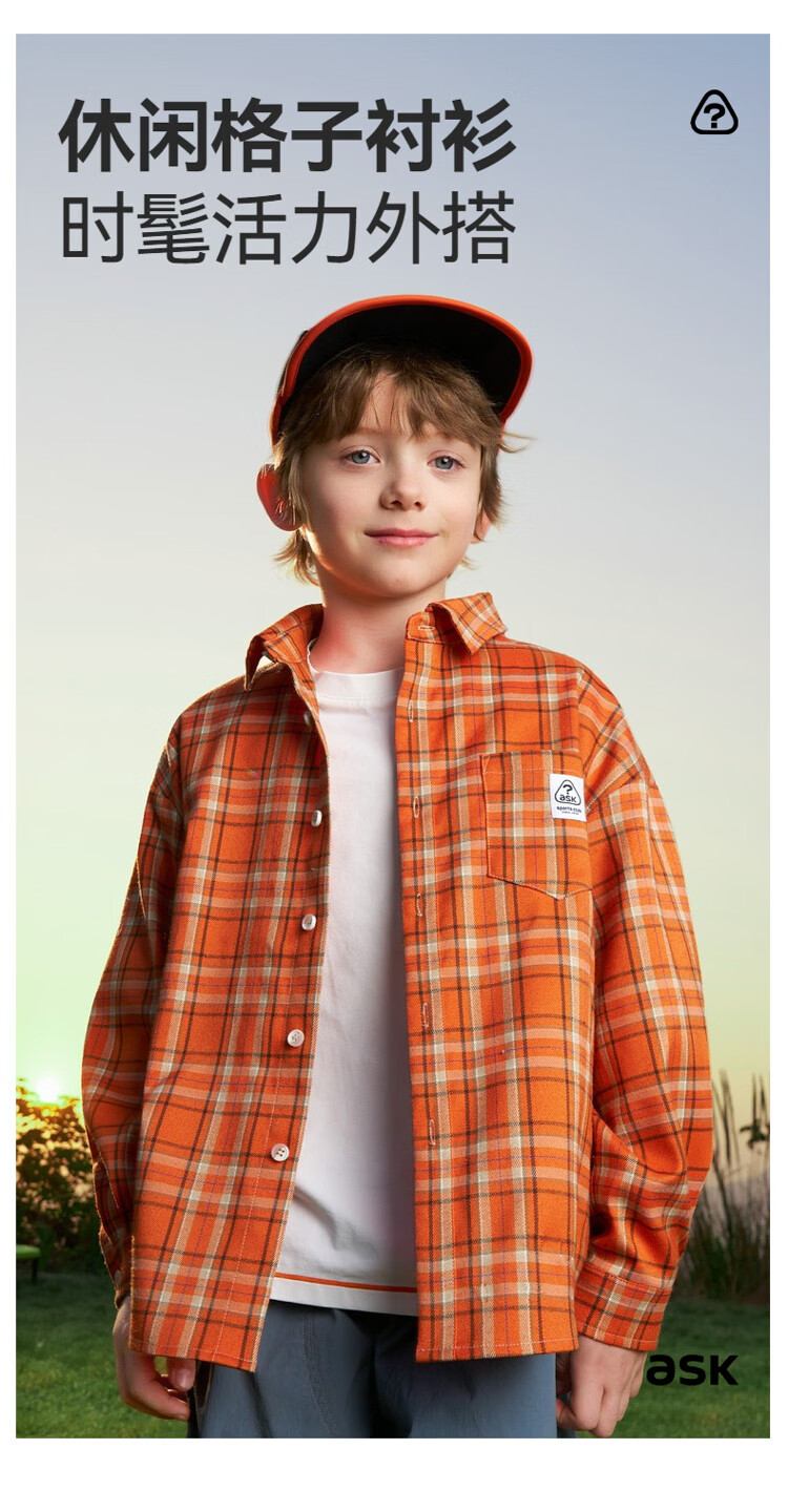 ASK JUNIOR children's shirt 2026 spring medium and large children's plaid contrast lapel long-sleeved shirt for boys and girls same style jacket orange 170