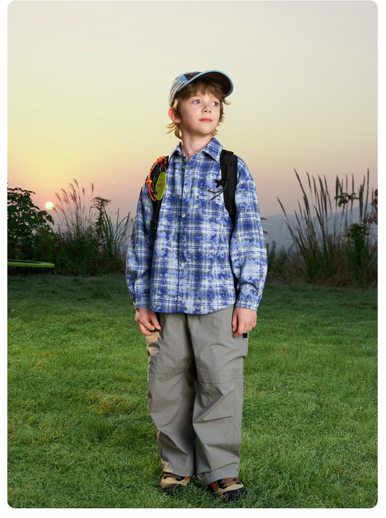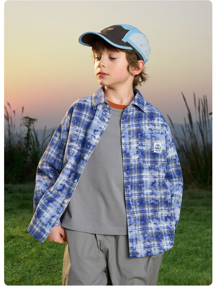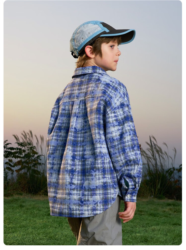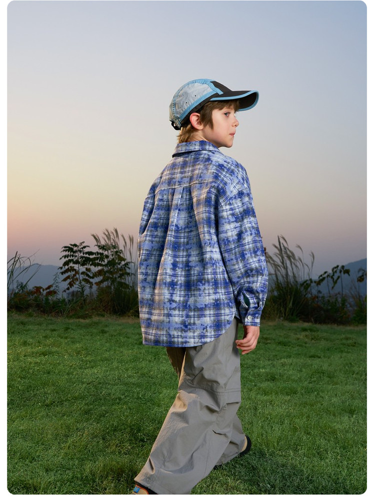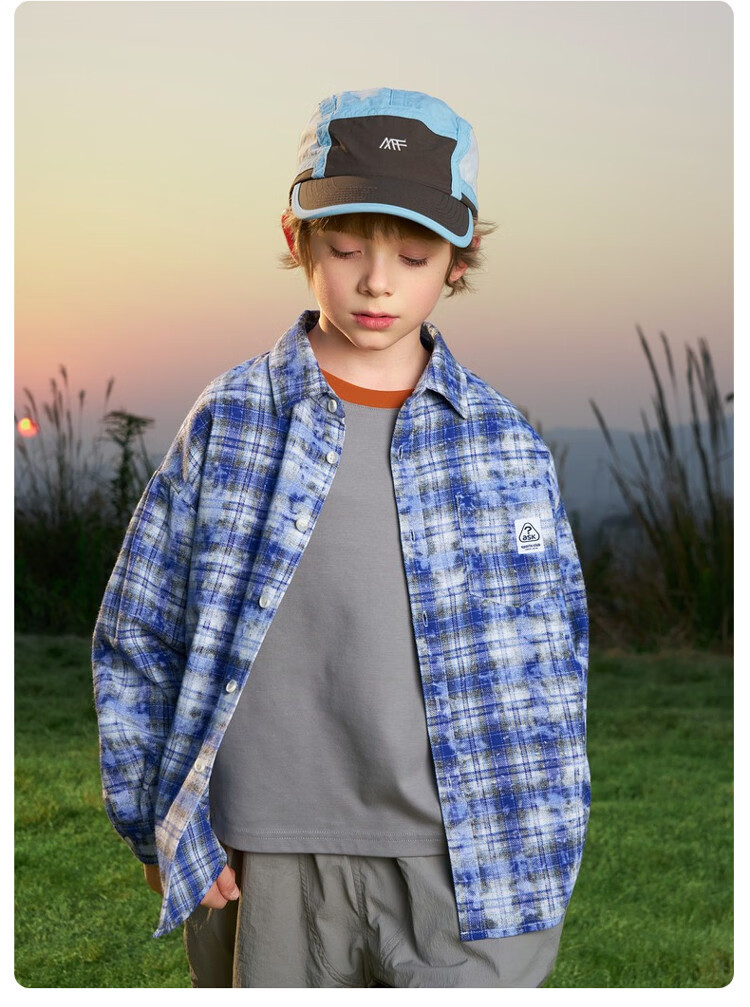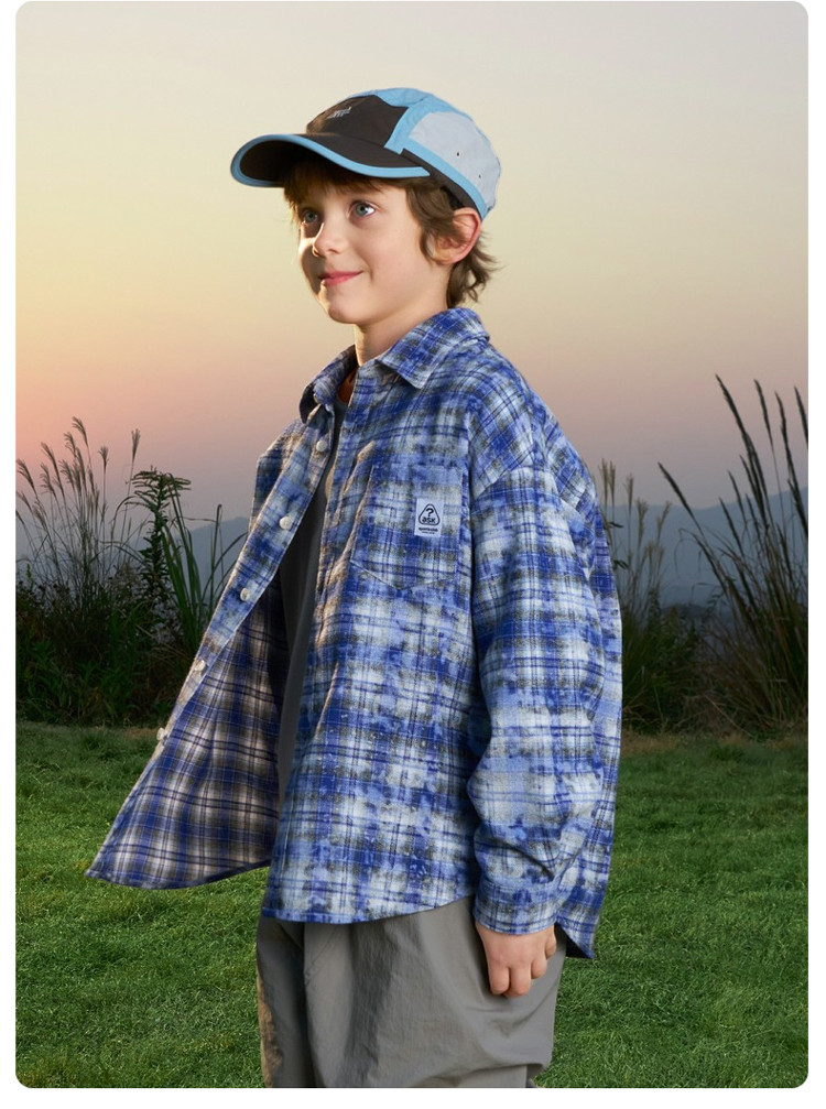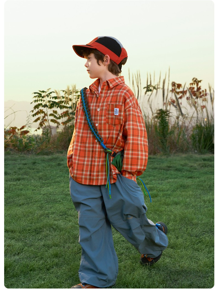 ASK JUNIOR children's shirt 2026 spring medium and large children's plaid contrast lapel long-sleeved shirt for boys and girls same style jacket orange 170