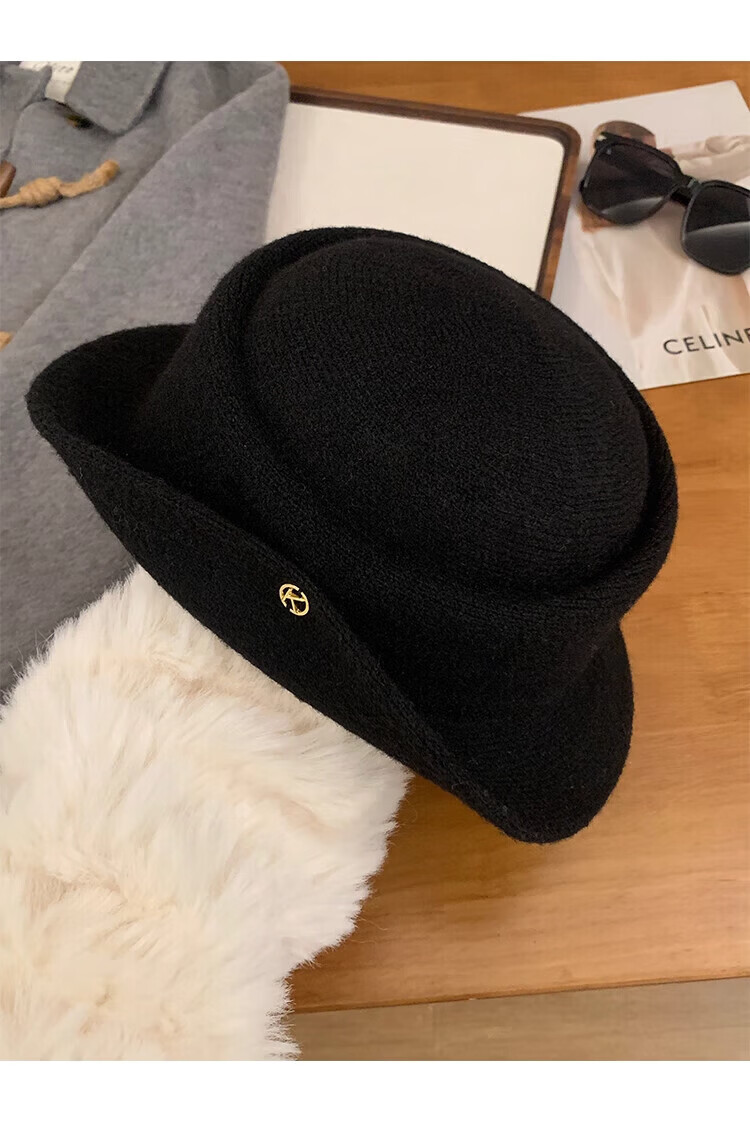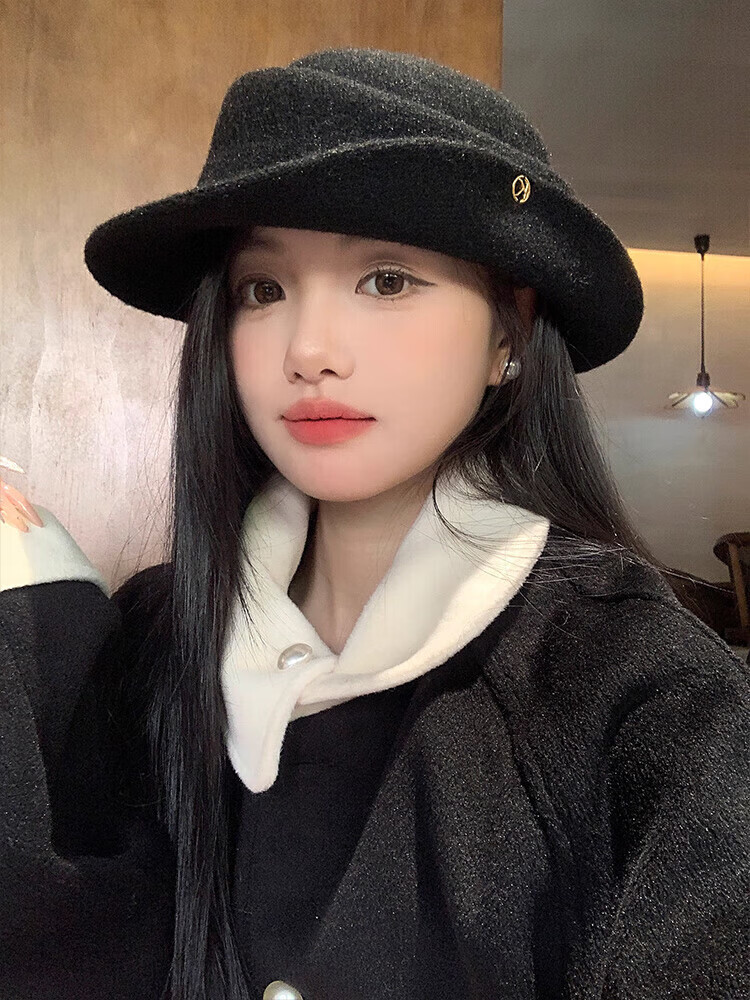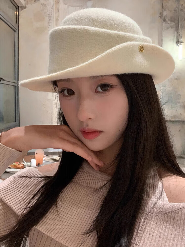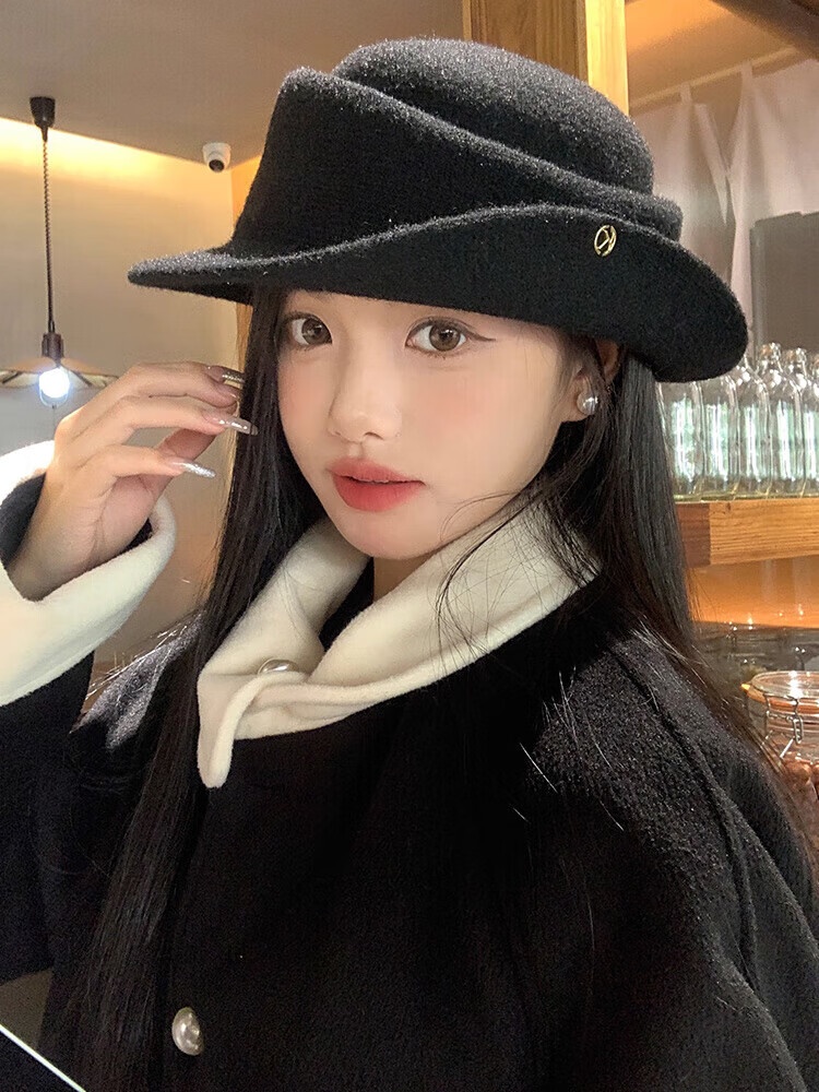 Zhunwu Qianjin top hat women's hat autumn and winter 2026 new woolen fisherman hat felt hat basin hat winter hat Hepburn style elegant French Qianjin style curled black top hat