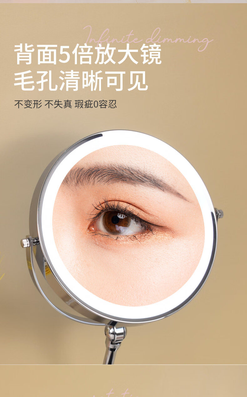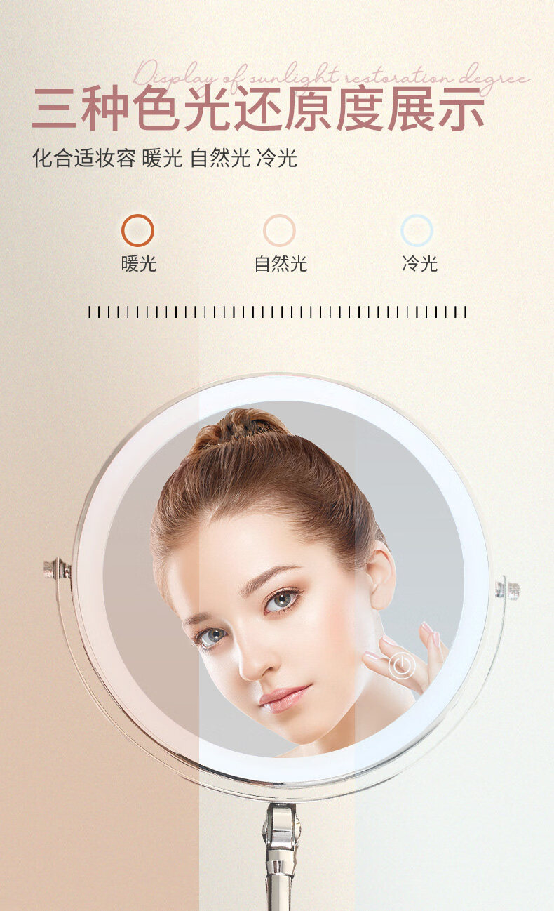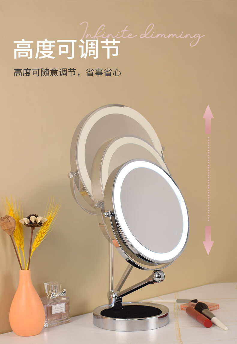 New style liftable makeup mirror desktop folding mirror home smart mirror with light LED makeup mirror fill-in double-sided mirror 8-inch silver charging three-color stepless brightening large battery 3 times
