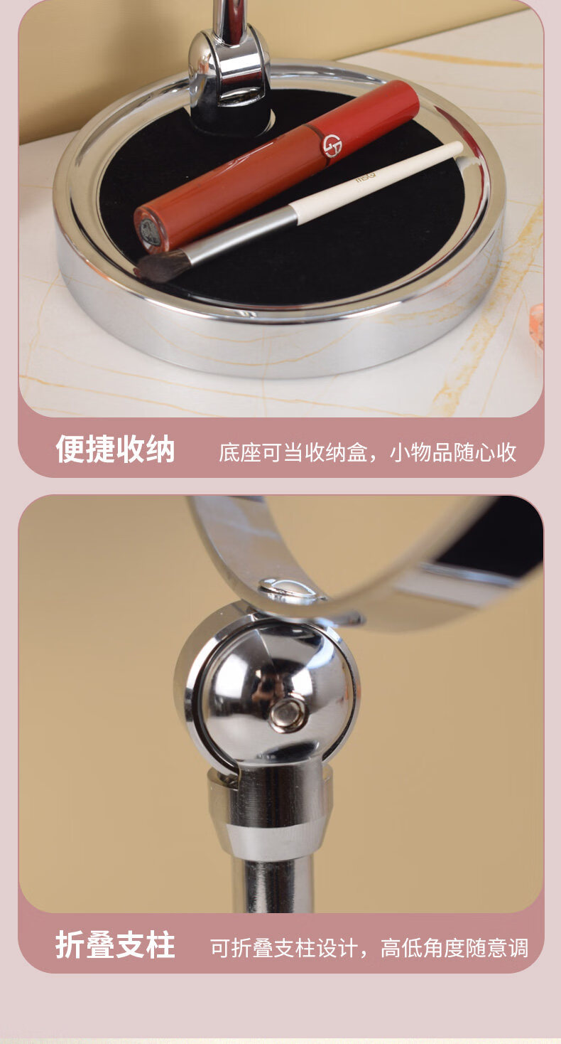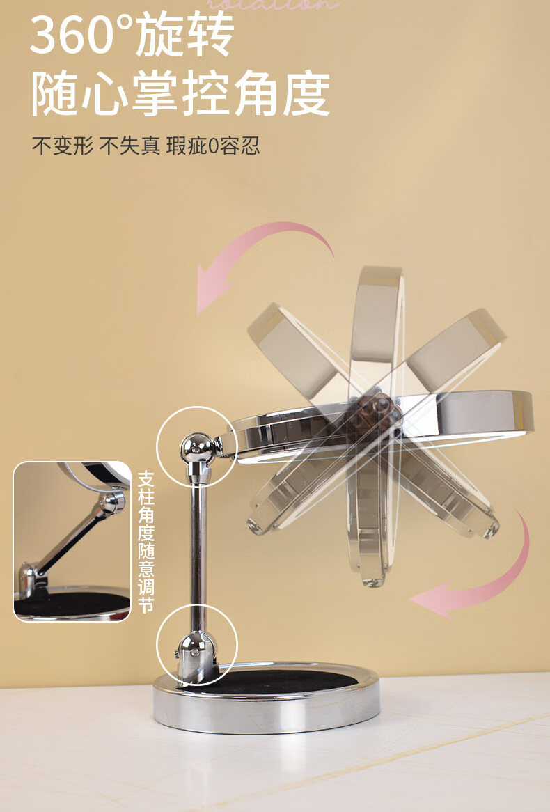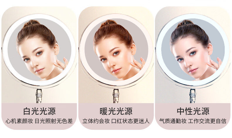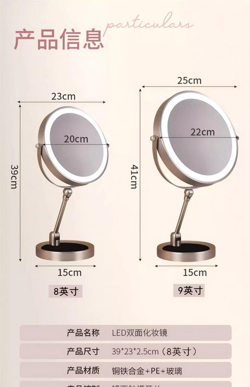 New style liftable makeup mirror desktop folding mirror home smart mirror with light LED makeup mirror fill-in double-sided mirror 8-inch silver charging three-color stepless brightening large battery 3 times