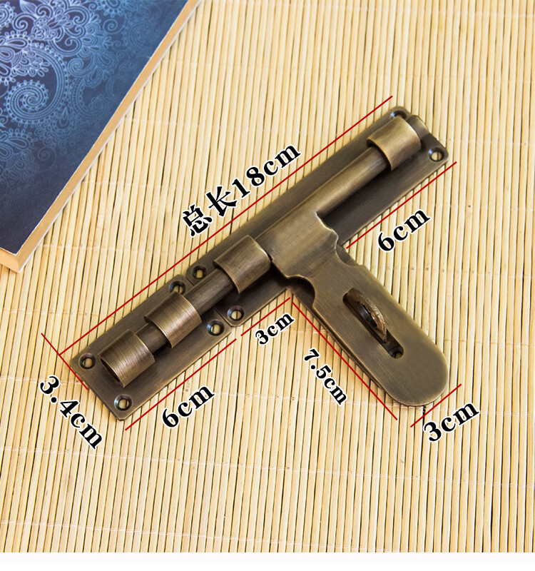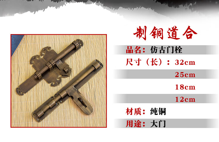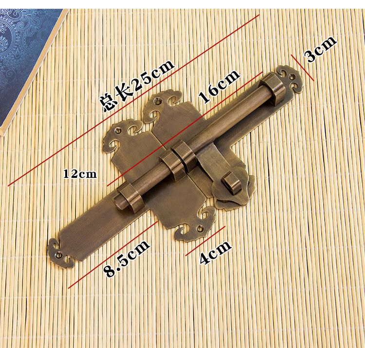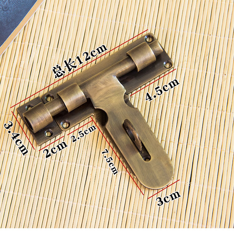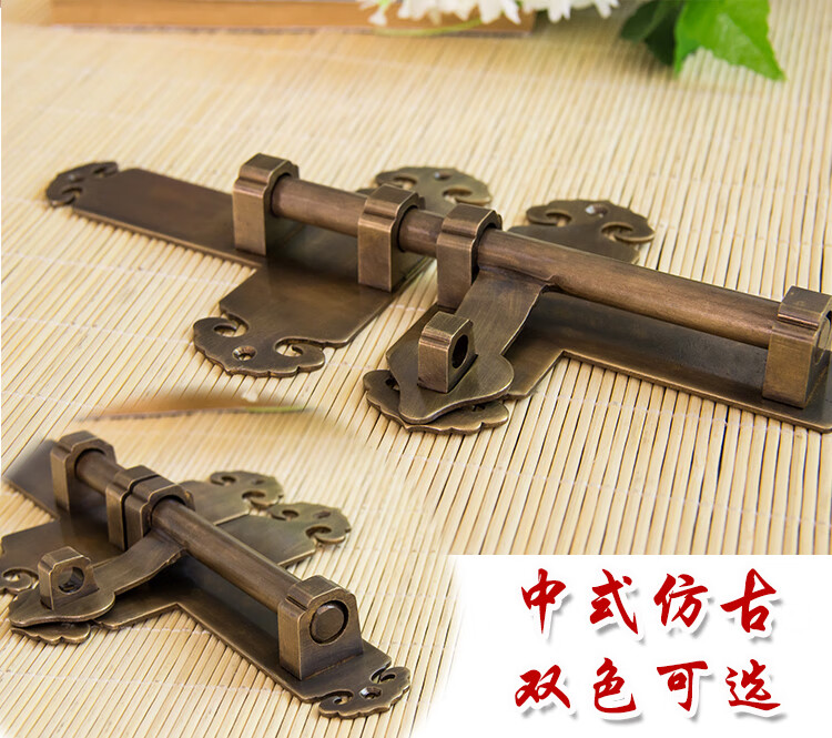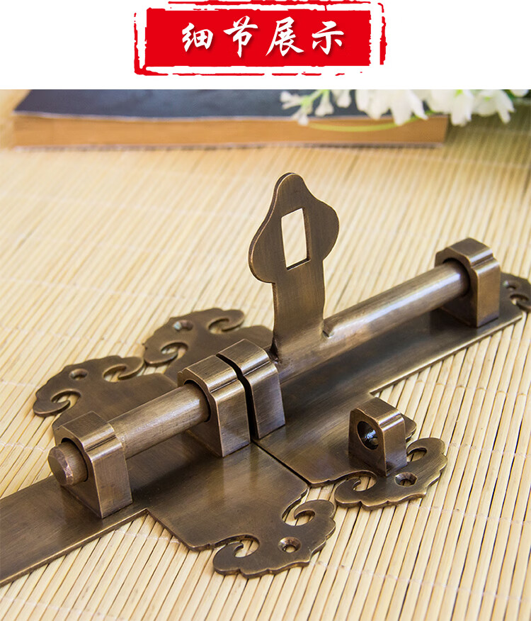 Copper bolt Chinese antique door bolt thickened old-fashioned door wooden door exposed door buckle door latch door lock bronze 25CM lock