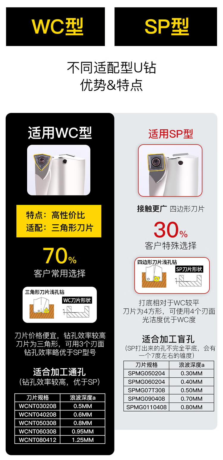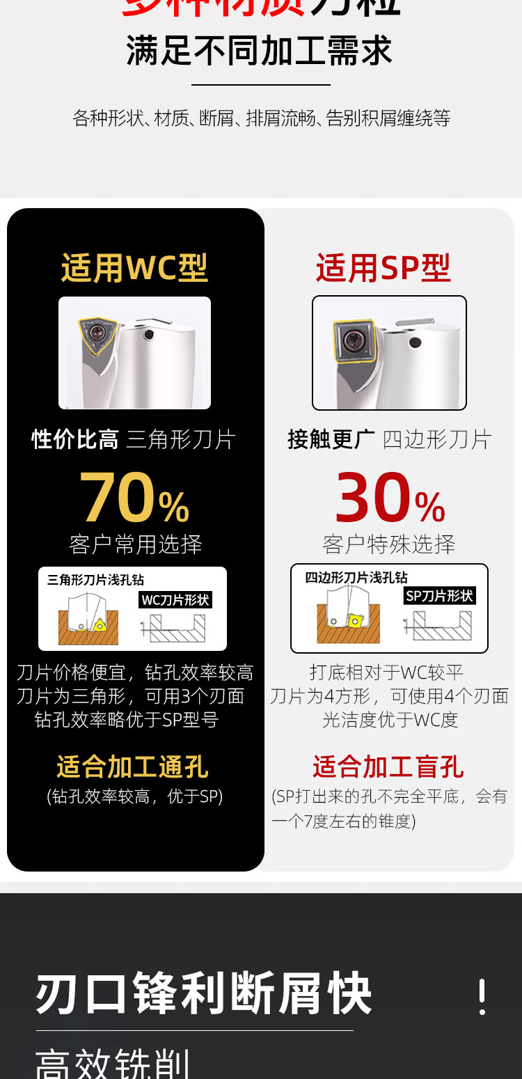 Sailoto U drill knife, stainless steel fast drill bit, water jet drill, violent steel drill, universal CNC knife, peach-shaped knife, square WCMX030208ZPM32