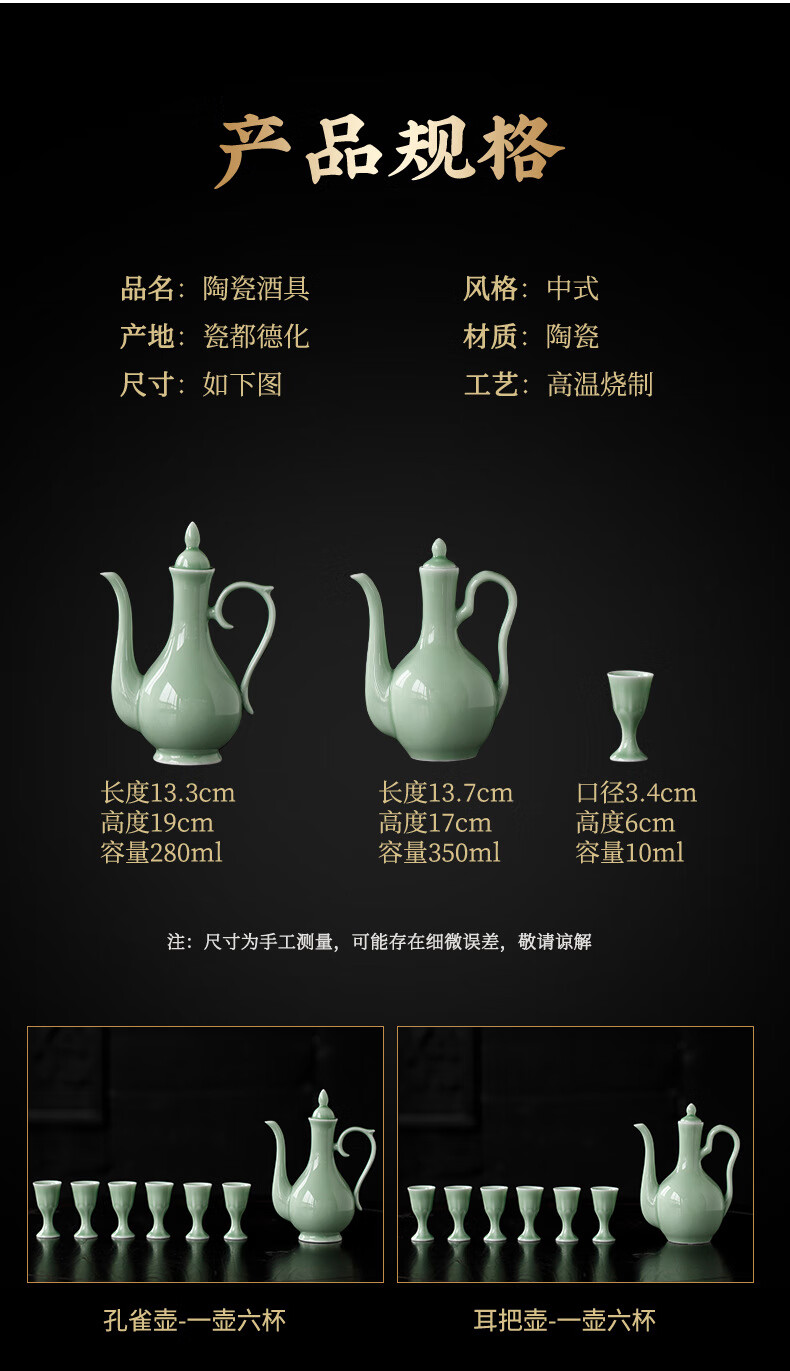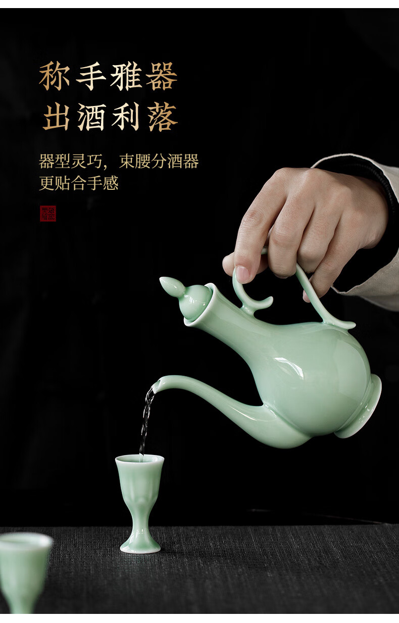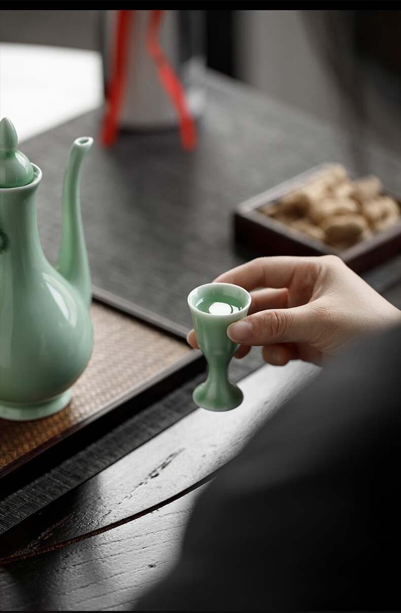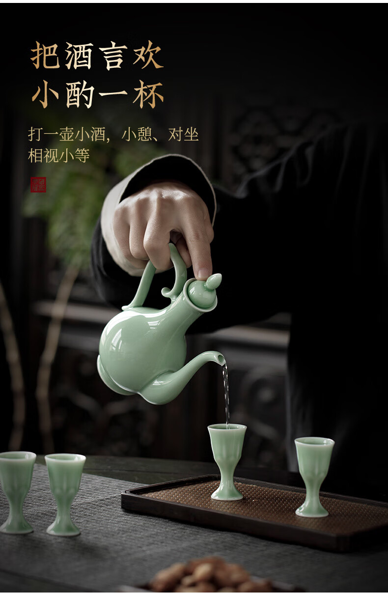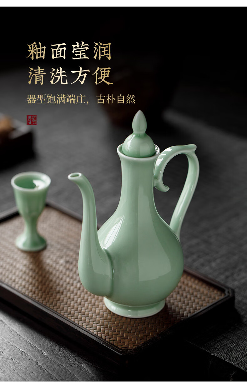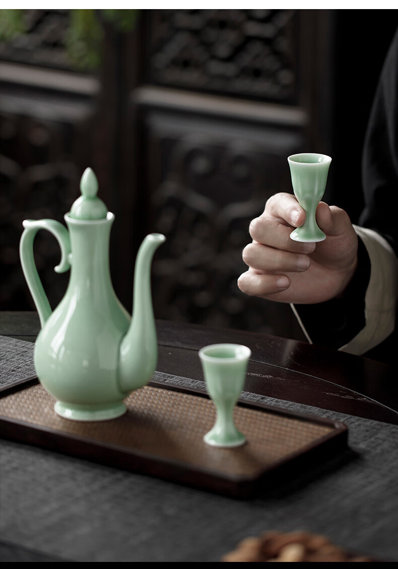 Retro celadon ceramic set half Jin Jin equals 0.5 kg, pot divider, cup, goblet, six cups, fixed logo, retro pot + six goblets