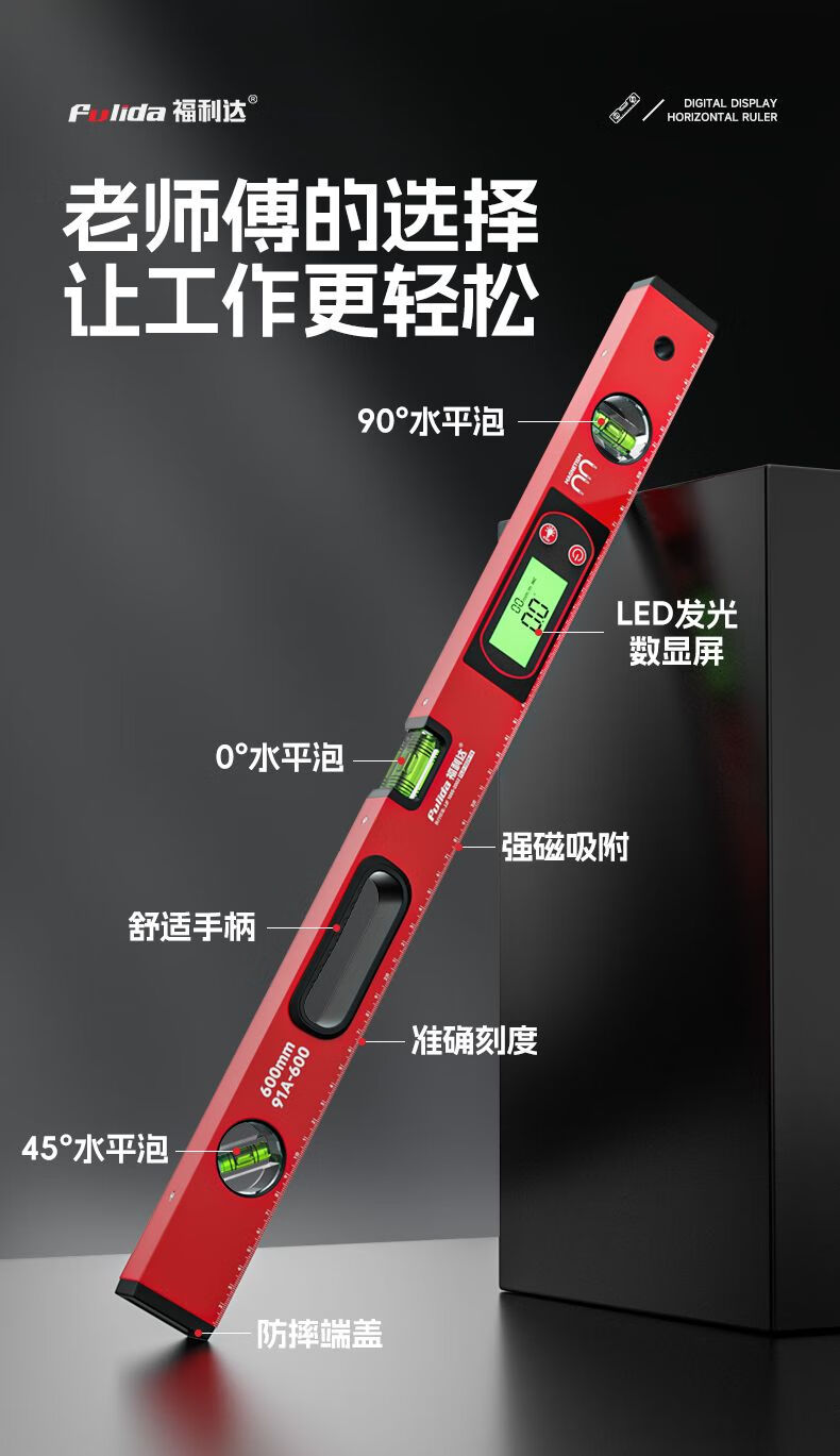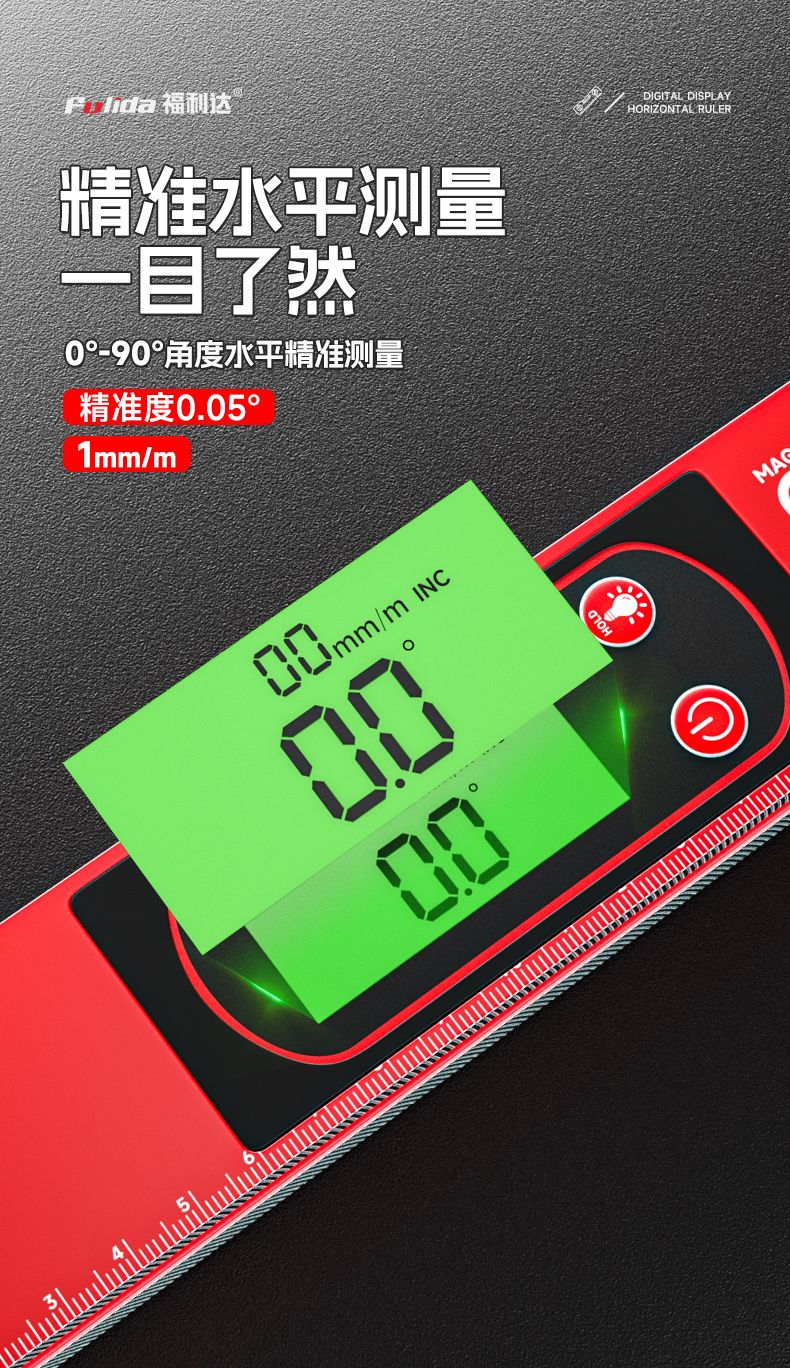 IGIFTFIRE digital display level electronic bubble high-precision flat water level meter drop-resistant small ruler aluminum alloy strong magnetic rich model strong magnetic precision digital display level 50cm+