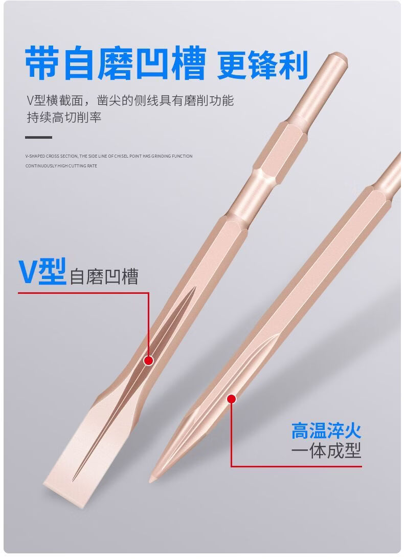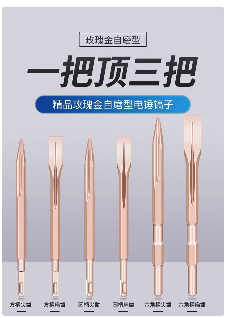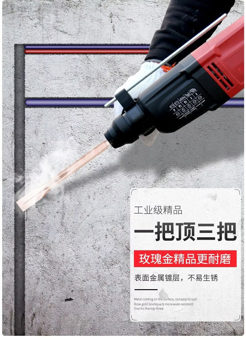 Electric hammer drill chisel impact drill imported from Germany and Japan concrete square handle round handle pickaxe cement wall slotting square handle rose gold 14x250 pointed chisel