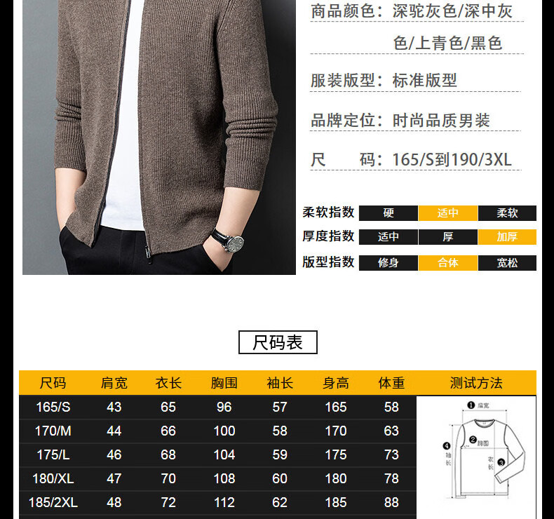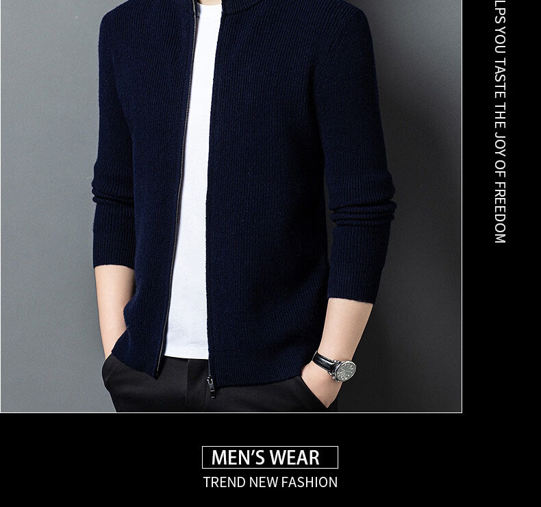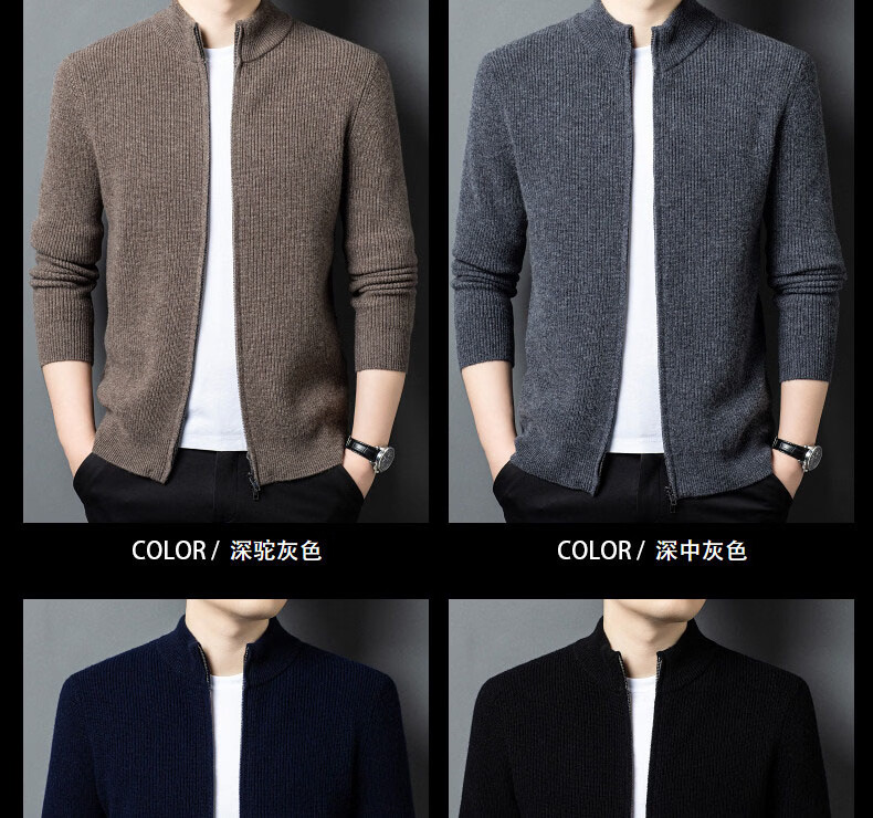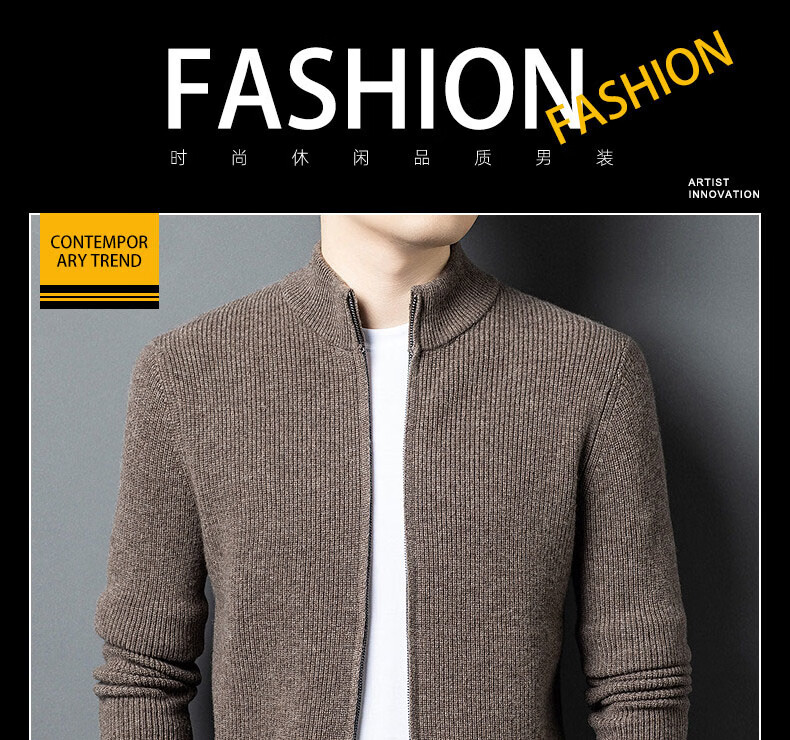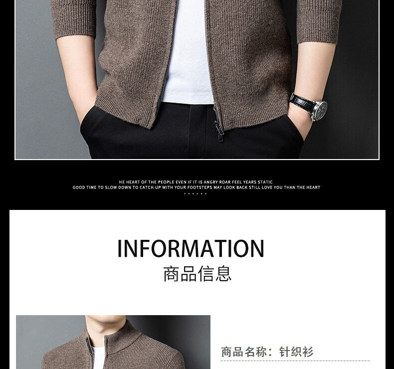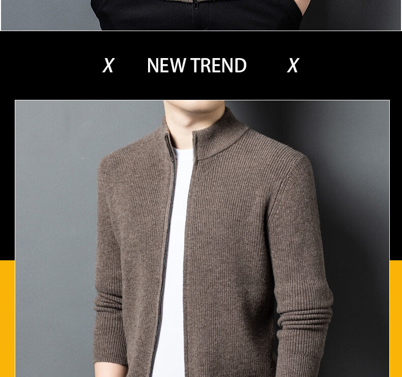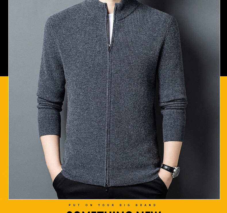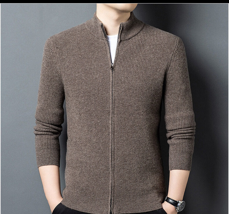 GUSKI light luxury brand high-end men's pure wool sweater men's casual knitted cardigan business warm sweater solid color bottoming shirt dark camel gray exquisite gift box M (105)
