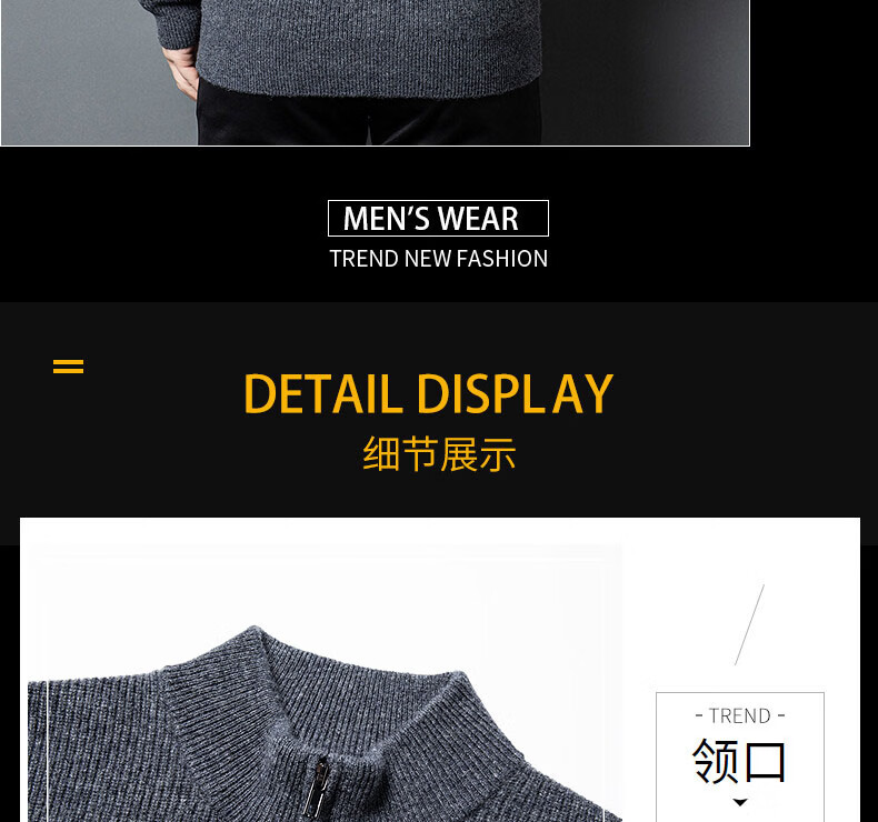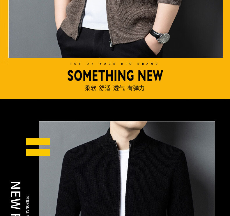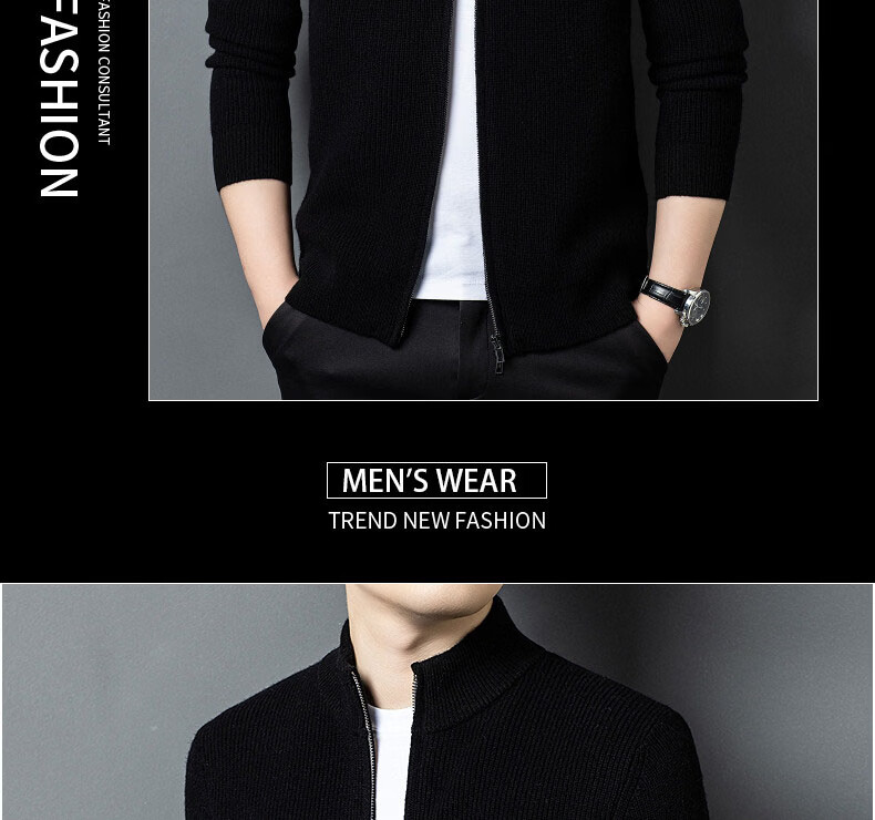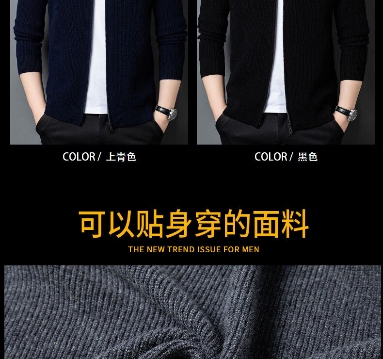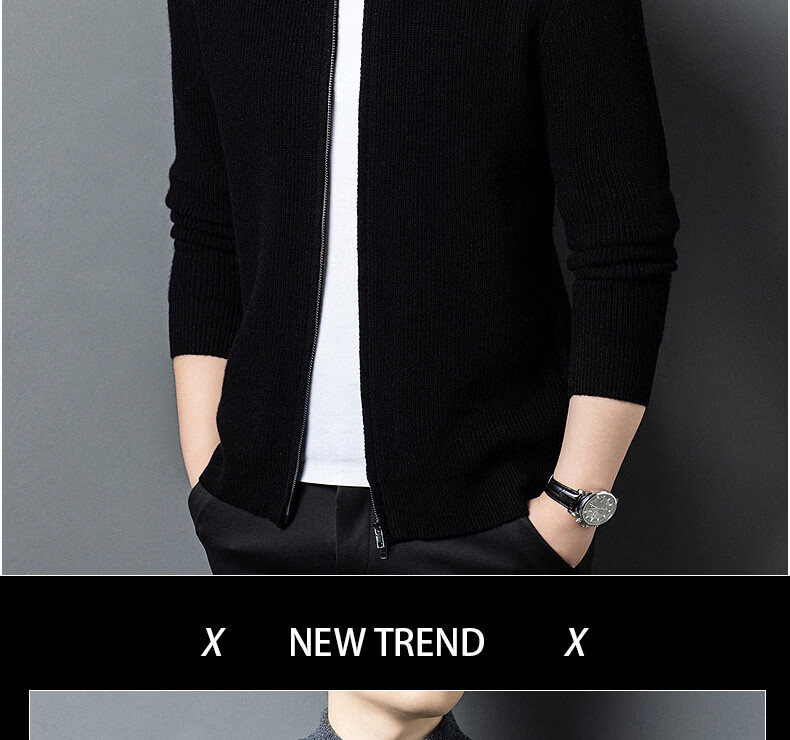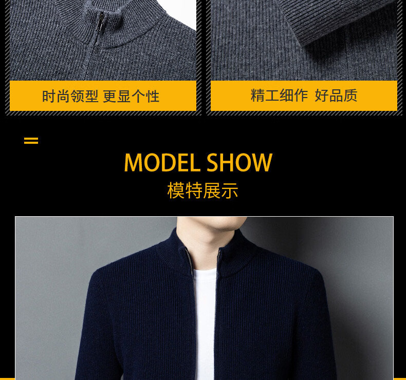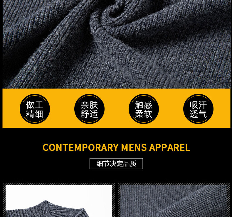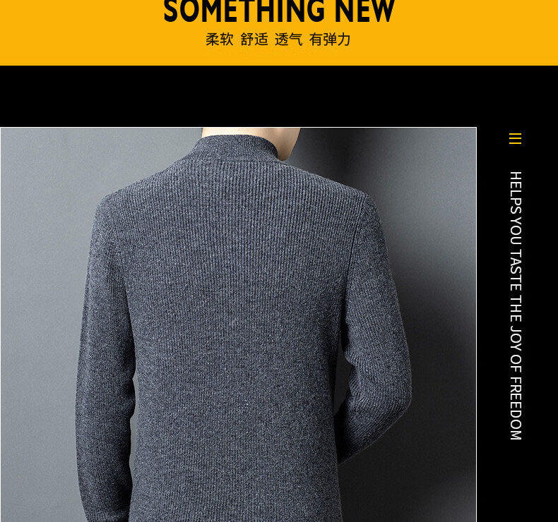 GUSKI light luxury brand high-end men's pure wool sweater men's casual knitted cardigan business warm sweater solid color bottoming shirt dark camel gray exquisite gift box M (105)