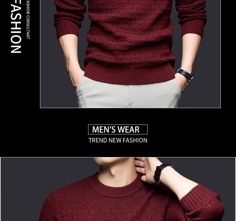 GUSKI light luxury brand high-end men's wool sweater men's casual sweater business warm and comfortable sweater bottoming shirt burgundy exquisite gift box M (105)