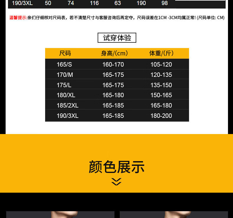 China (cm) 165 / 88-90 170 / 96-98 175 / 108-110 180 / 118-122 185 / 126-130