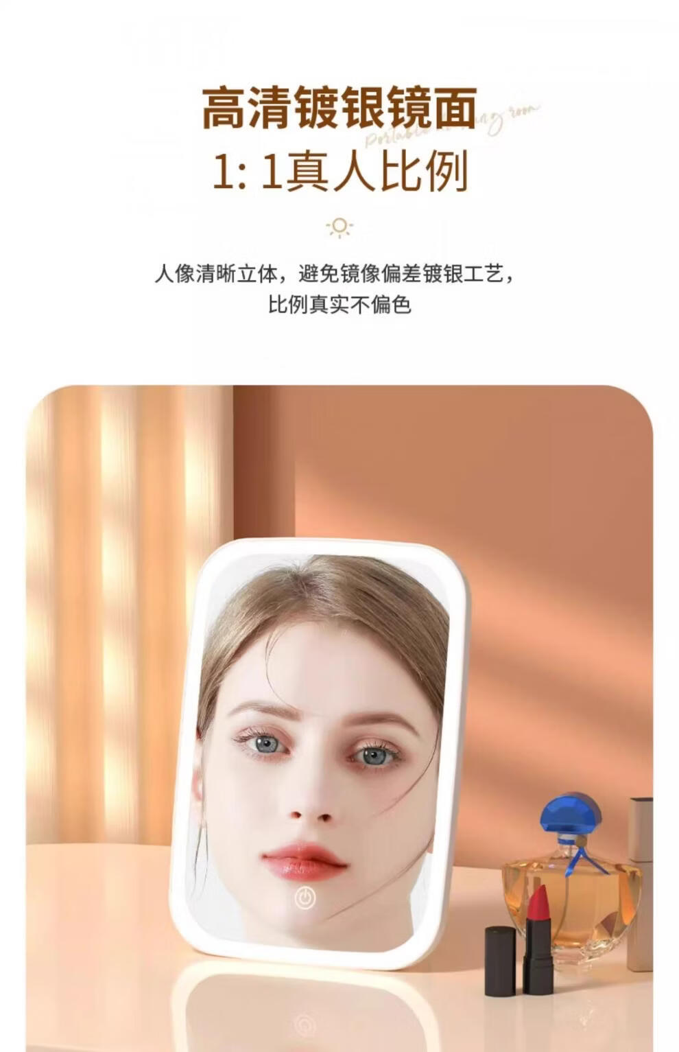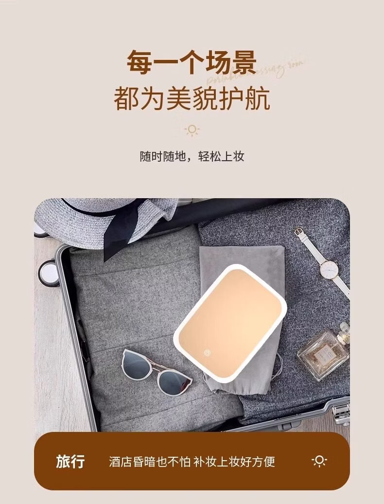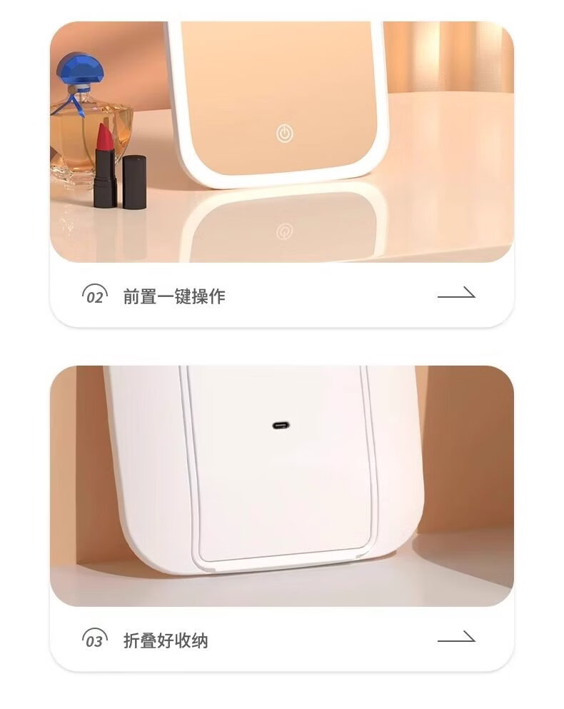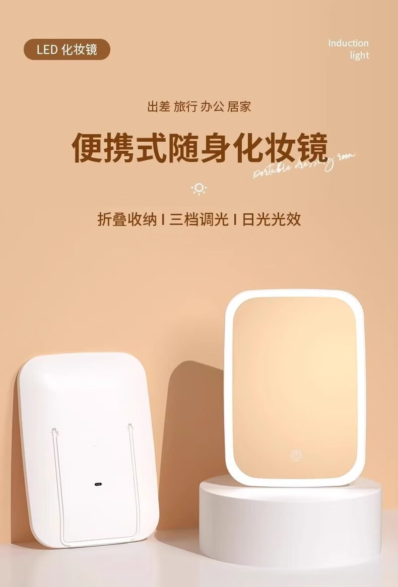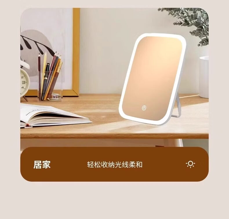 LE PONNINELED makeup mirror new style with light mirror student dormitory ins supplementary light desktop makeup mirror rechargeable mirror three-color light square mirror white-1 pack