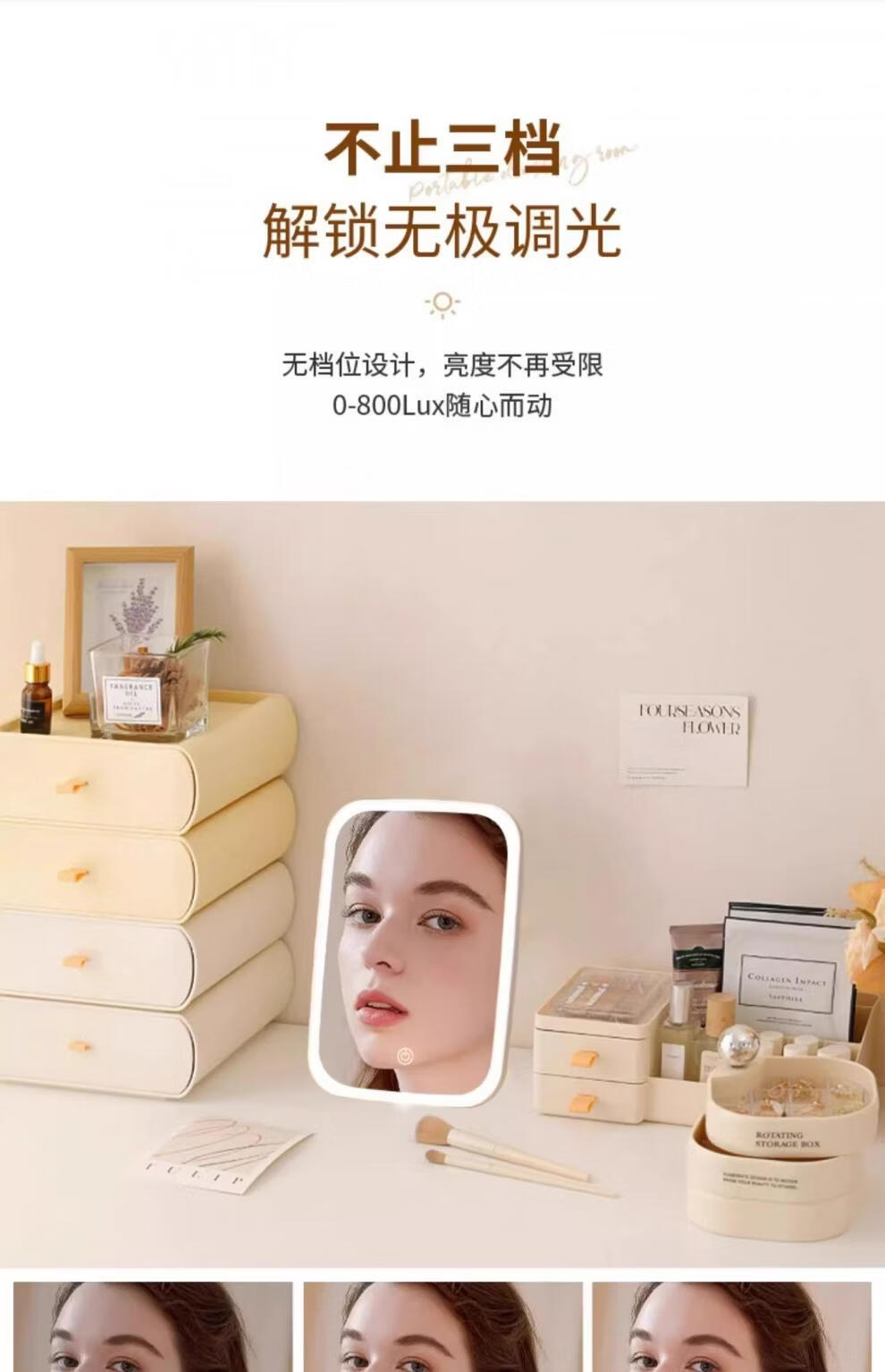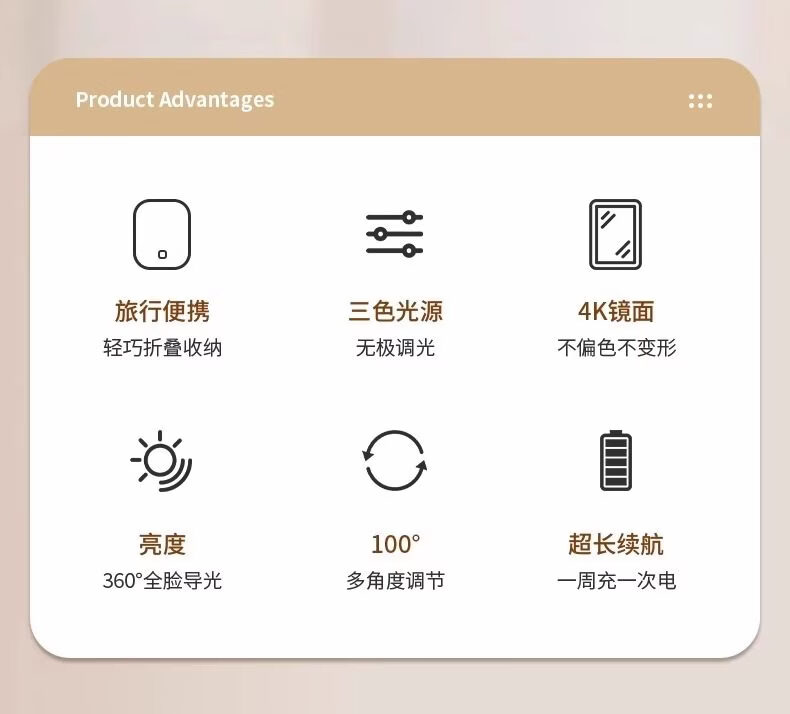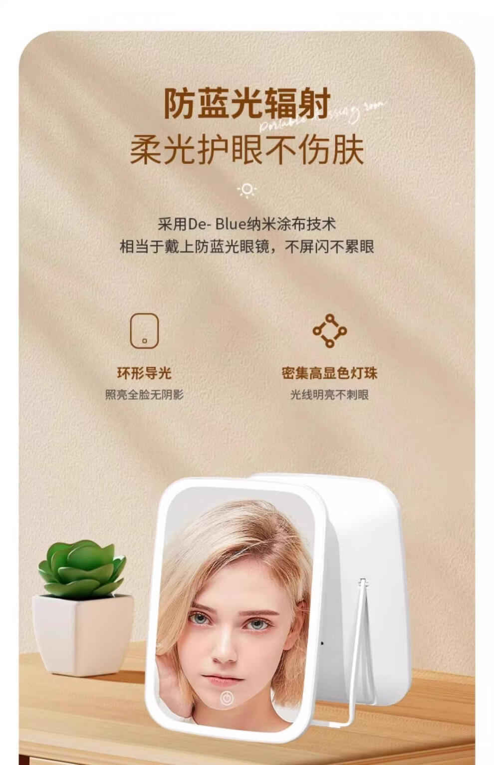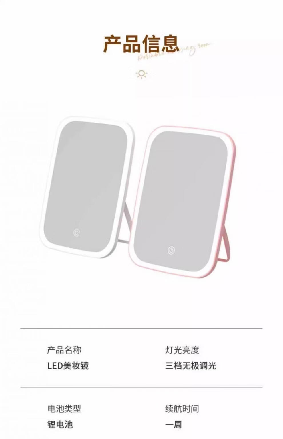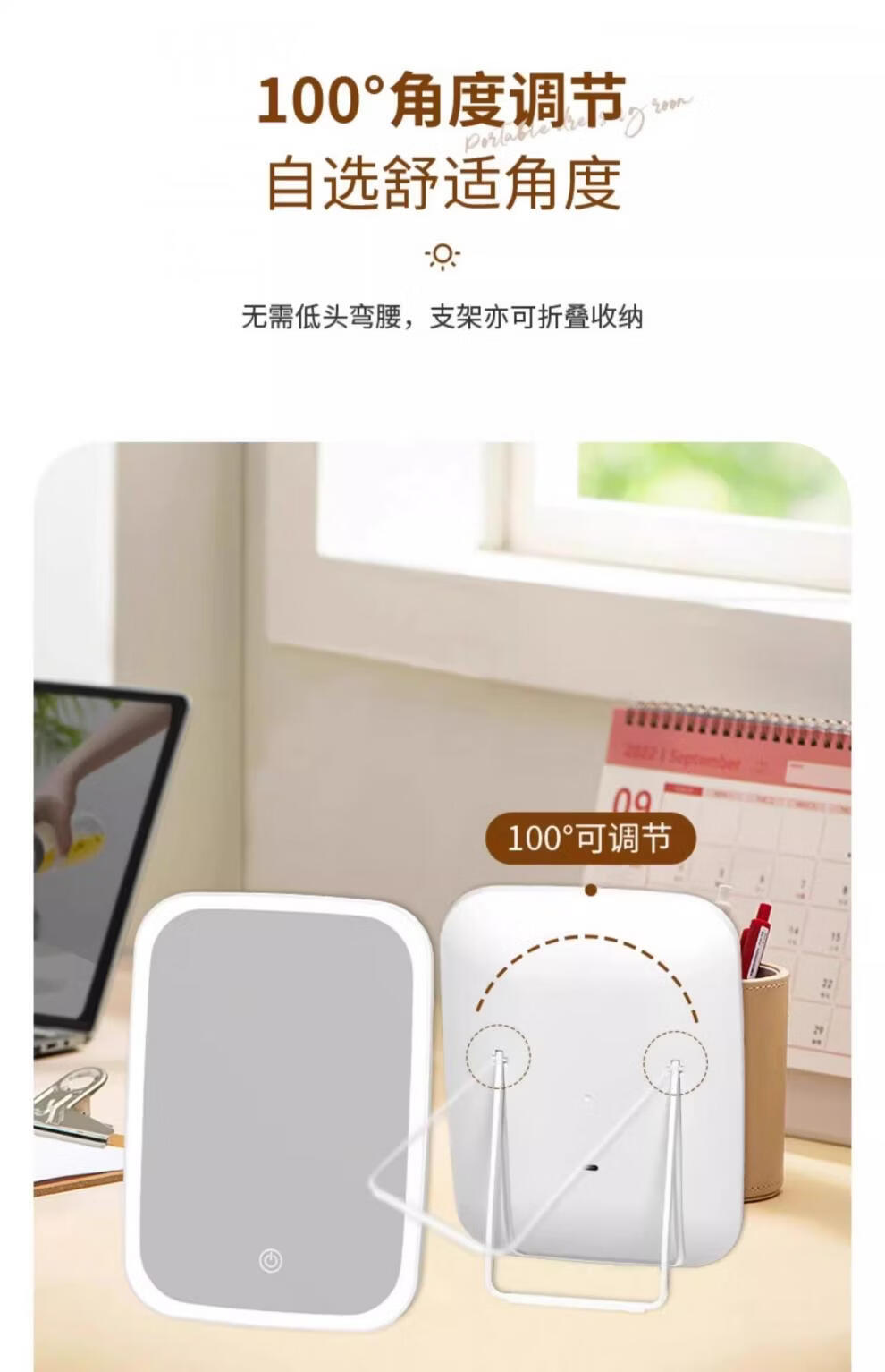 LE PONNINELED makeup mirror new style with light mirror student dormitory ins supplementary light desktop makeup mirror rechargeable mirror three-color light square mirror white-1 pack