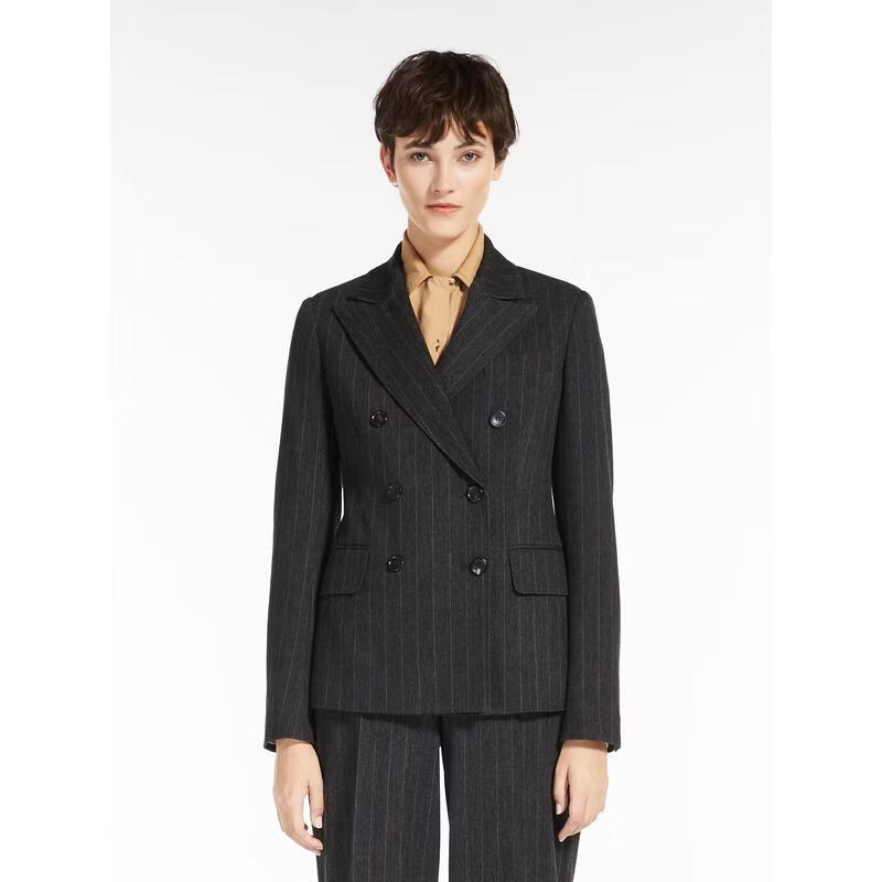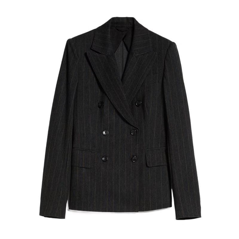 MAX MARA女士西装保暖合身条纹通勤职场外套简约 灰色 均码 |IT-40