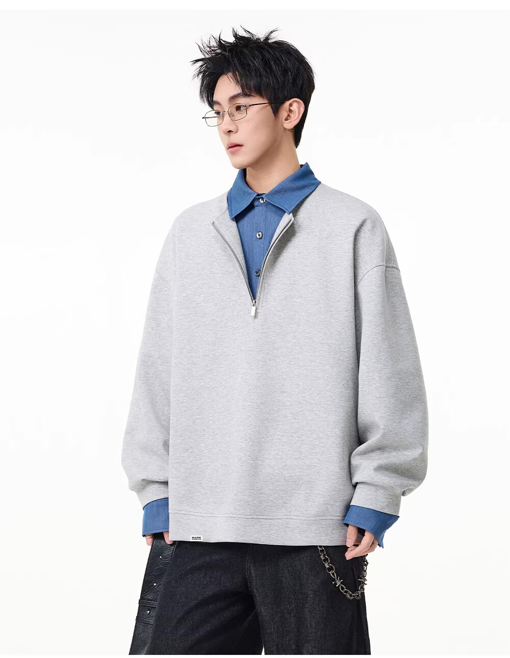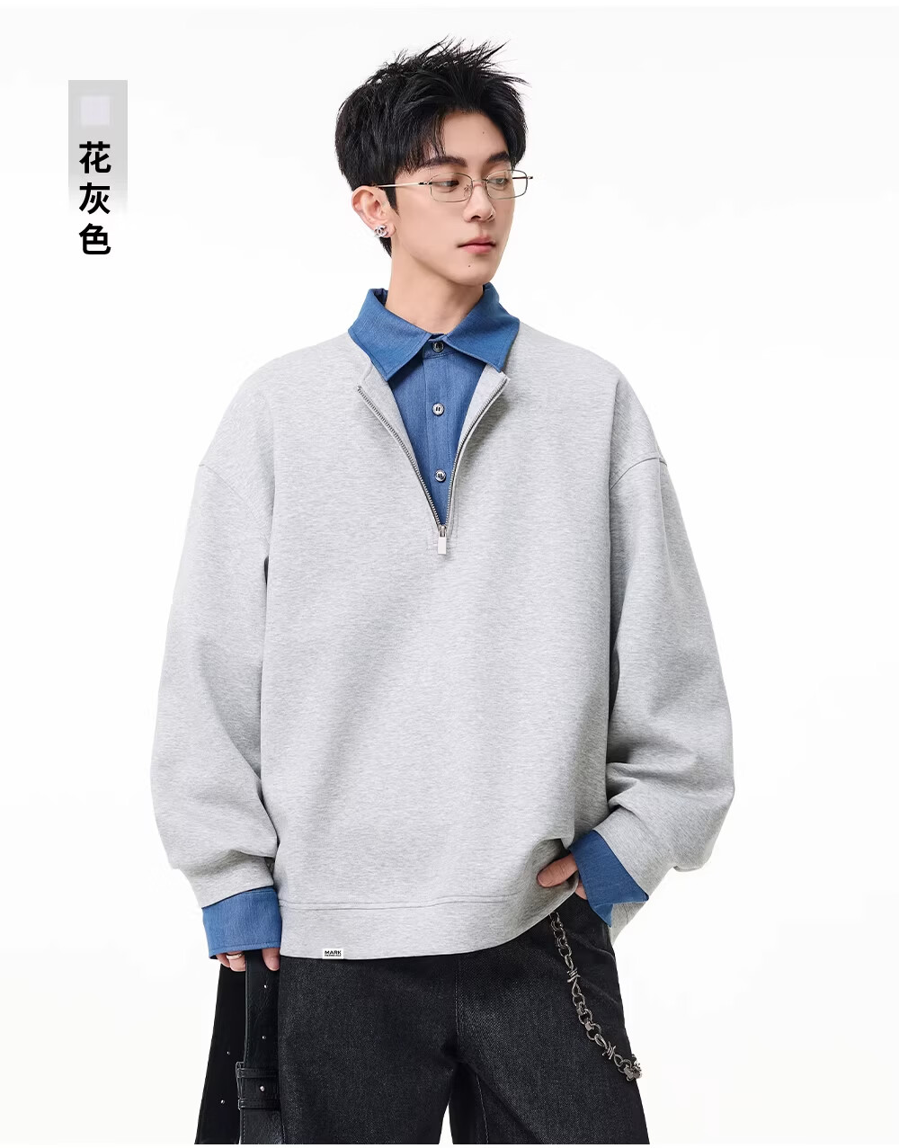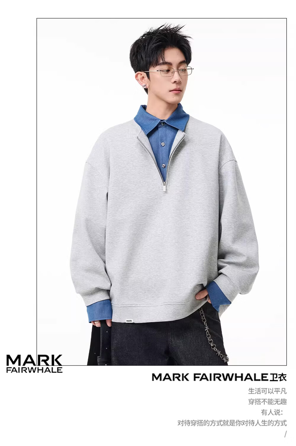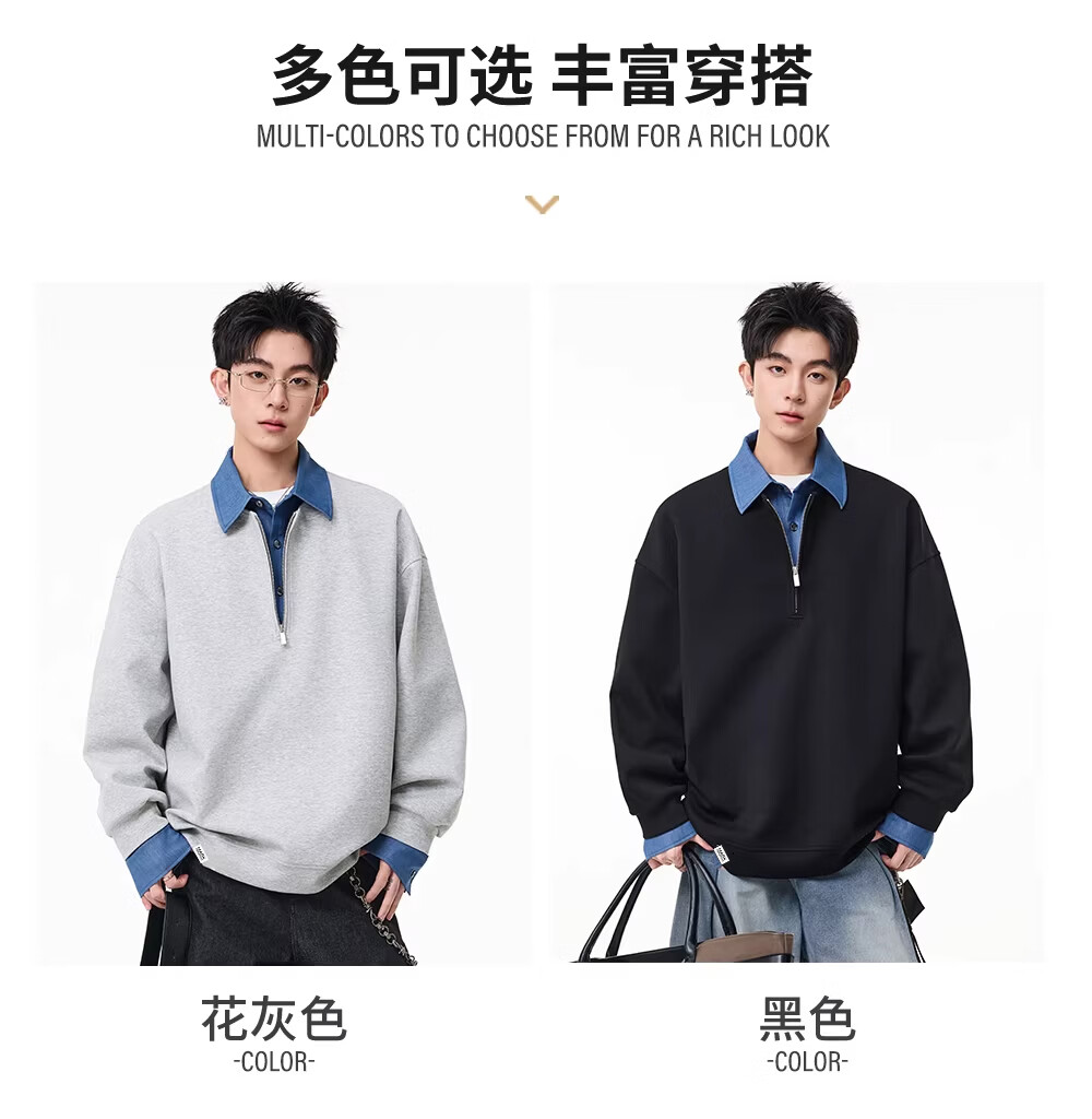MARK FAIRWHALE American retro casual sweatshirt for men 2026 spring new style loose and comfortable contrast color trendy brand handsome and versatile top floral gray + black discounted two-pack 2XL recommended 150-180Jin Jin equals 0.5 kg
