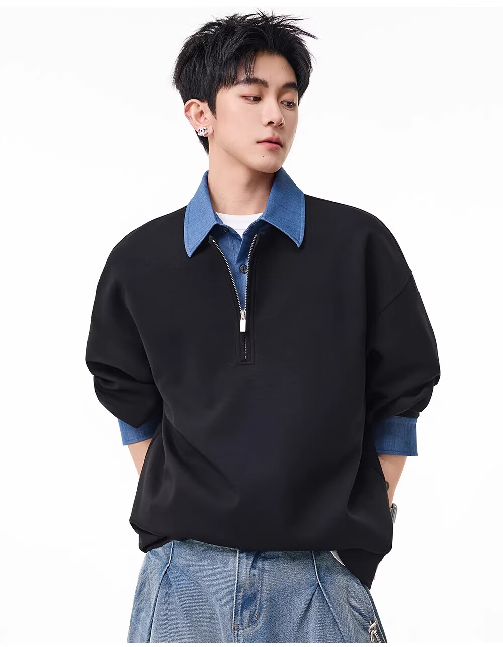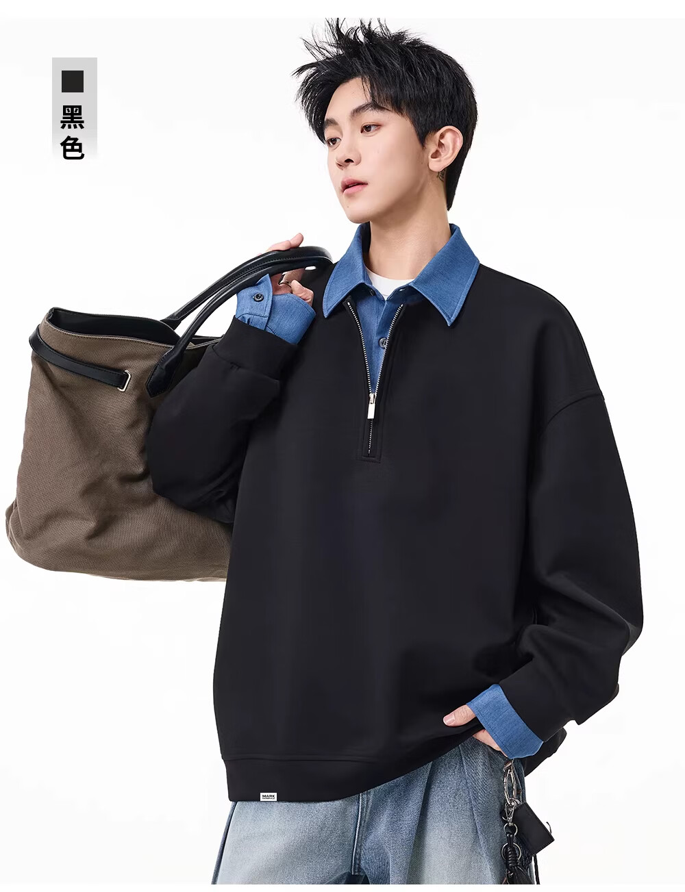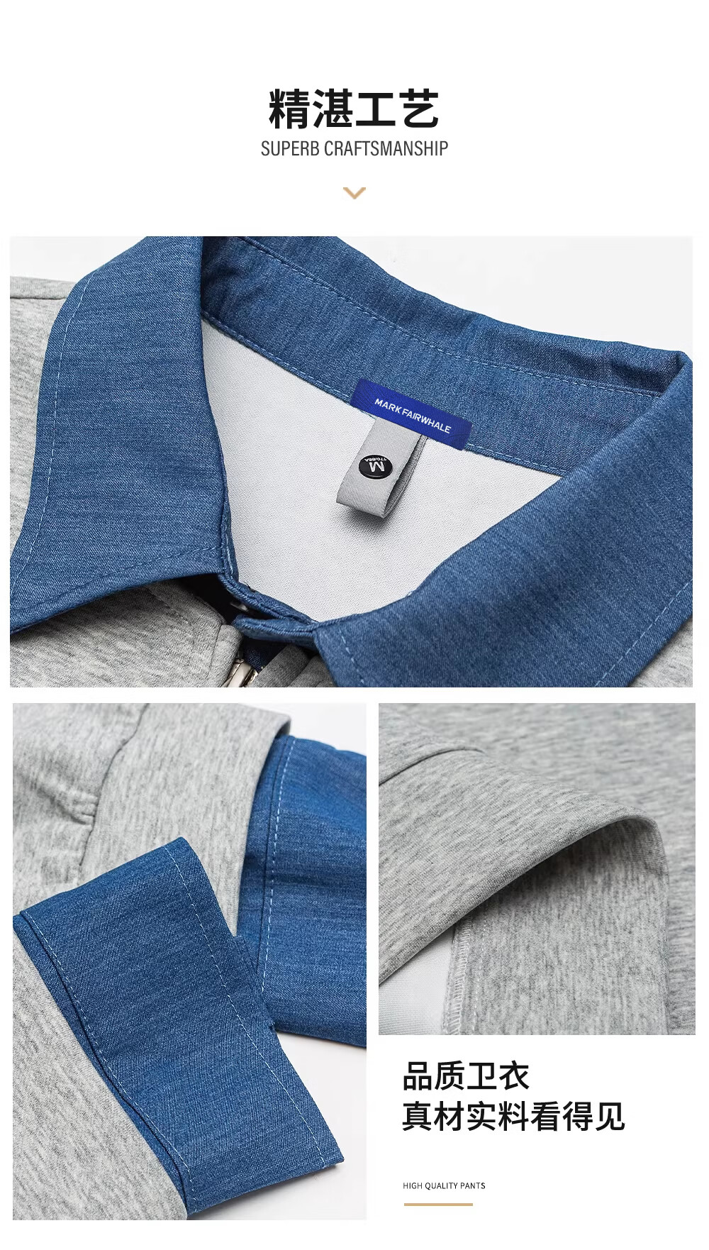 MARK FAIRWHALE American retro casual sweatshirt for men 2026 spring new style loose and comfortable contrast color trendy brand handsome and versatile top floral gray + black discounted two-pack 2XL recommended 150-180Jin Jin equals 0.5 kg