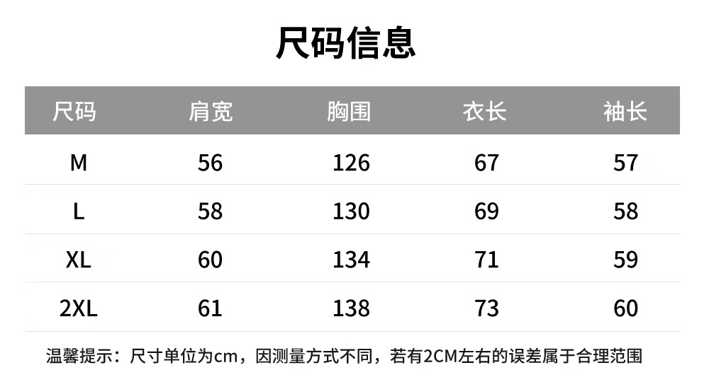 Size (cm) 42 44 46 48 50