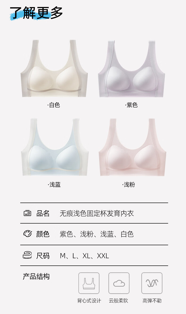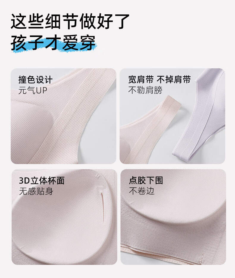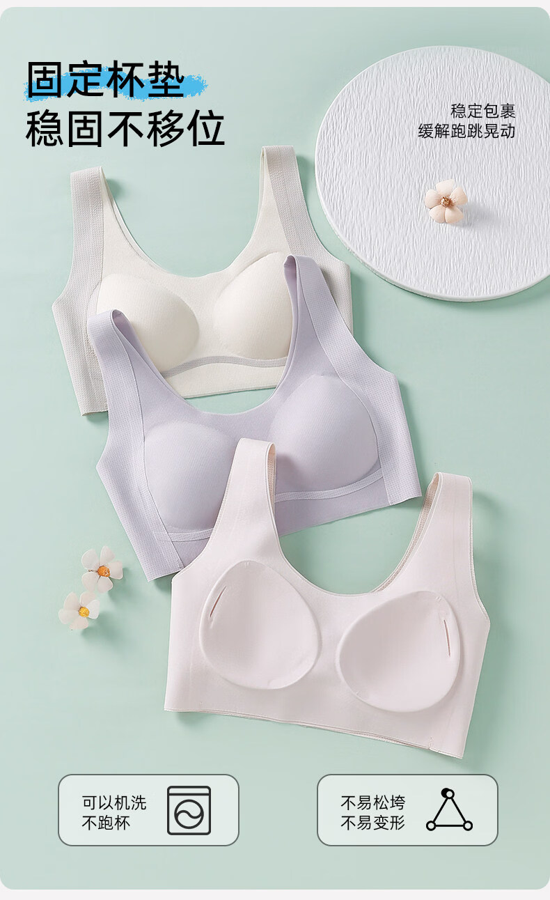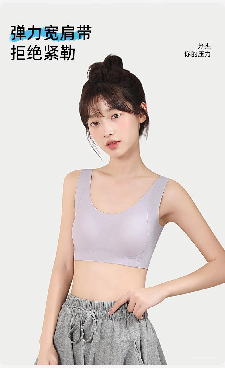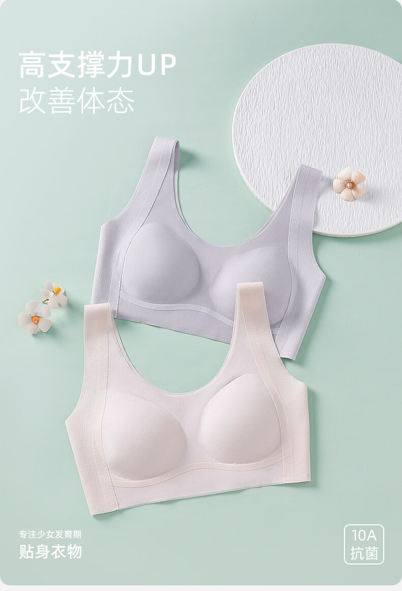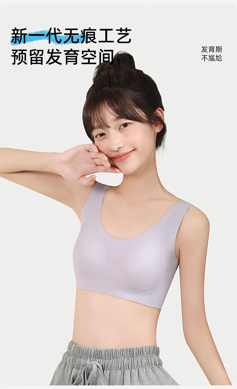 Deanfun sports bra for female students in the second and third stages of childbearing, special seamless shockproof bra for middle and high school students, white + purple M