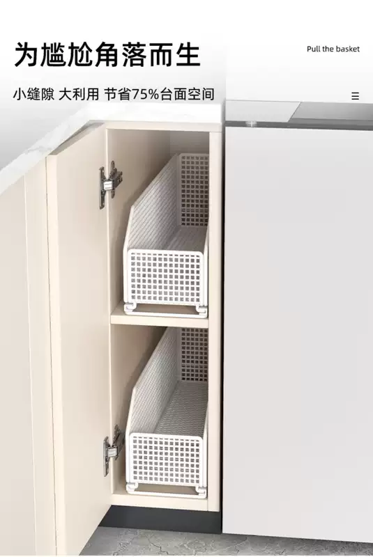 Yusenyi kitchen cabinet extra deep cabinet pull basket drawer type cabinet built-in rack narrow gap seasoning pull-out storage rack black 2 pieces (20 wide 39 deep)