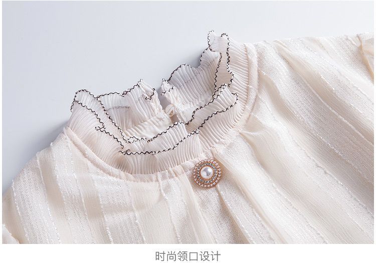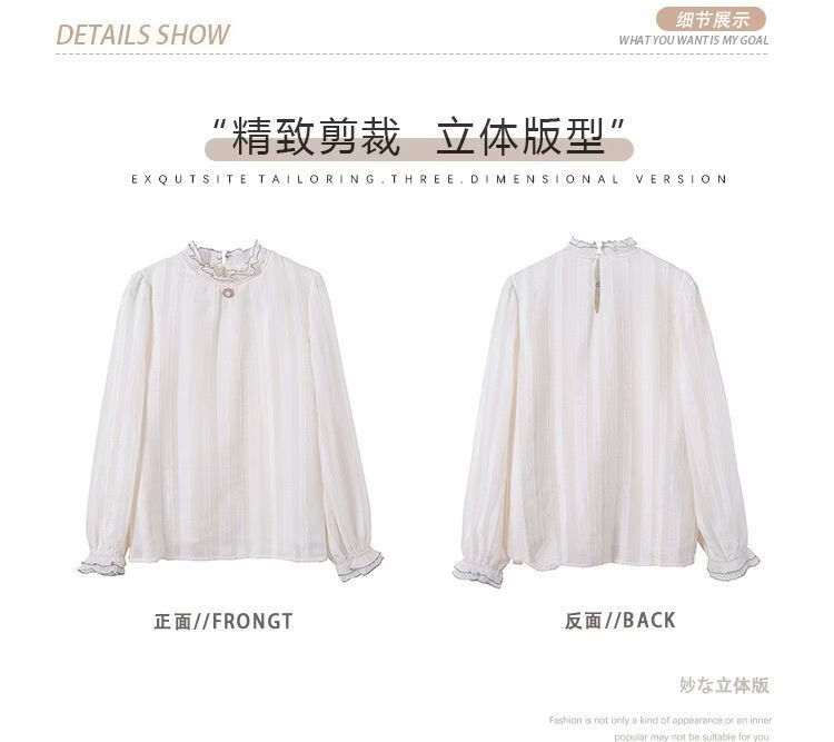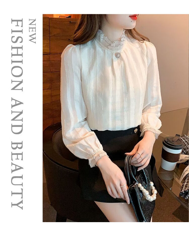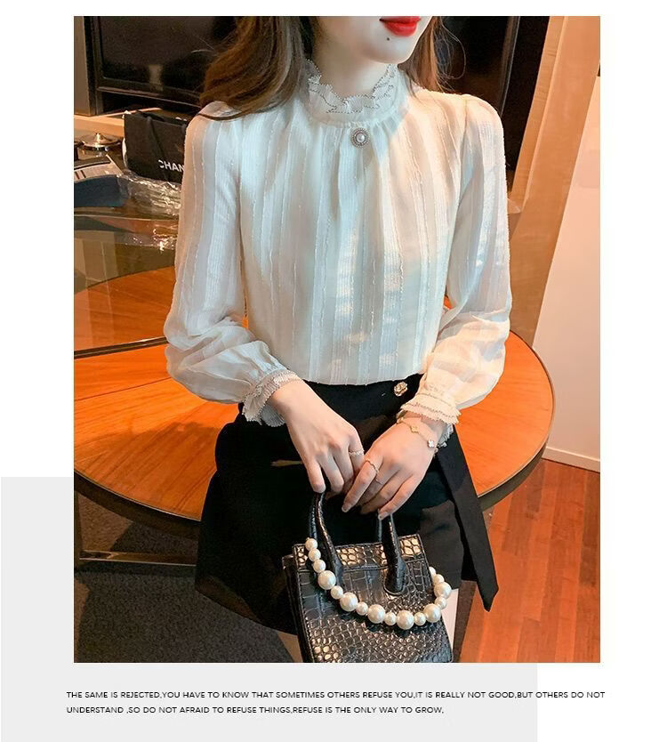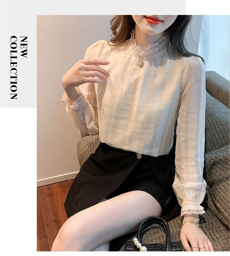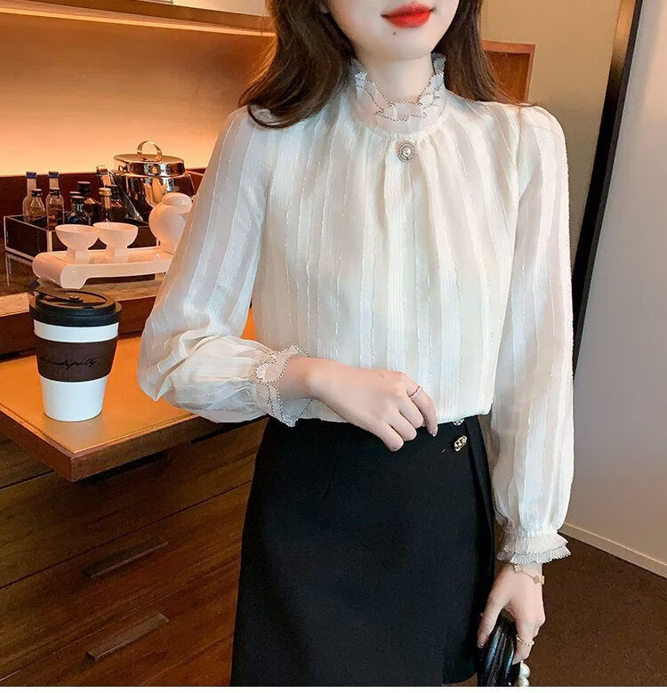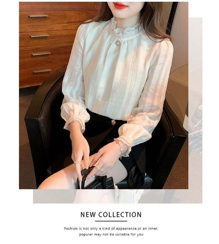 Playboy (PLAYBOY) lace chiffon shirt for women spring new fashion style fungus edge stand-up collar long-sleeved T-shirt temperament versatile outer top thin official flagship apricot color XL recommended 120-135 Jin Jin equals 0.5 kg